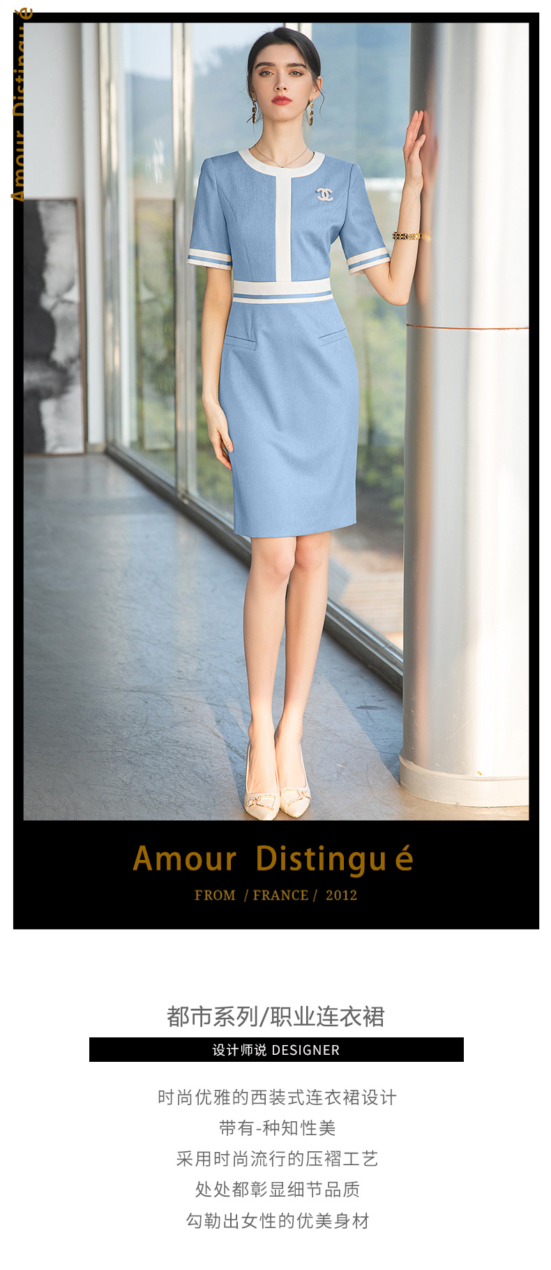 IWY/高端蓝色职业西装连衣裙女时尚气质美容院工作服播音主持艺考正装Q710-L