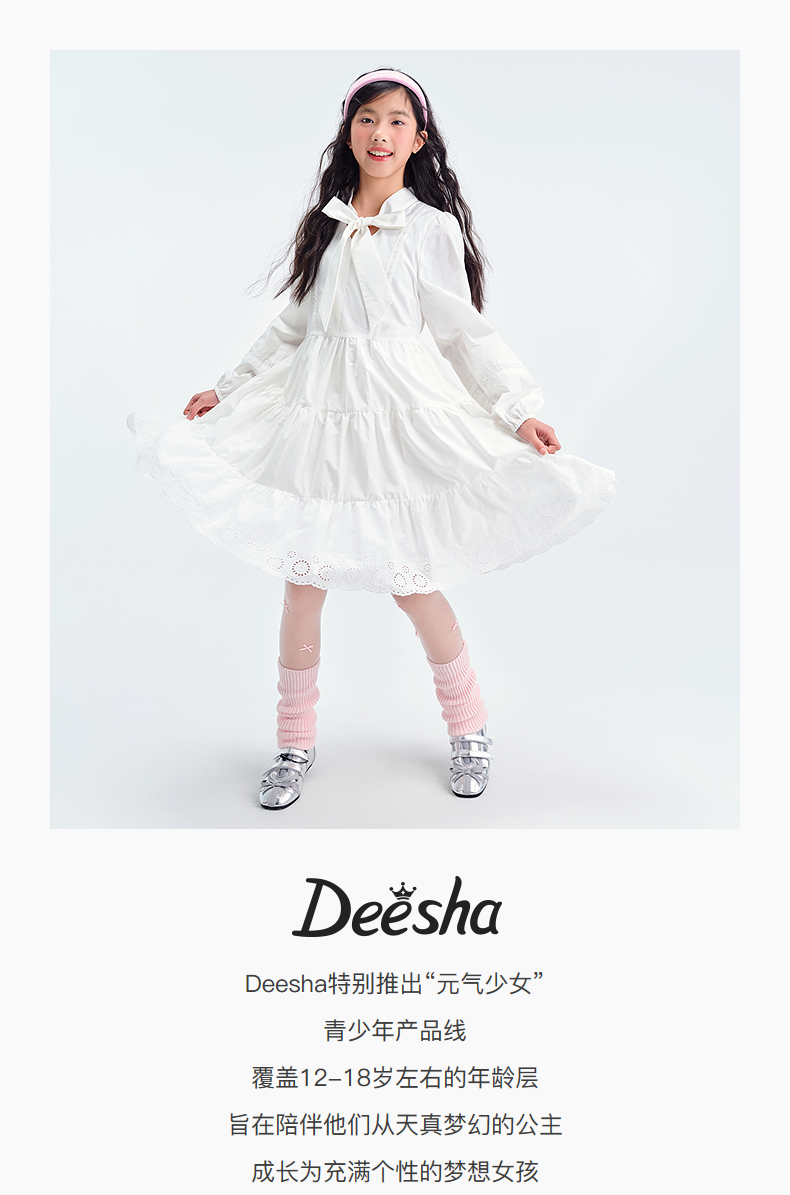 笛莎Deesha青少年女童连衣裙2025春季女童棉布连衣裙