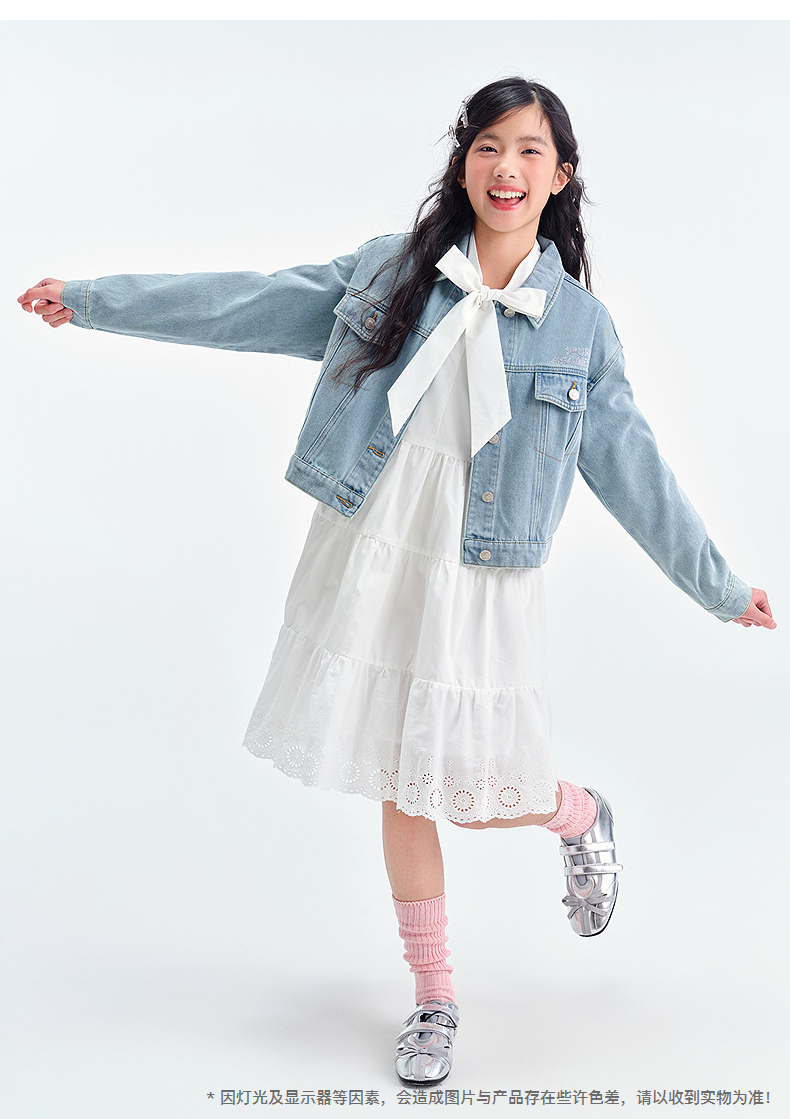 笛莎Deesha 童装女童外套2025春新款明线分割皮标牛仔外套
