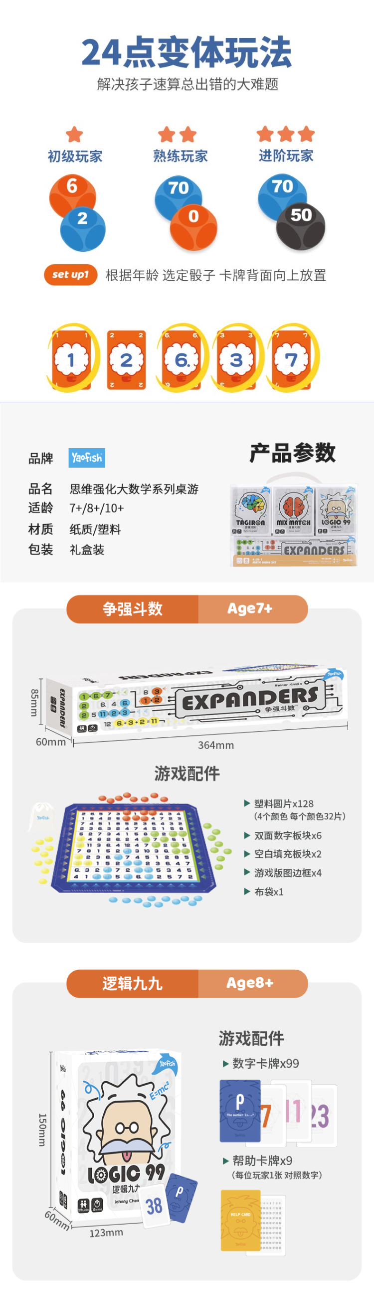 【学而思严选】7岁+ yaofish大数学益智玩具-争强斗数+逻辑99+速算大师PY