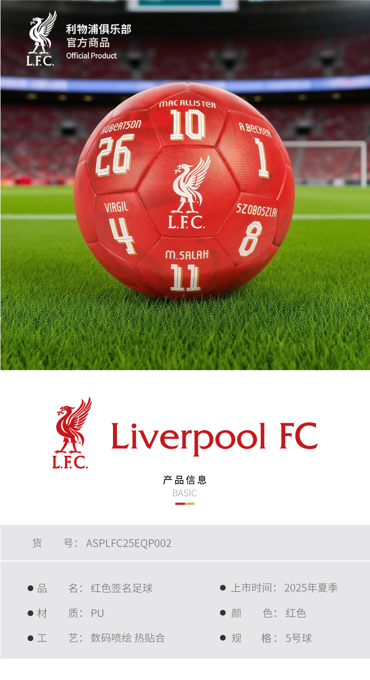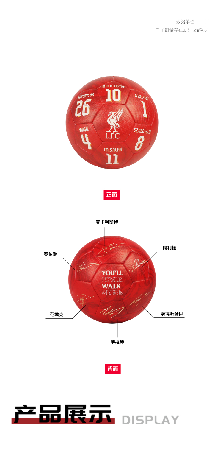 【官方正版】利物浦俱乐部 | 红色印签5号足球金色印签萨拉赫索博范戴克