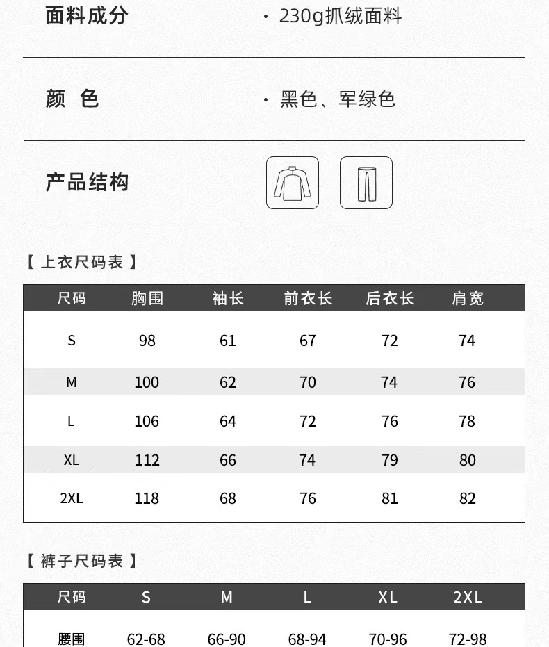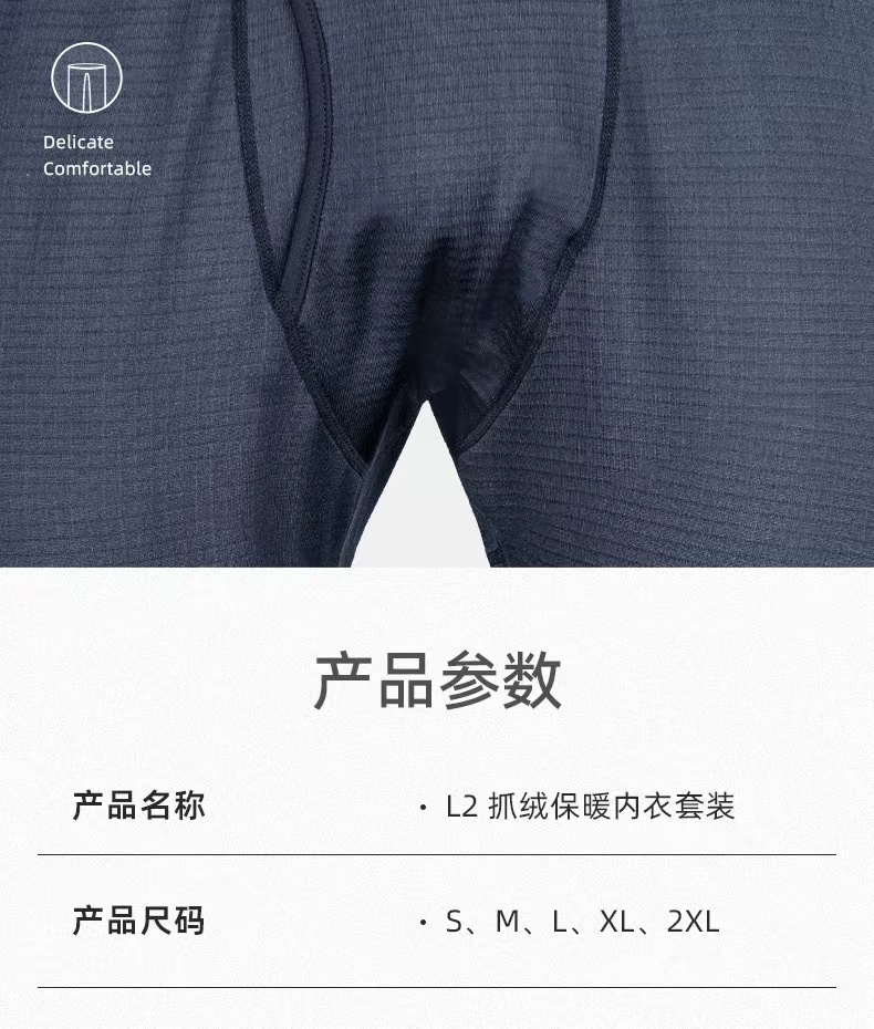 猛虎营秋冬男款L2内搭230g单面抓绒保暖套装