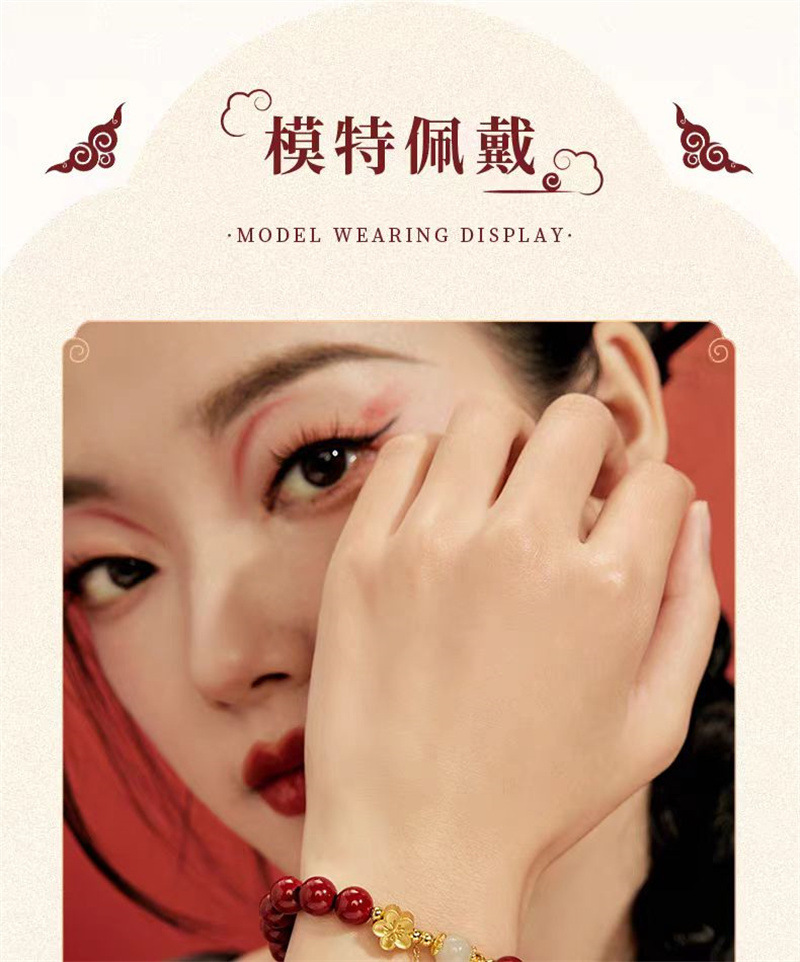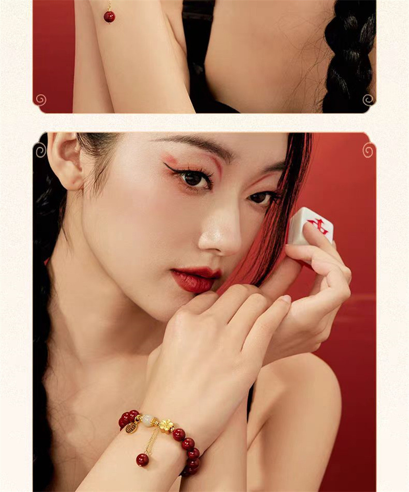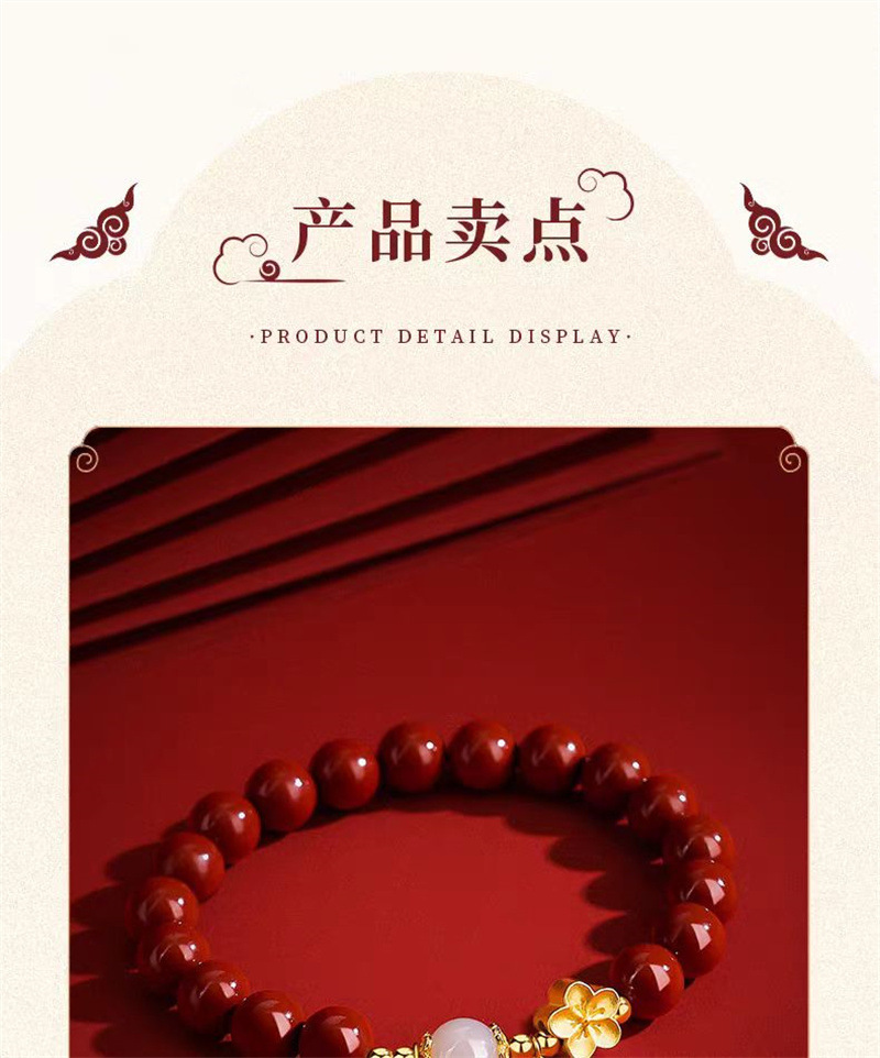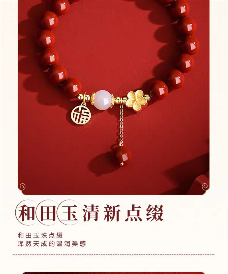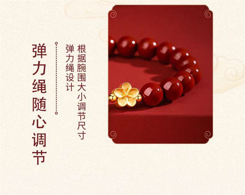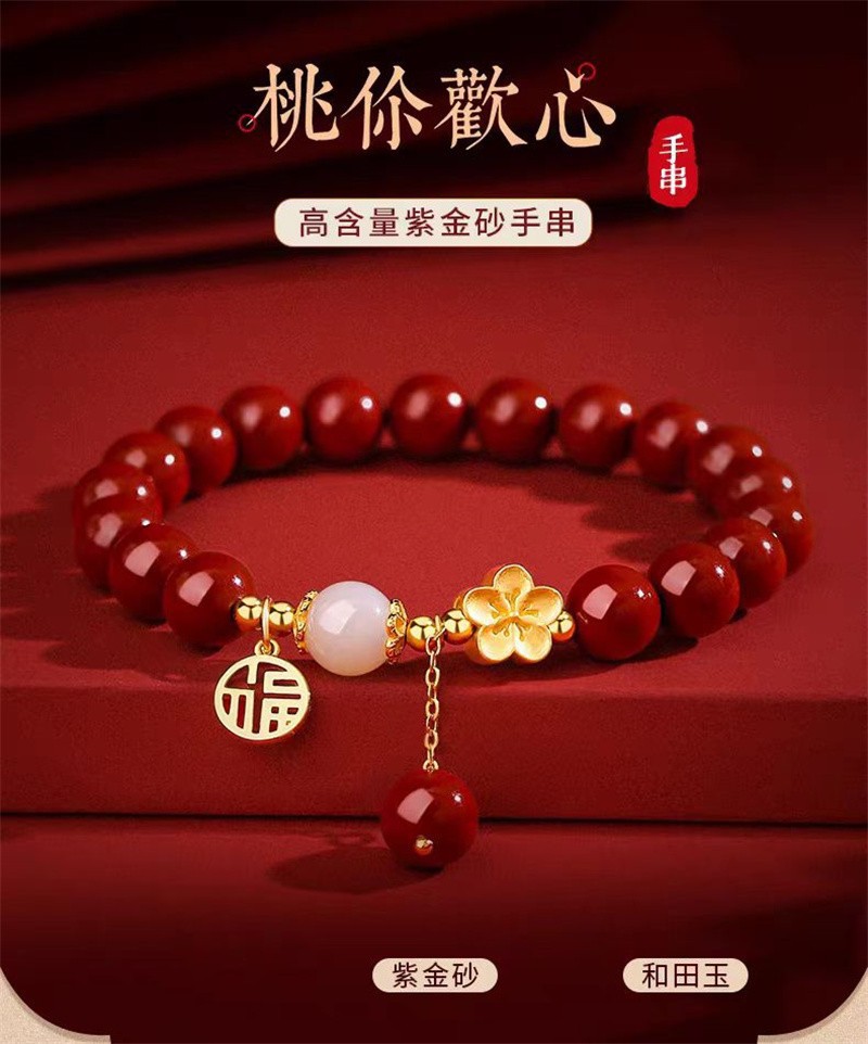 六鑫珠宝 桃你欢心桃花朱砂手串 S925银