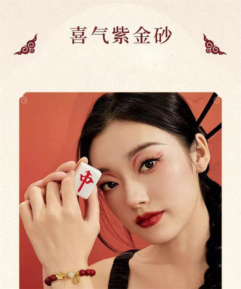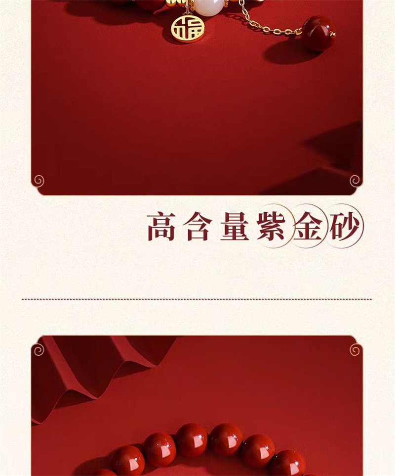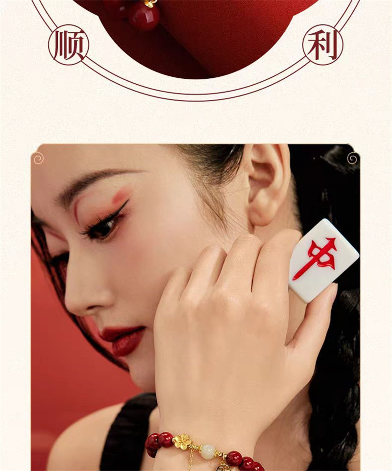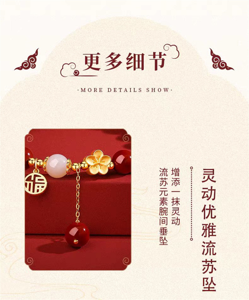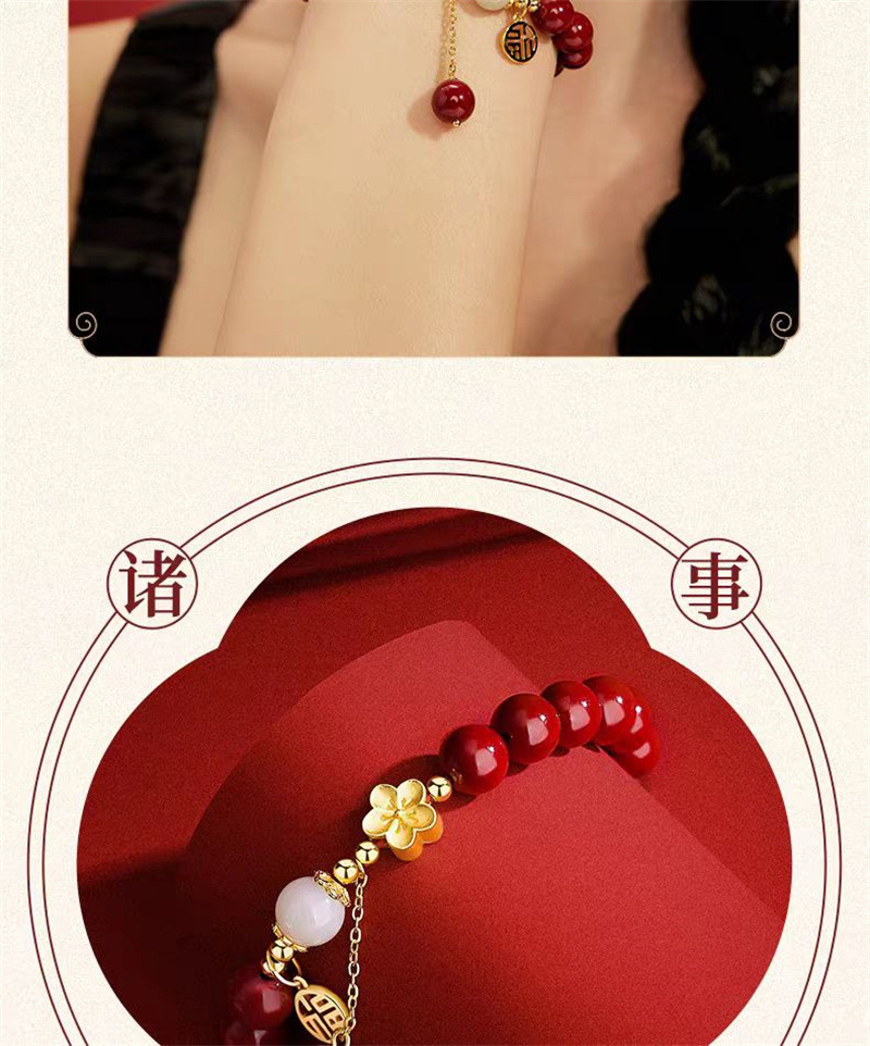 六鑫珠宝 桃你欢心桃花朱砂手串 S925银