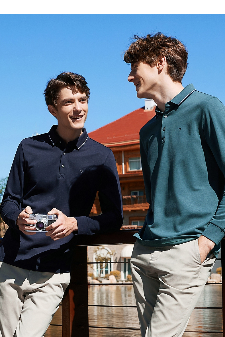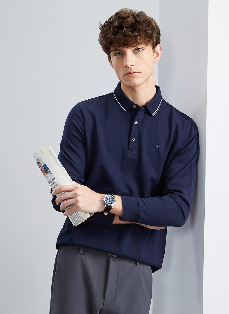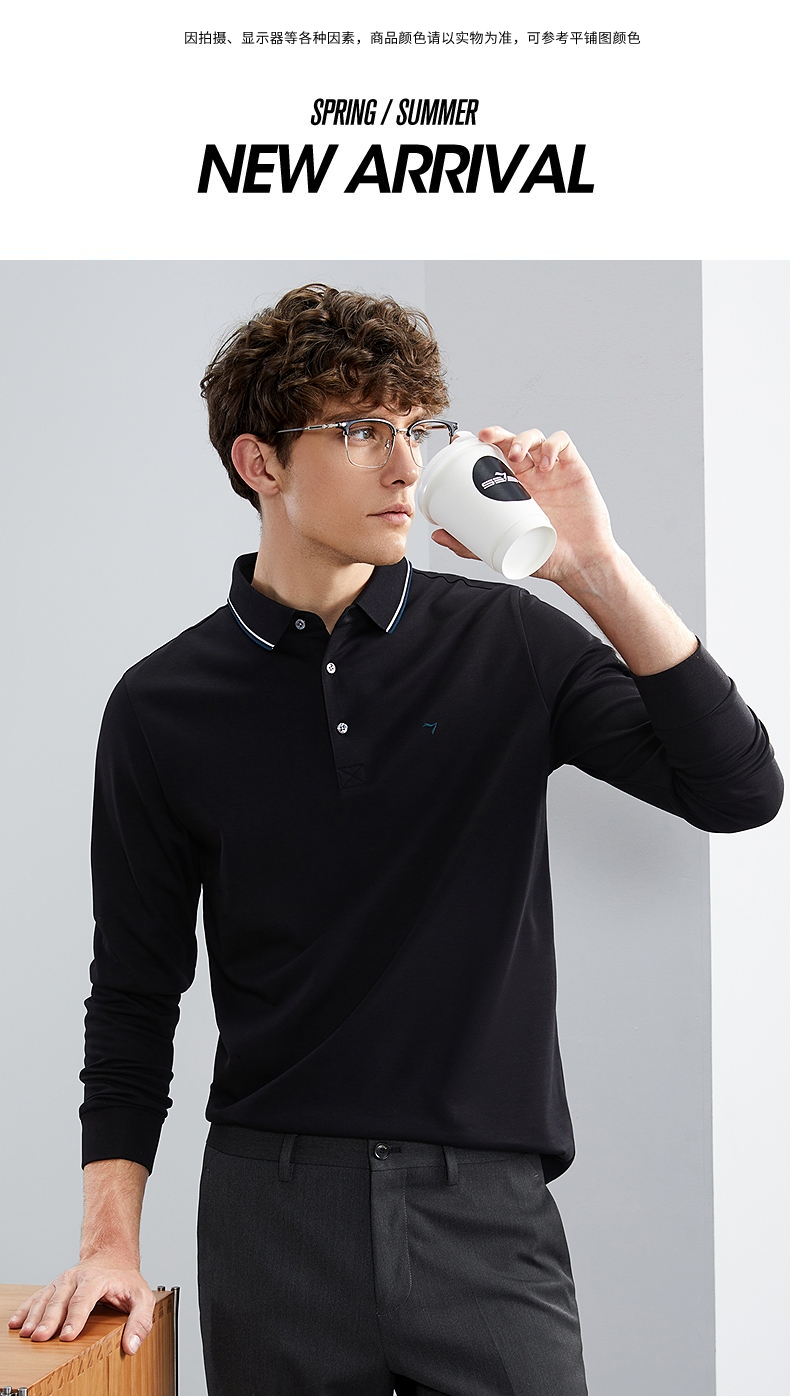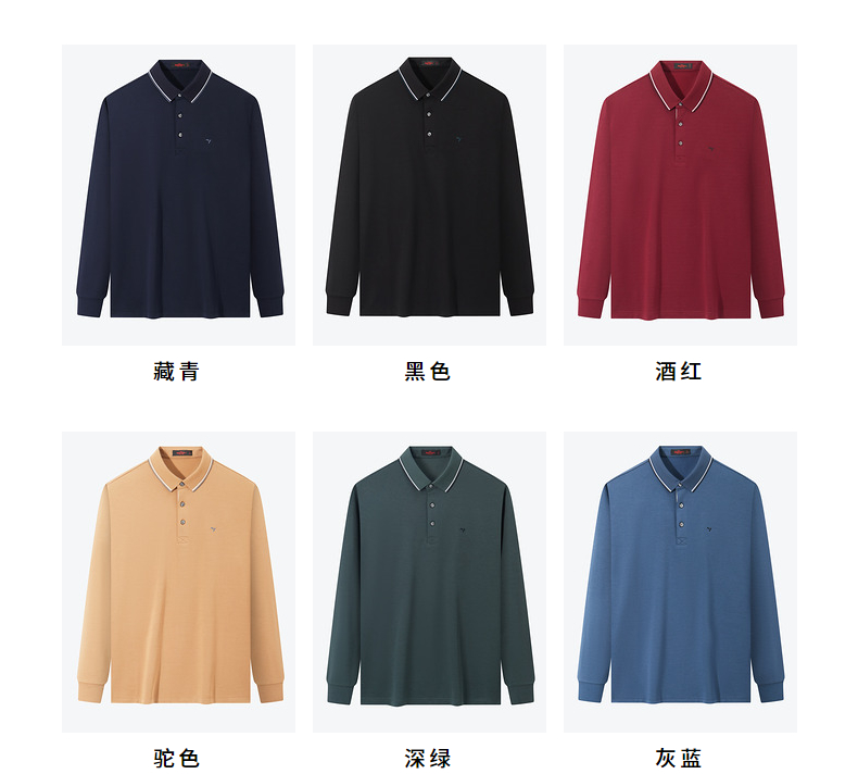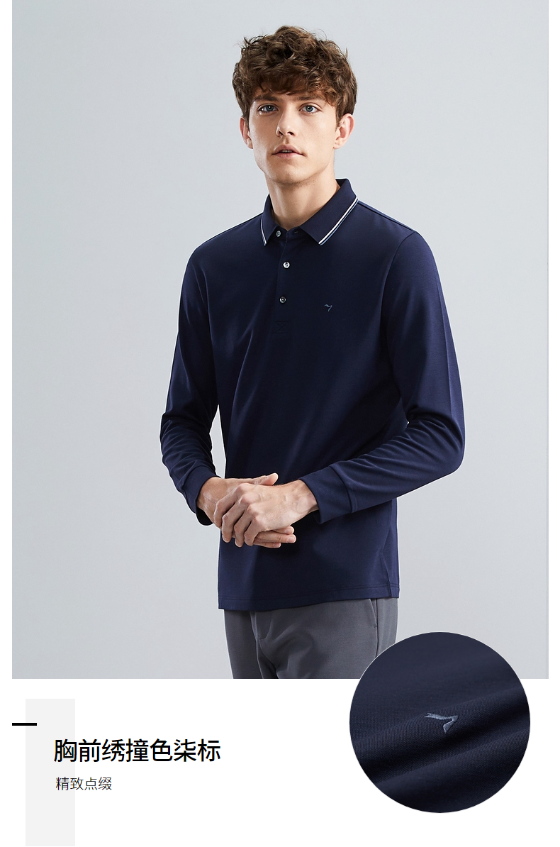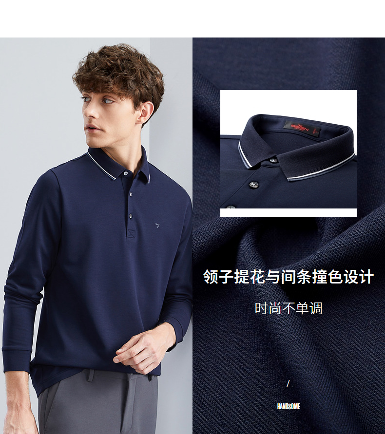 【5A抗菌/2A防螨】柒牌polo衫男长袖秋冬厚款商务休闲多色翻领T恤 125T70010