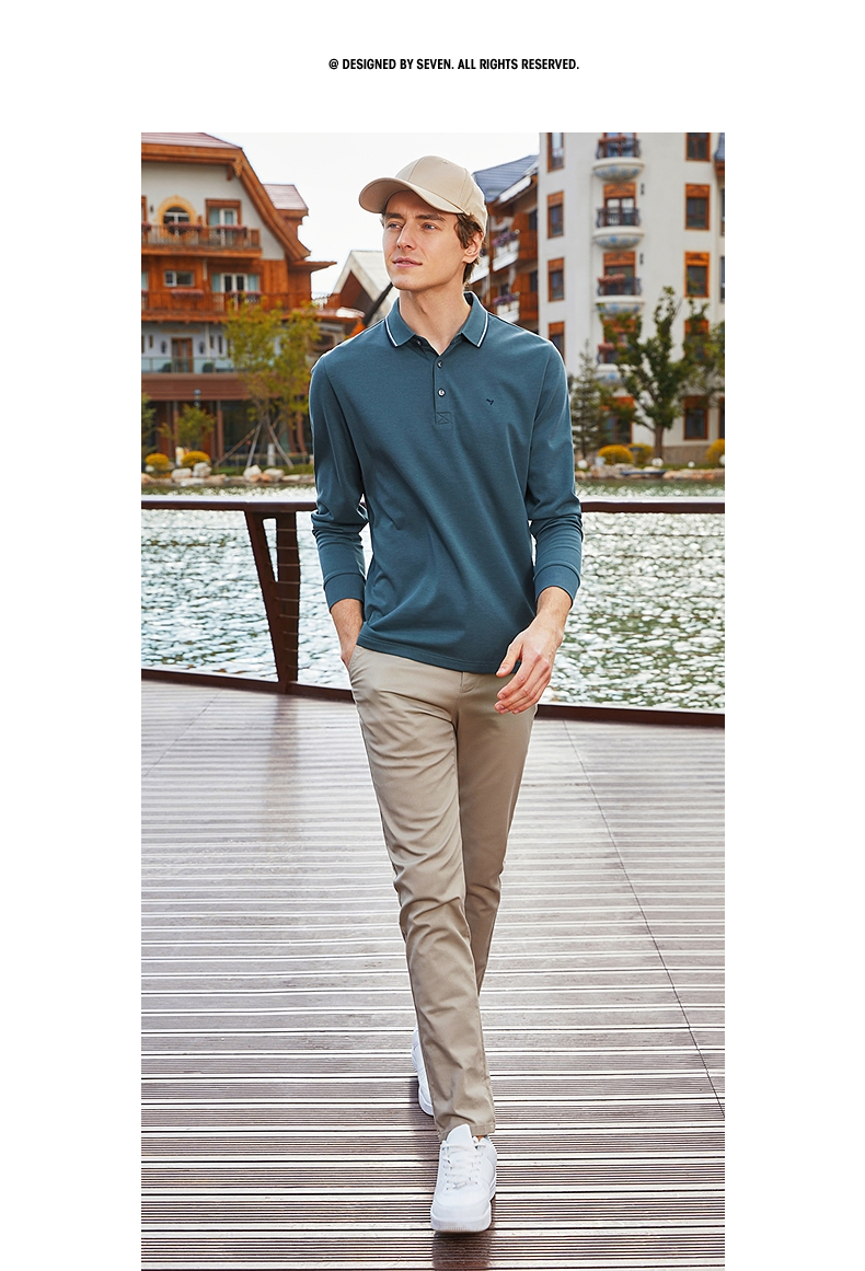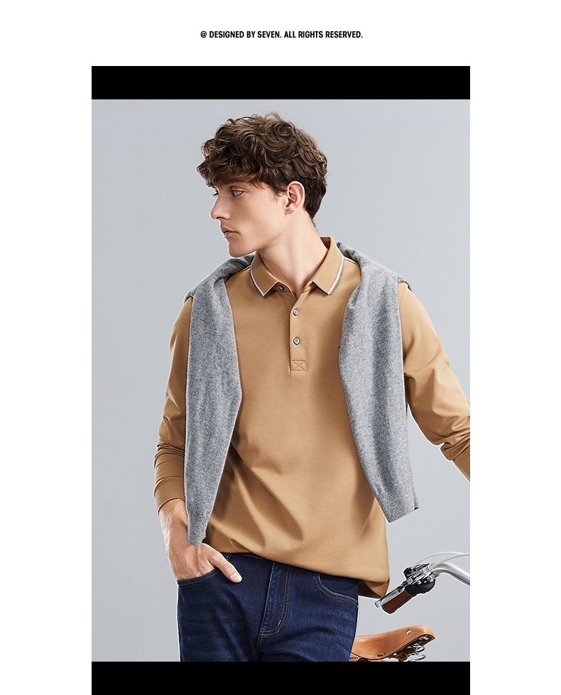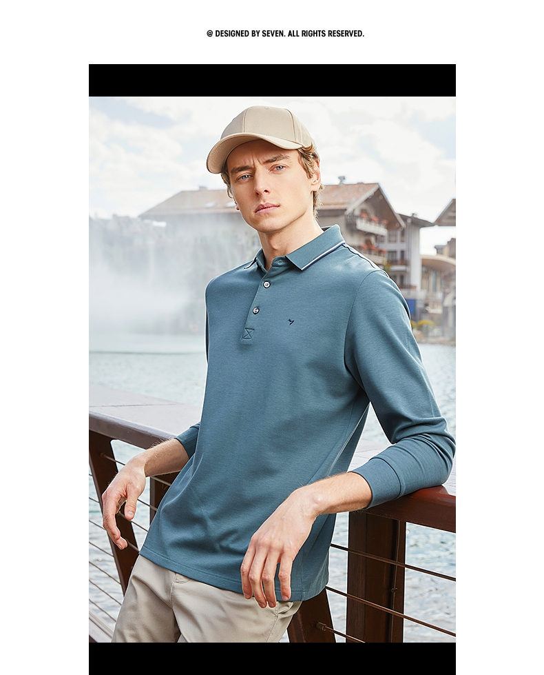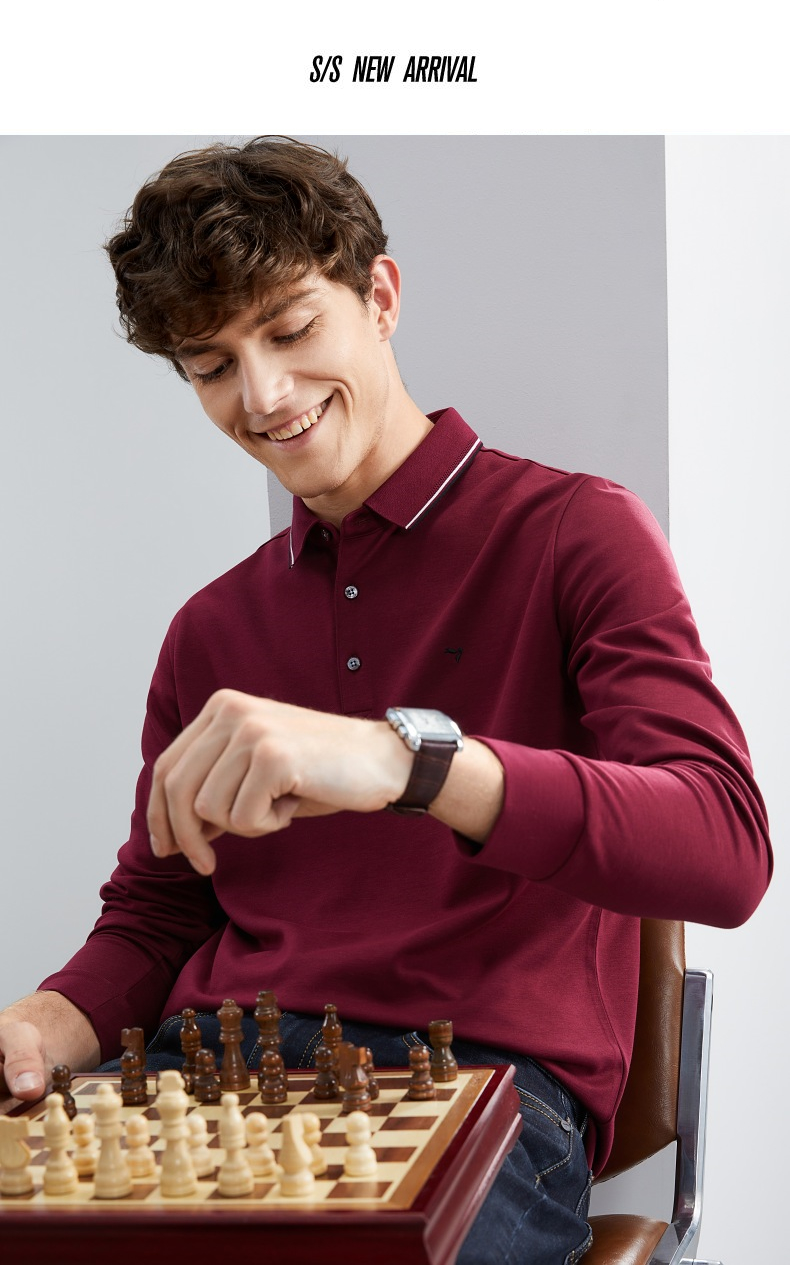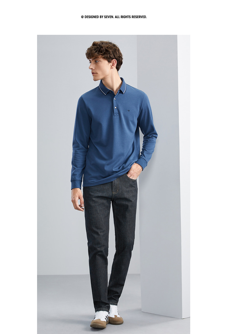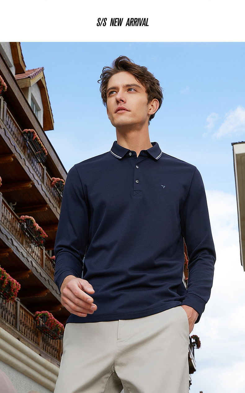 【5A抗菌/2A防螨】柒牌polo衫男长袖秋冬厚款商务休闲多色翻领T恤 125T70010