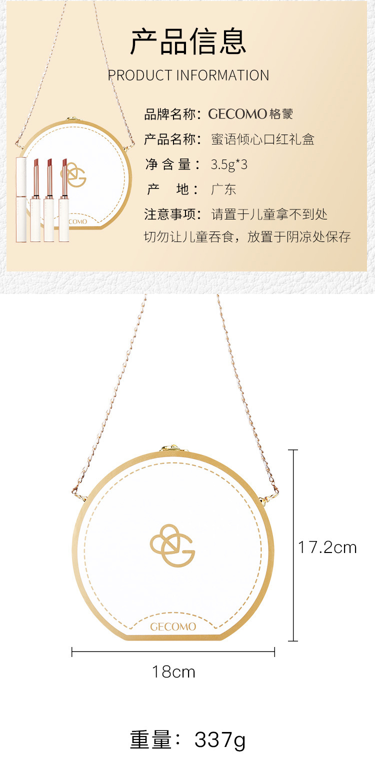 【口红3支+包包礼盒】蜜语倾心口红礼盒哑光显白 口红唇膏礼物烫金包3支套装