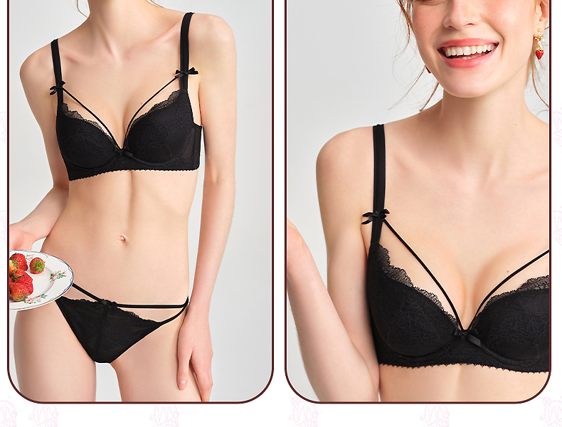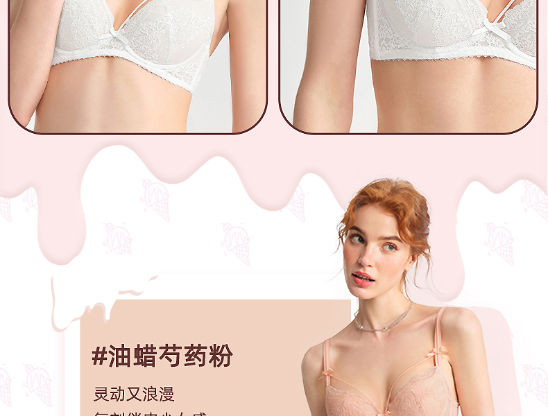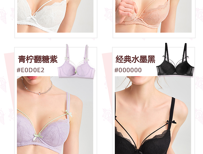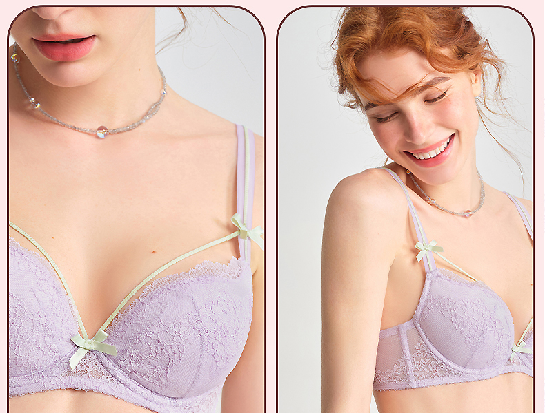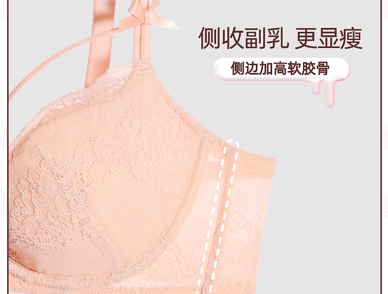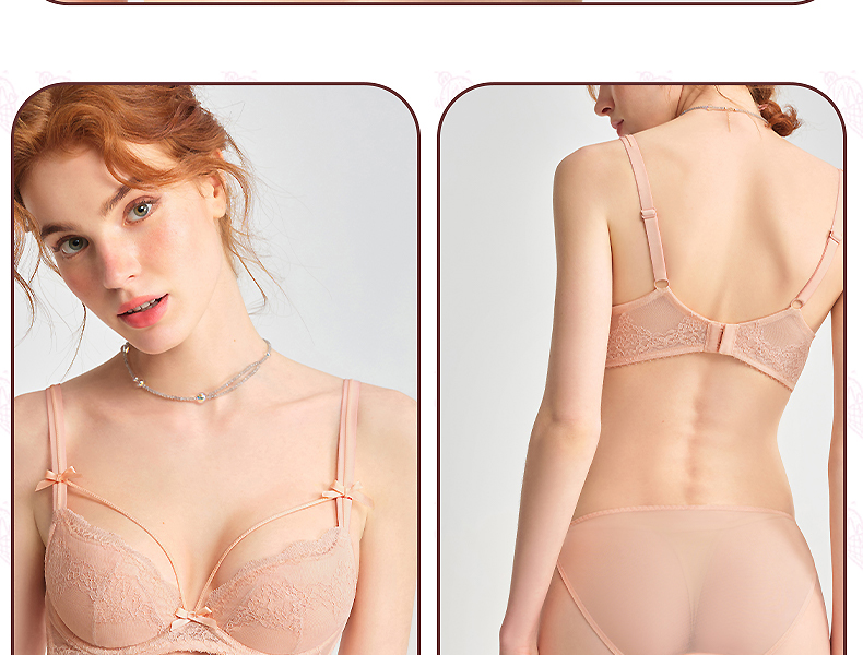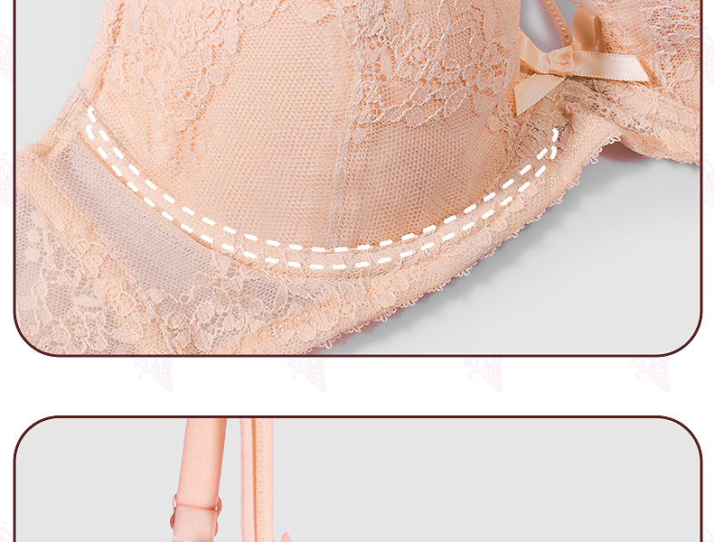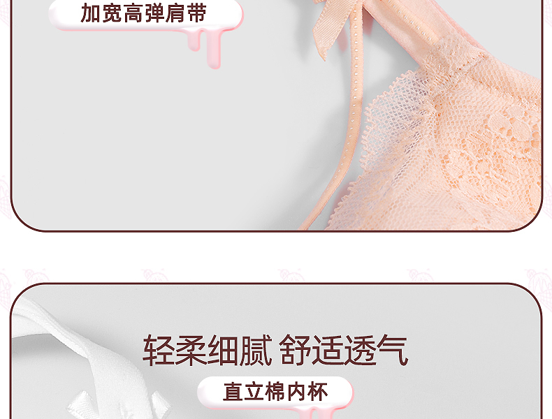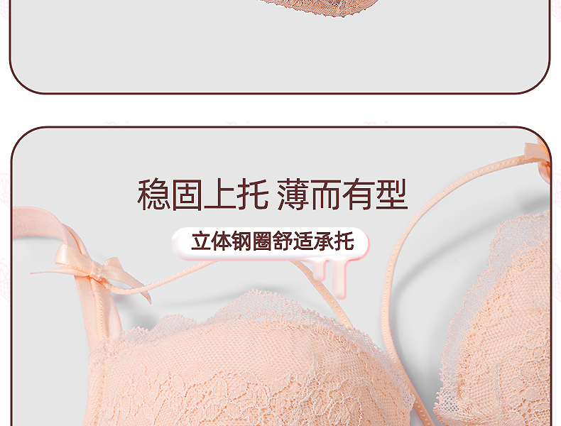 好奇蜜斯夏季超薄透气文胸套装舒适大胸显小上托调整型蕾丝内衣女 蒂诺