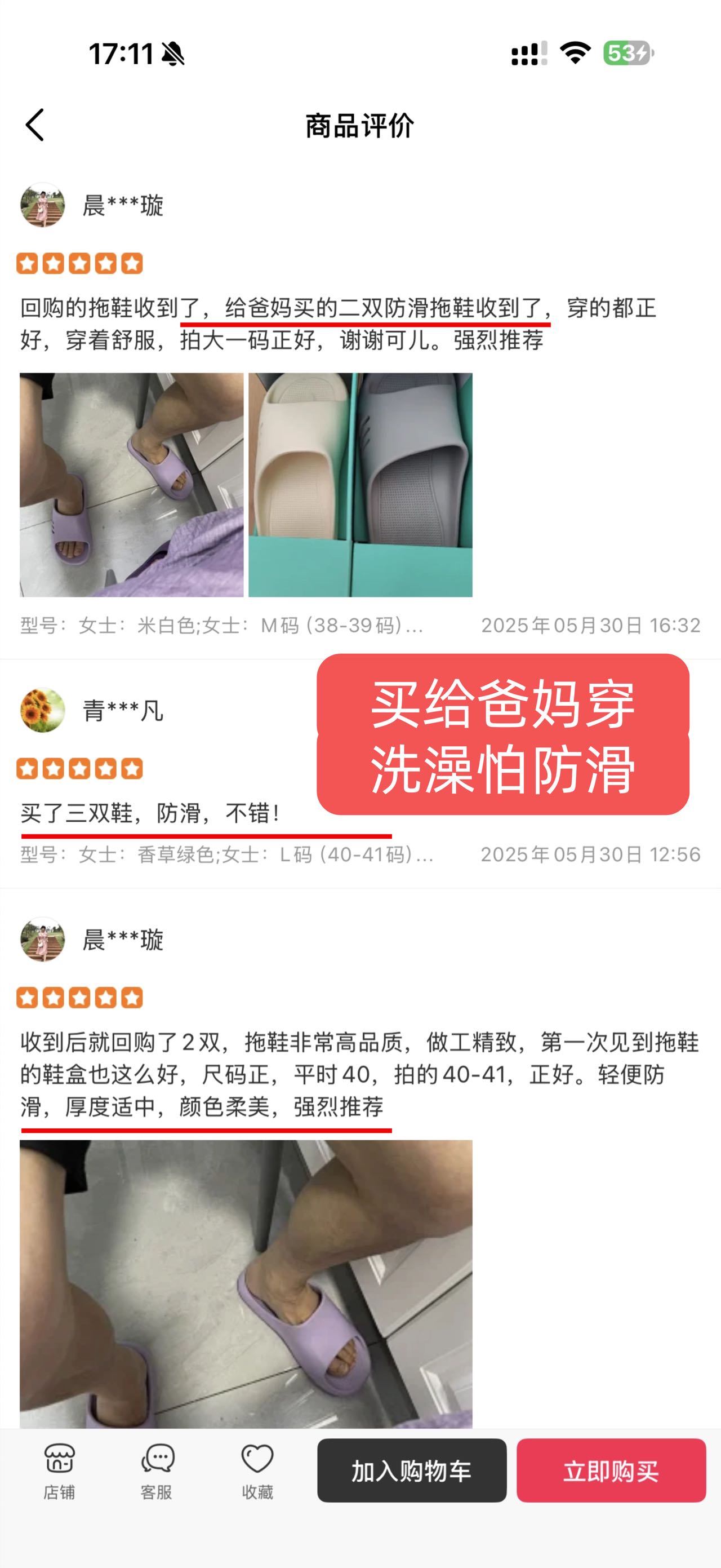 高密度的材质不仅脚感好,还自带防滑buff,鞋底的纹理和鞋内的防滑设计,沾水也不打滑,老人小孩穿都放心。