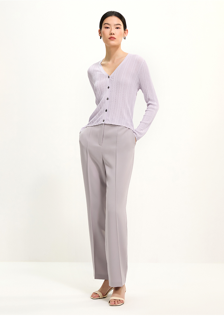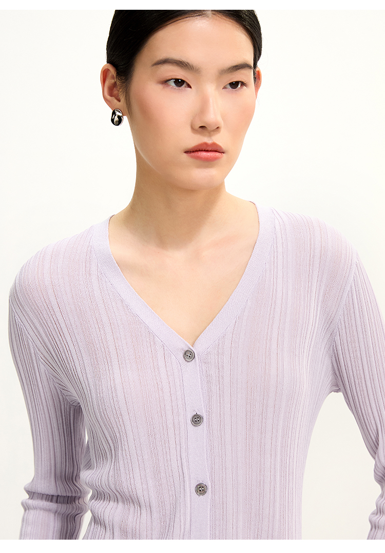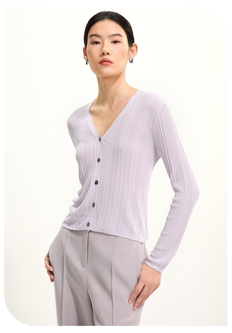 PURE TOUCH紫灰色V领针织开衫 1359252111