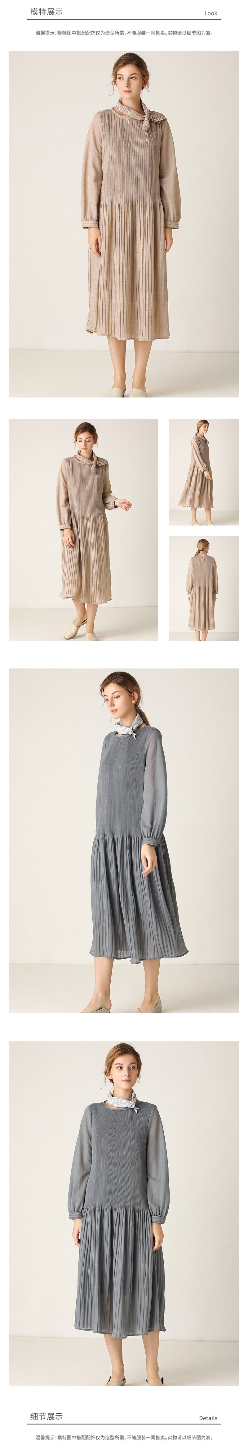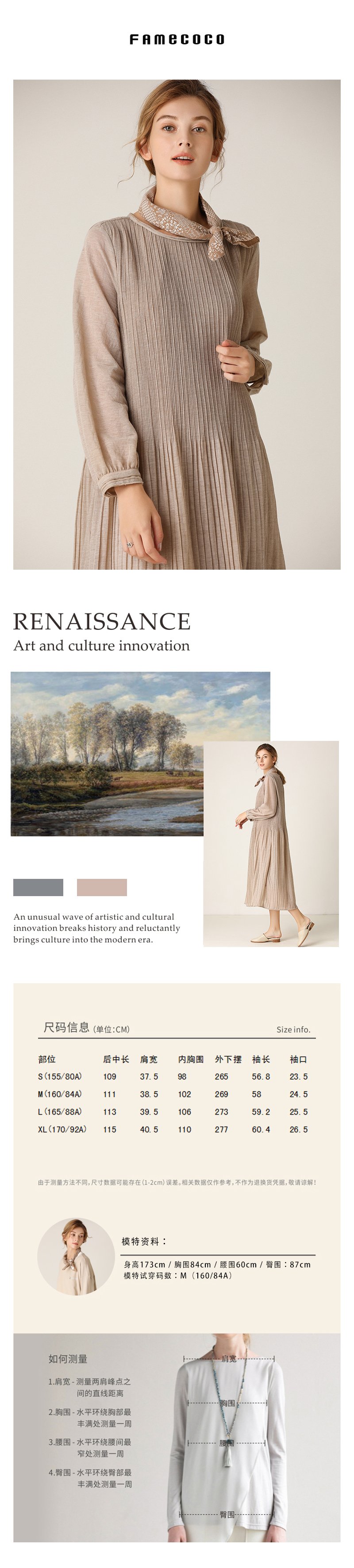 famecoco范可儿连衣裙女秋装时尚宽松网纱褶皱中长款F201FA028
