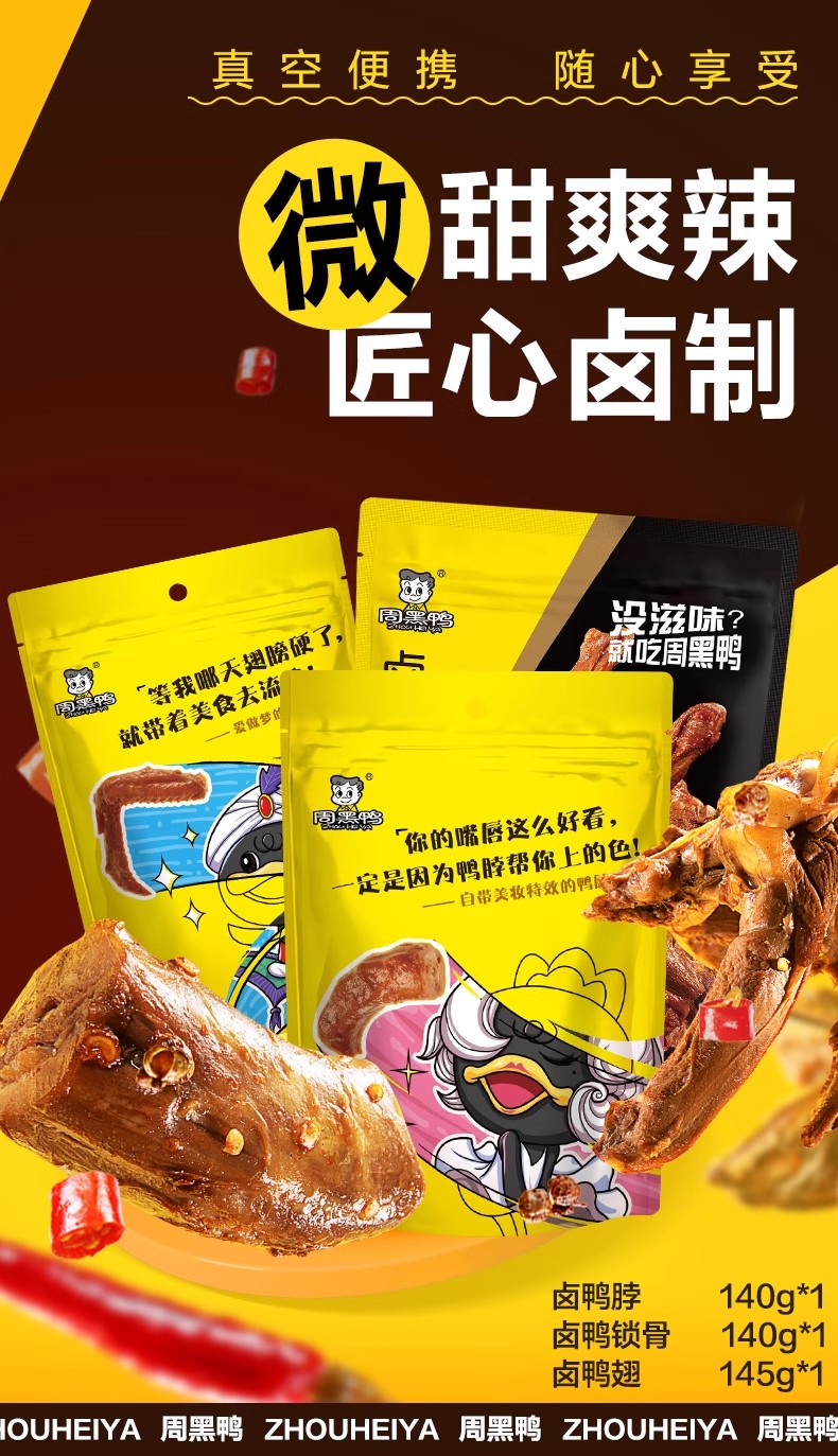 【武汉】江城百臻周黑鸭真空组合3(鸭脖140g+锁骨140g+鸭翅145g)