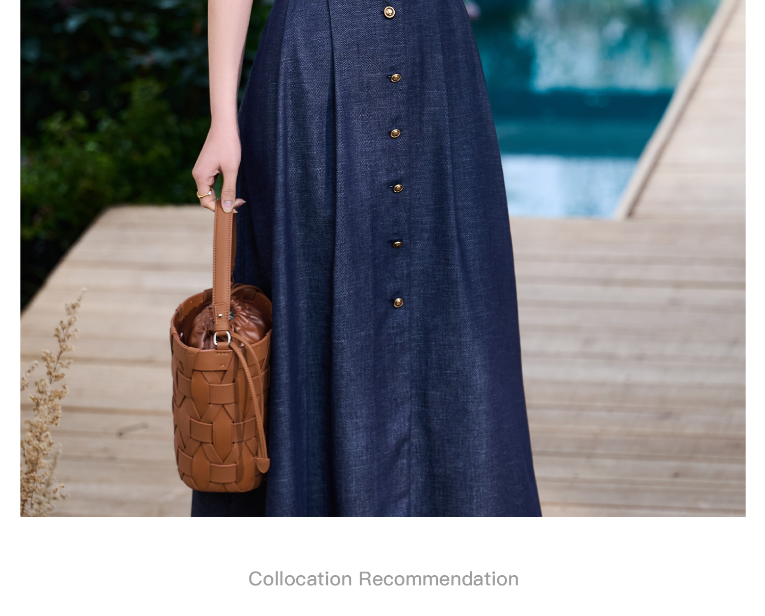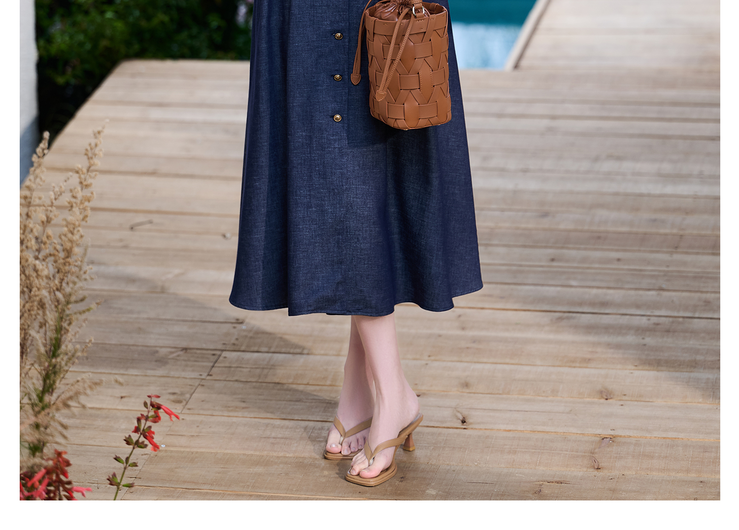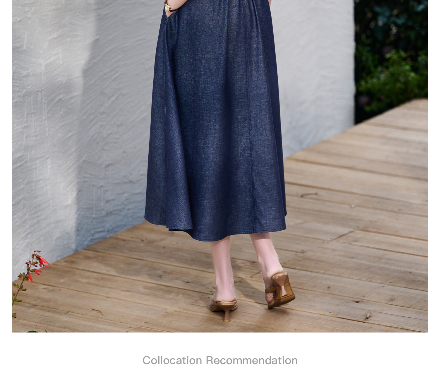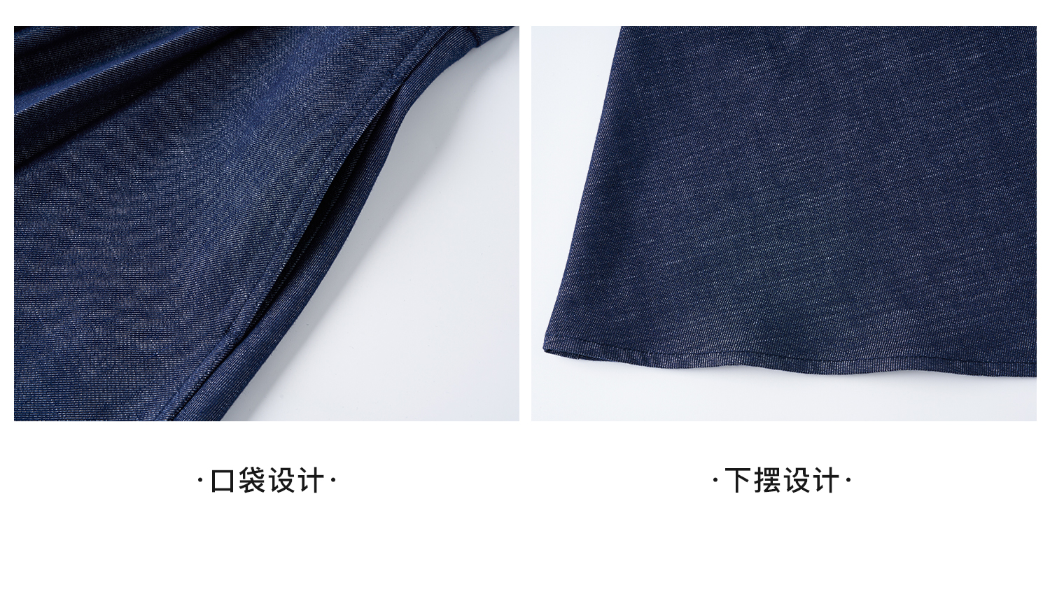 港风复古~天丝亚麻仿牛仔 凉感垂坠 米思阳2026春夏新款深蓝色衬衫领连衣裙女气质收腰显瘦牛仔裙子6147