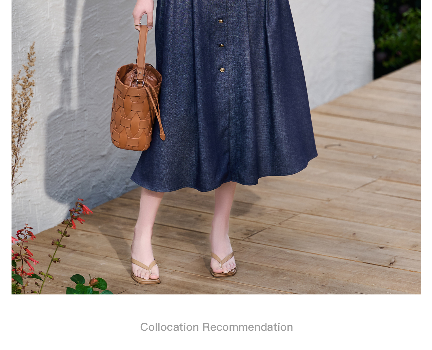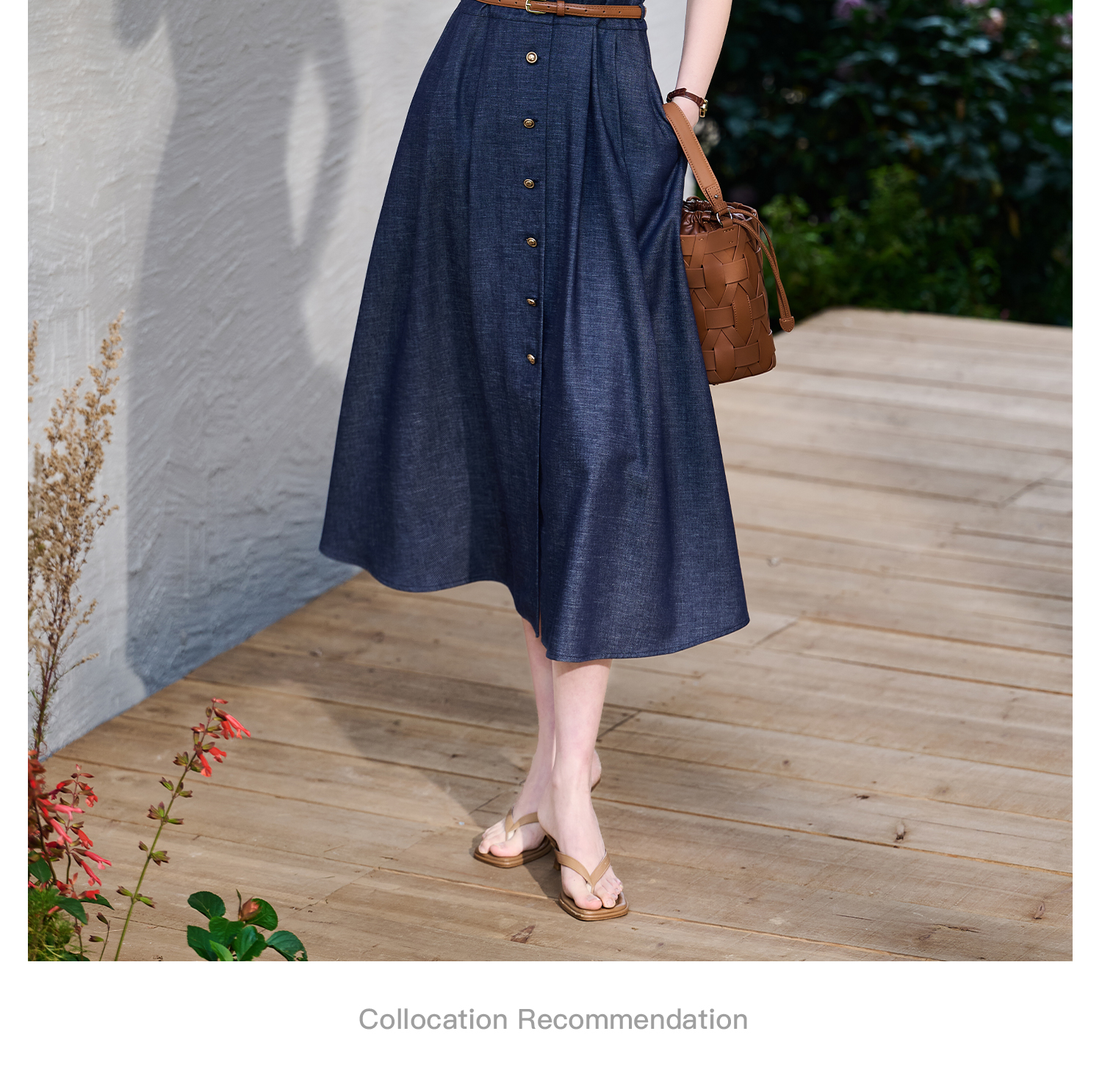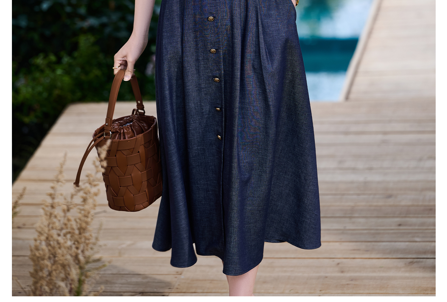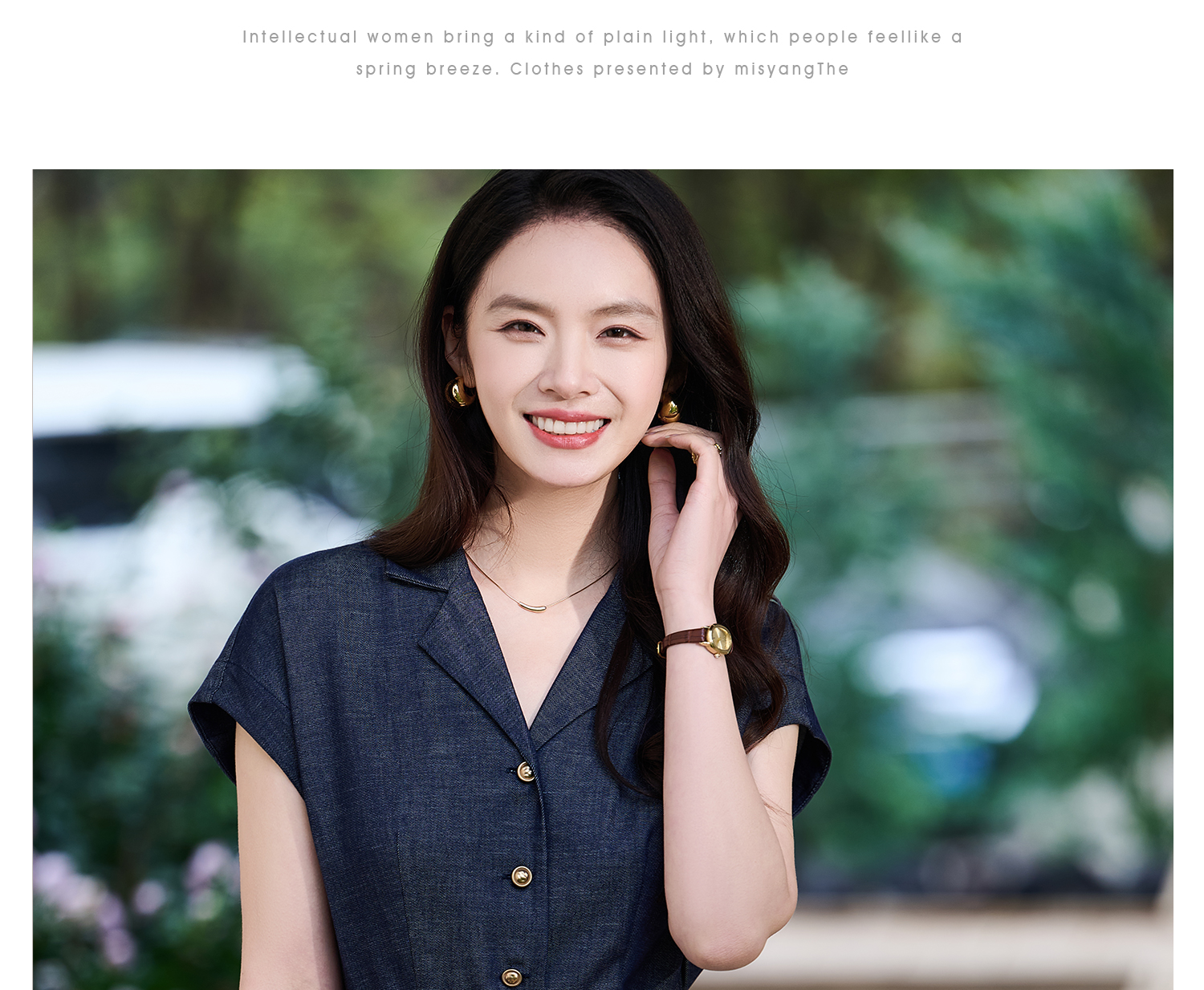 港风复古~天丝亚麻仿牛仔 凉感垂坠 米思阳2026春夏新款深蓝色衬衫领连衣裙女气质收腰显瘦牛仔裙子6147