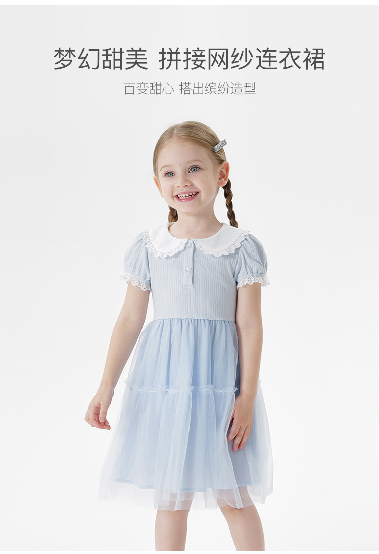 马克珍妮女童梦幻甜美拼接网纱连衣裙 宝宝裙子年夏装新款550758