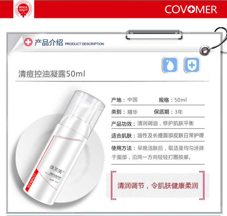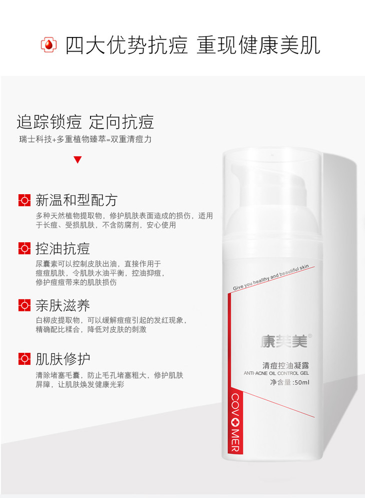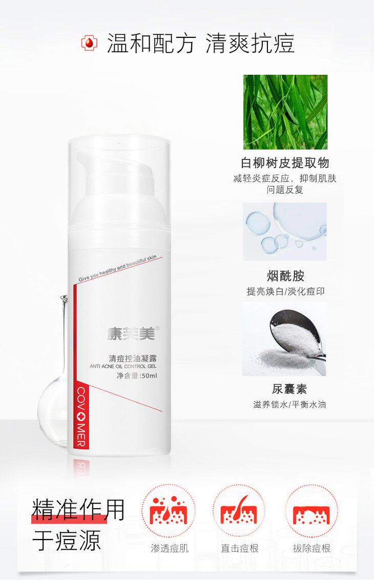 康芙美 | 清痘控油凝露 50ml|清理阻塞毛孔 清爽控油 补水保湿 预防痘痘粉刺 光滑紧致