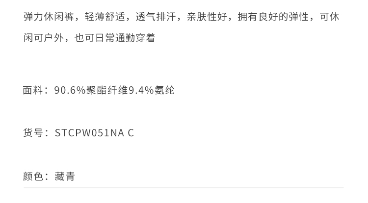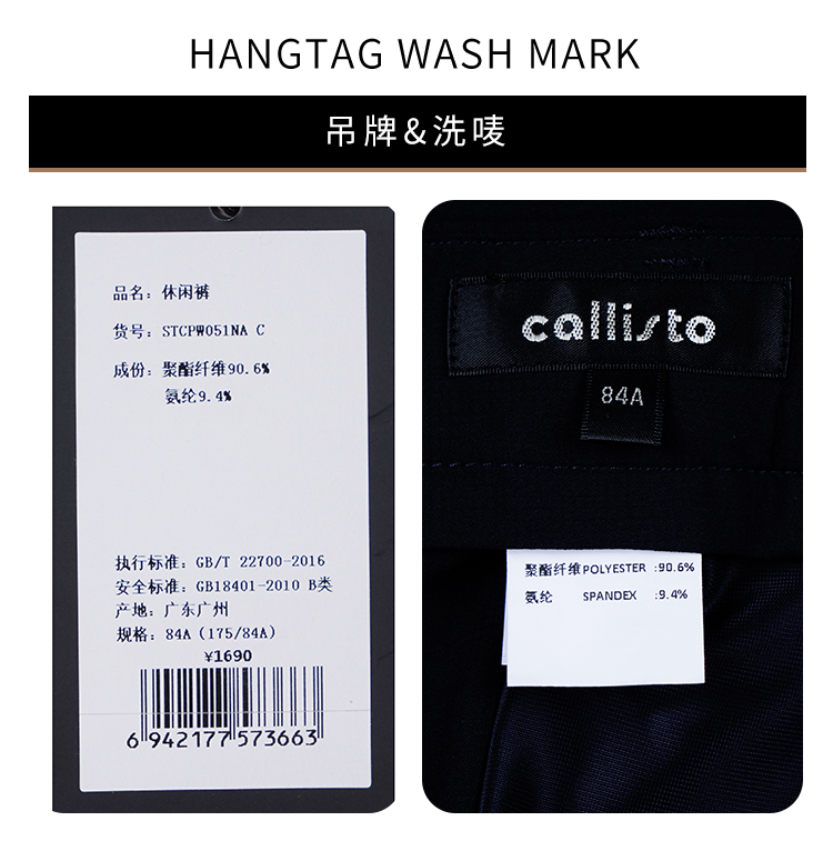 callisto藏青聚酯纤维混纺休闲裤 STCPW051C