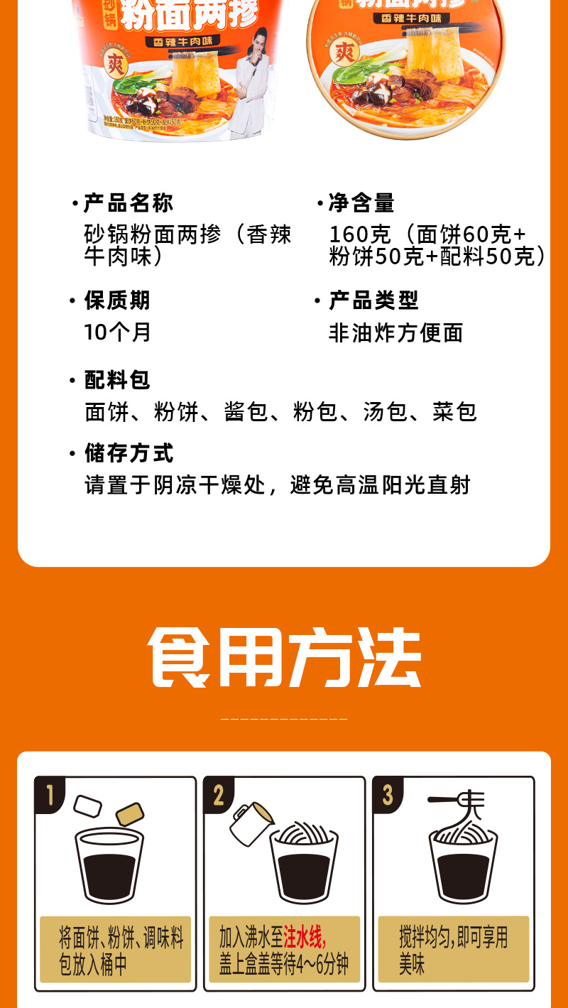 嗨吃家砂锅粉面两掺160g*6桶