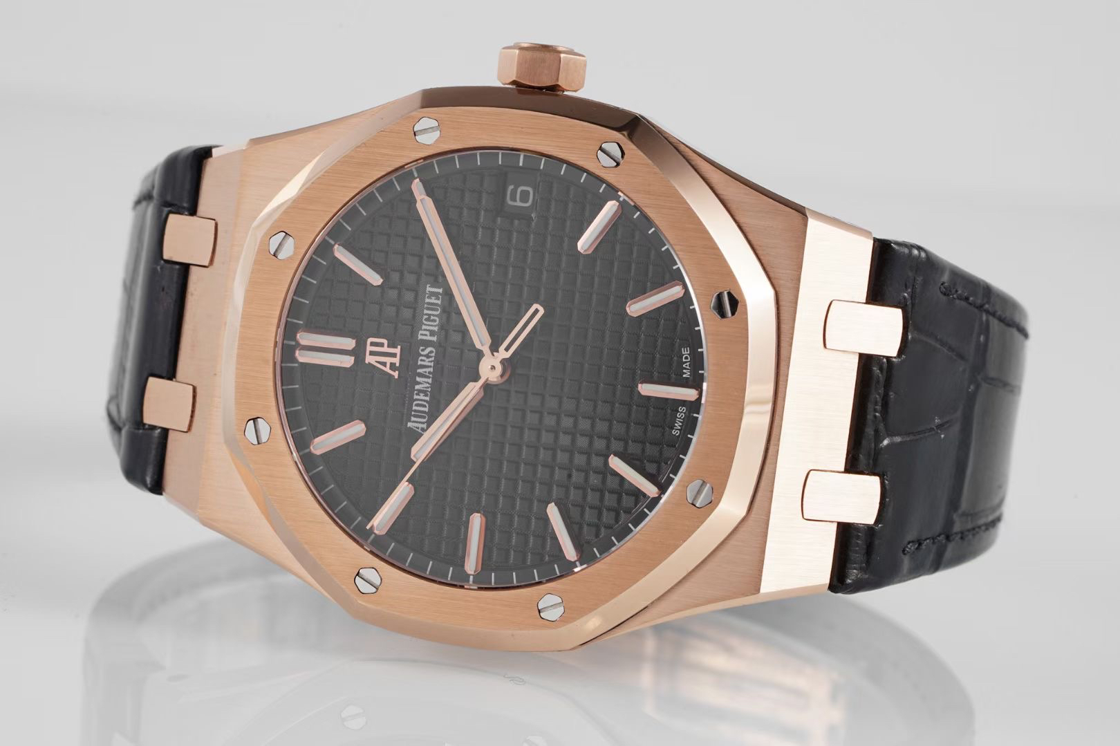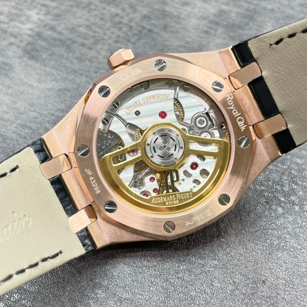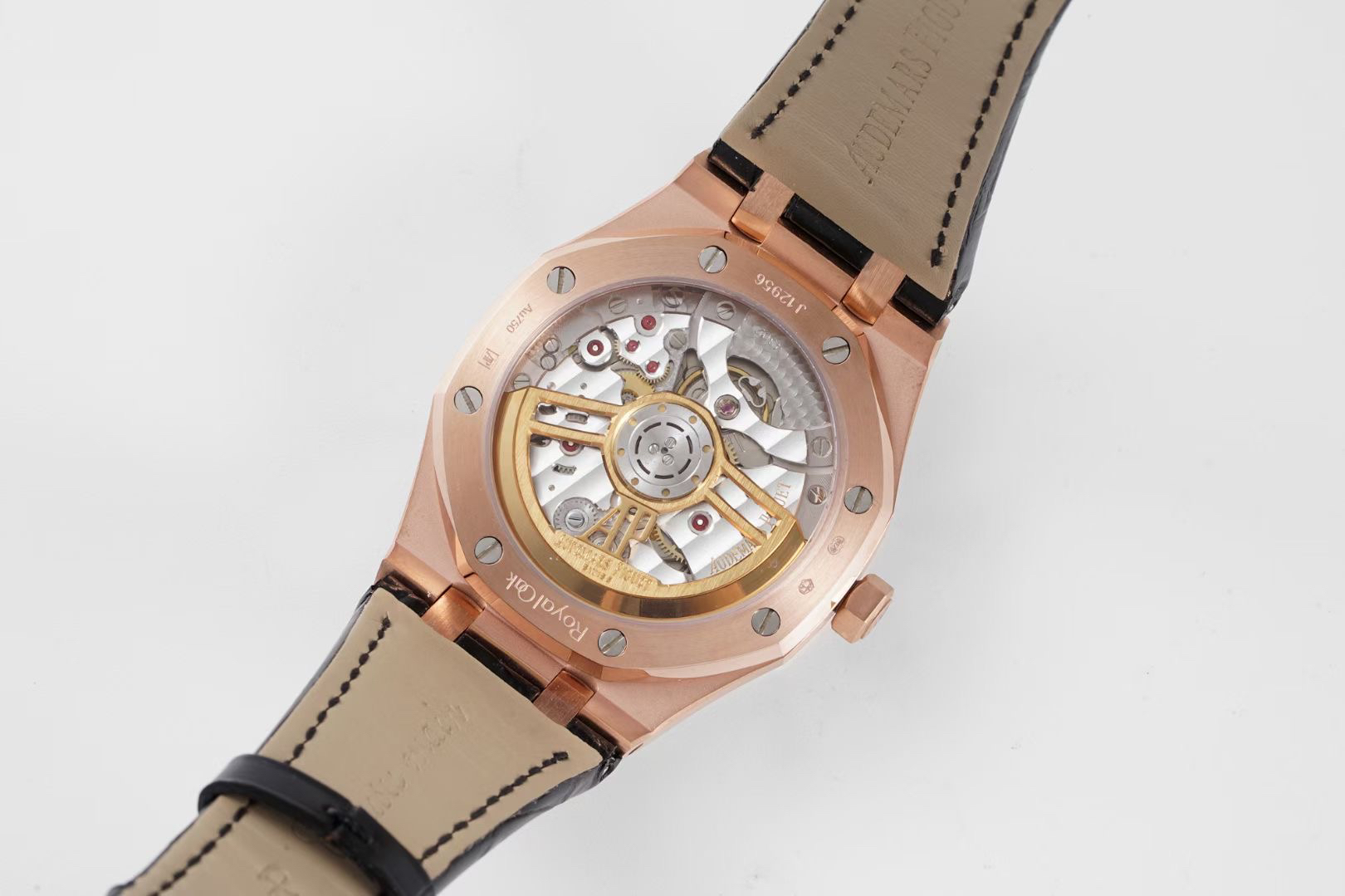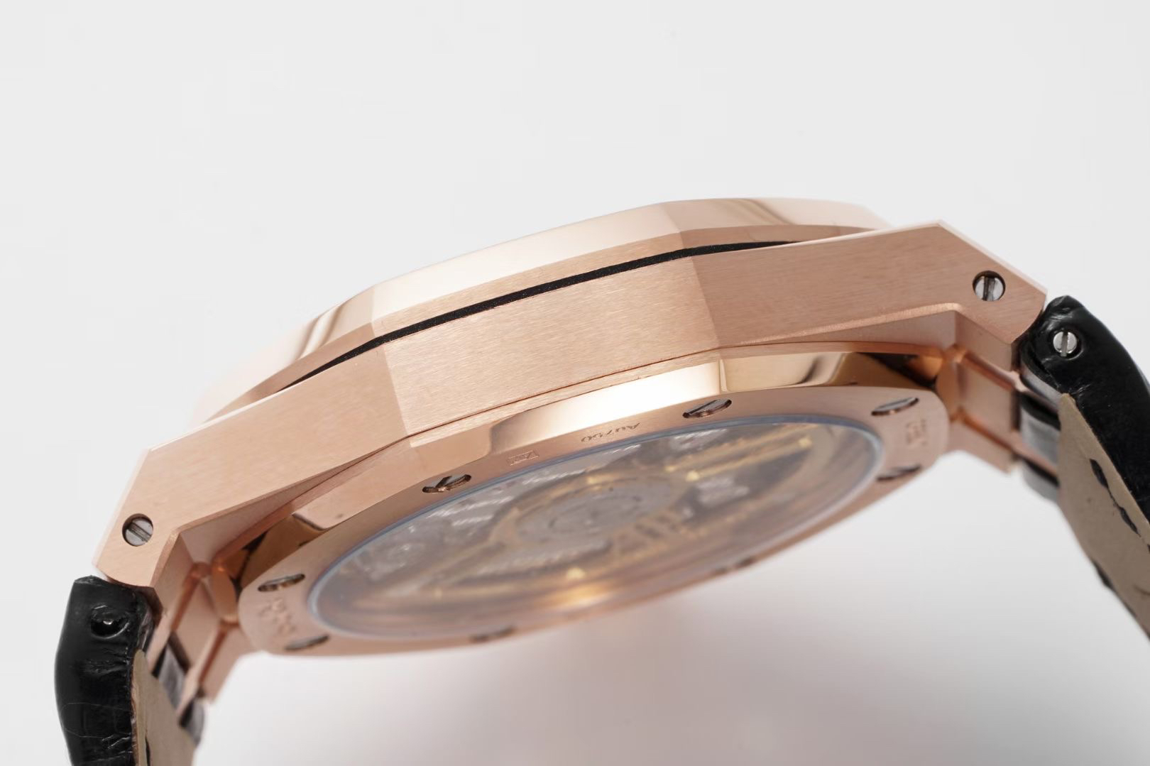ZF皇家橡树15500玫瑰金黑盘 乃目前市面钢表的巅峰之作,—— 实力演绎 卫冕"钢"王!【6大精妙之处】1.正品拆解开模,尺寸为41X10.4毫米与正品一致!2.完全还原正品表壳的每一处细节,尽显正品"棱角分明 坚毅果敢"的阳刚气质。3.钢带的做工无可挑剔,比市面上任何钢带表做工均要更上一层楼,钢带头粒和表头衔接的"缓冲带"的松紧程度与正品一模一样。4.自动陀的与原装致敬,是市面唯一做到颜色于原装一致的版本(市面一般版本均偏红)其上的ap族徽雕刻独一无二。5.打破夹板概念,采用原装进口9015机芯改爱彼CAL.4302一体机!更稳定,更优秀,更真实。6.表盘的"饼干纹理"立体饱满,精神抖擞!绝非普通小厂一般失魂落魄。体验精妙 感受不同!N新品 爱彼皇家橡树15500——乃目前市面钢表的巅峰之作,—— 实力演绎 卫冕"钢"王!【6大精妙之处】1.正品拆解开模,尺寸为41X10.4毫米与正品一致!2.完美还原正品表壳的每一处细节,尽显正品"棱角分明 坚毅果敢"的阳刚气质。3.钢带的做工无可挑剔,比市面上任何钢带表做工均要更上一层楼,钢带头粒和表头衔接的"缓冲带"的松紧程度与正品一模一样。4.自动陀的与原装致敬,是市面唯一做到颜色于原装一致的版本(市面一般版本均偏红)其上的ap族徽雕刻独一无二。5.打破夹板概念,采用9015机芯改爱彼CAL.4302一体机!更稳定,更优秀,更真实。6.表盘的"饼干纹理"立体饱满,精神抖擞!绝非普通小厂一般失魂落魄。体验精妙 感受不同!N出品 必属精品!