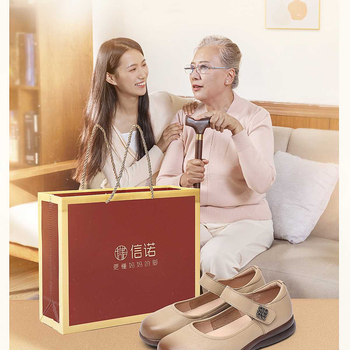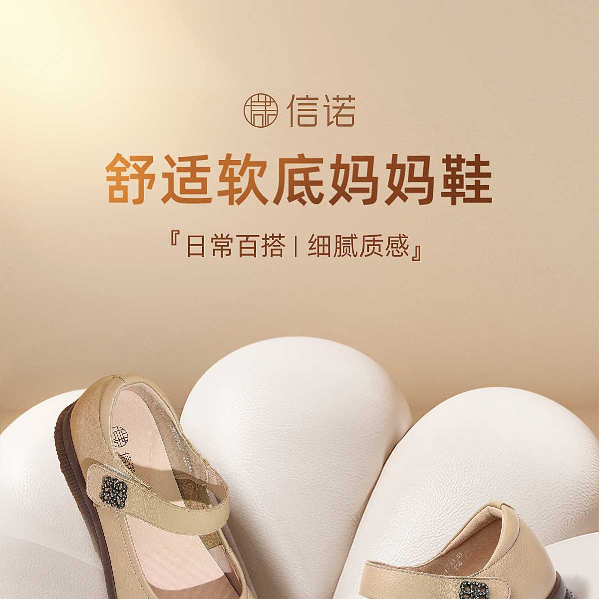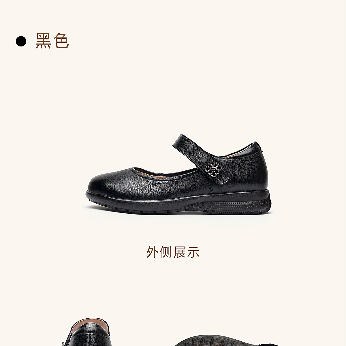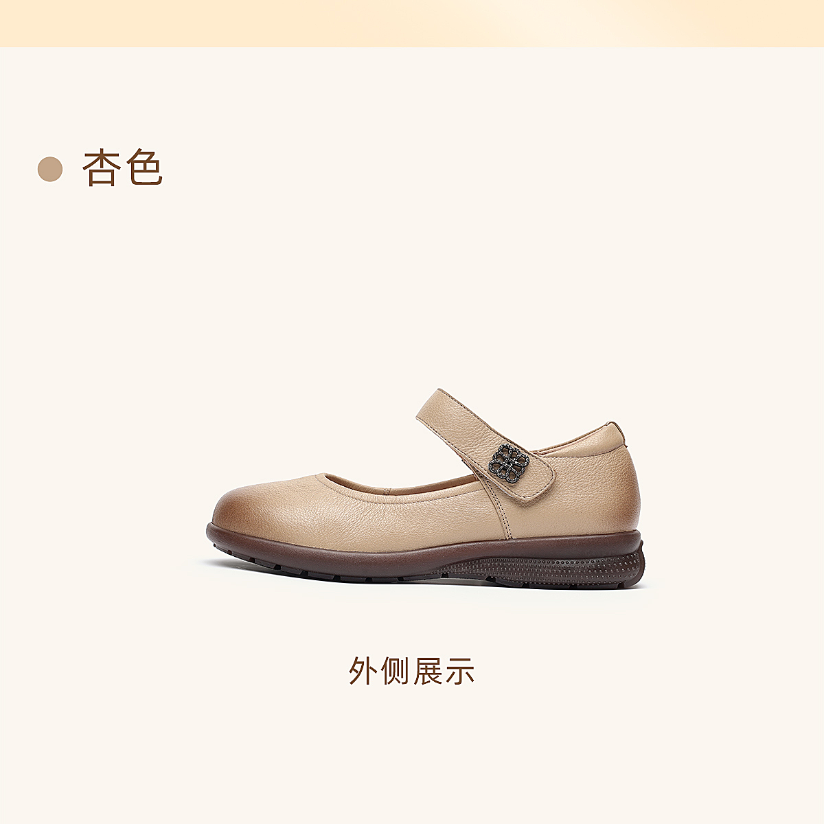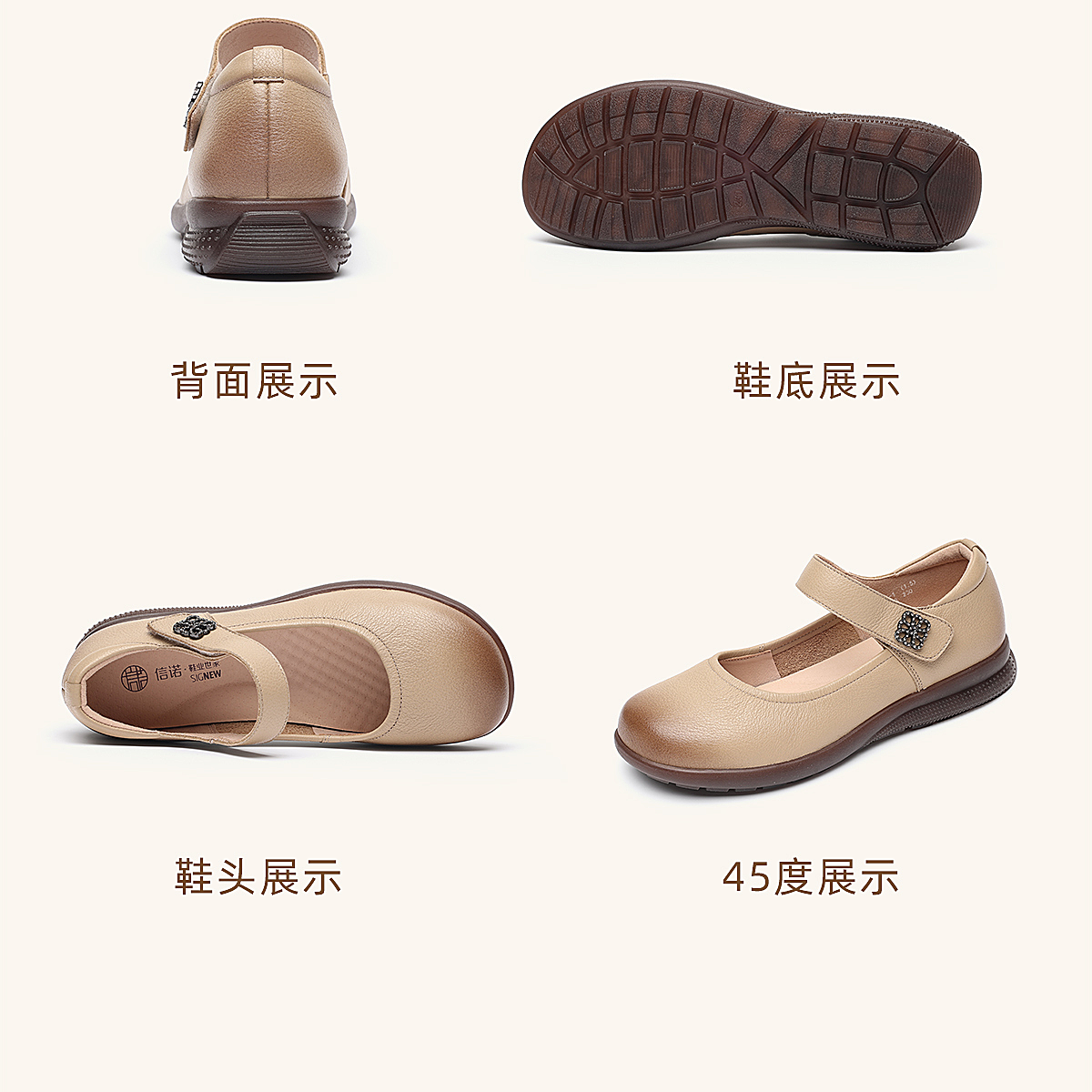 信诺真皮玛丽珍鞋女平底软底单鞋通勤风妈妈鞋舒适皮鞋6C1018-1
