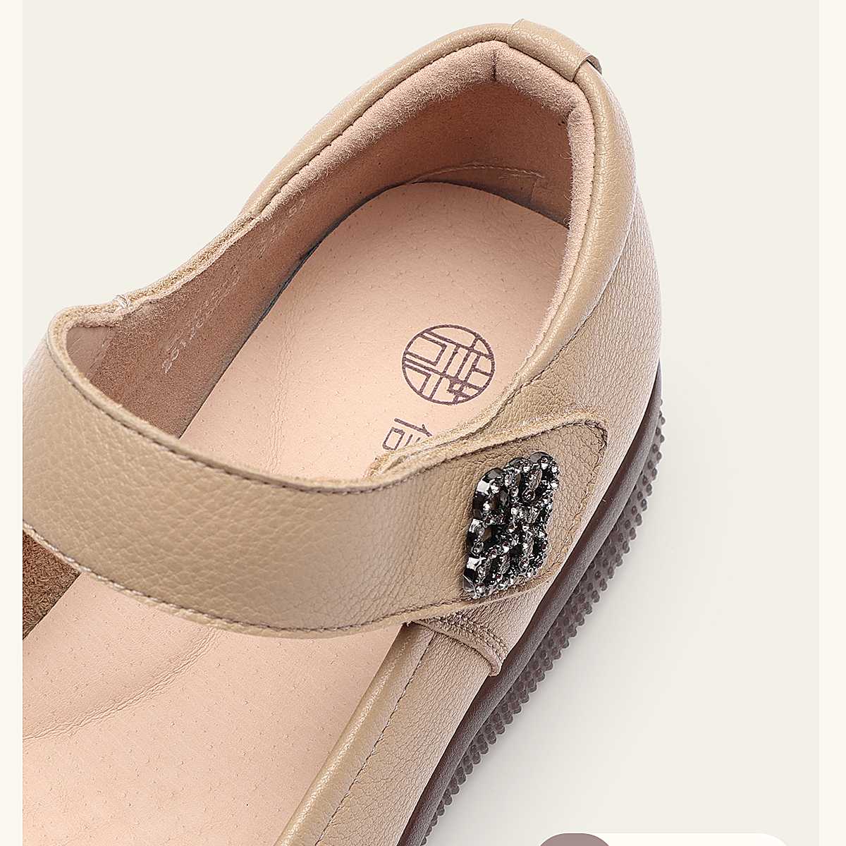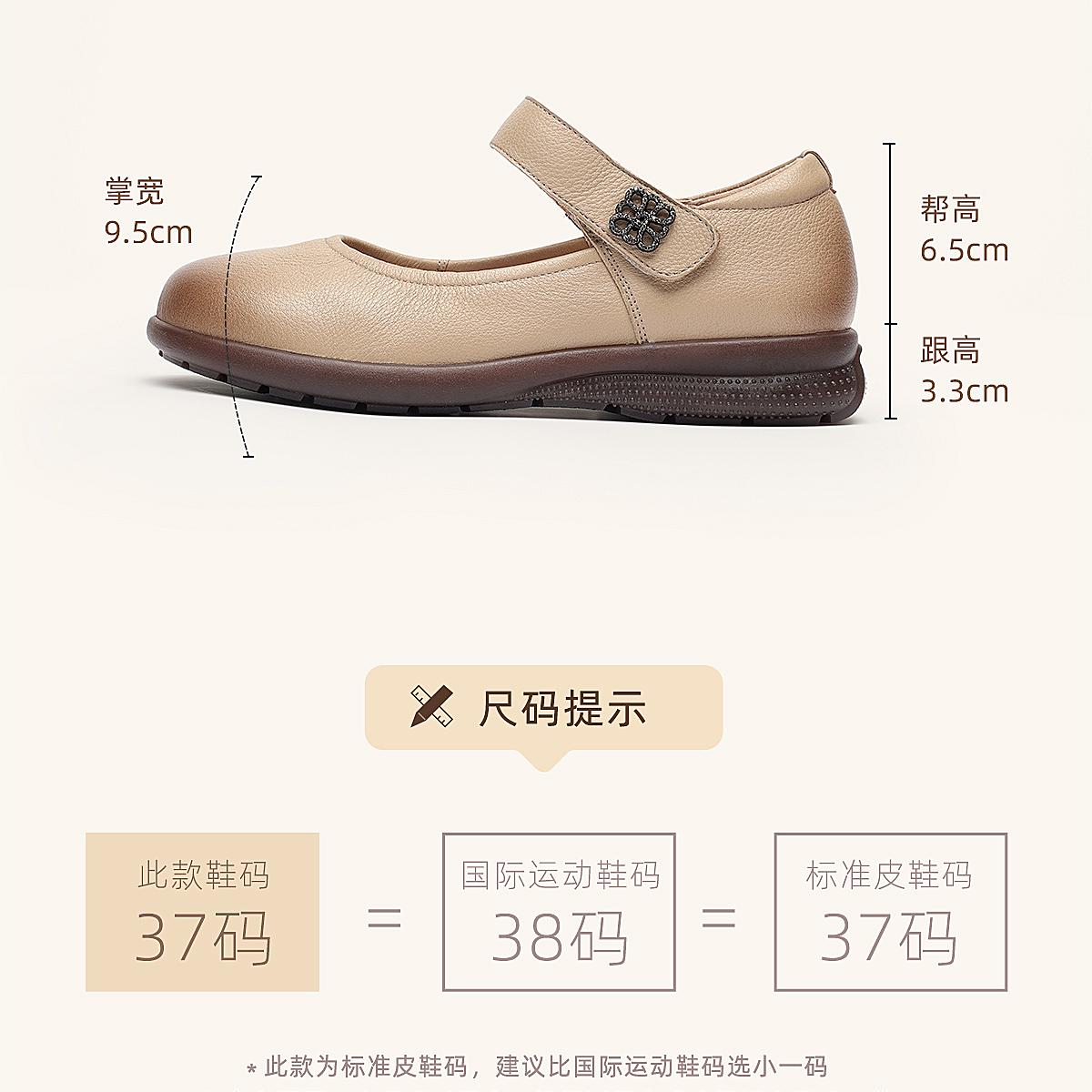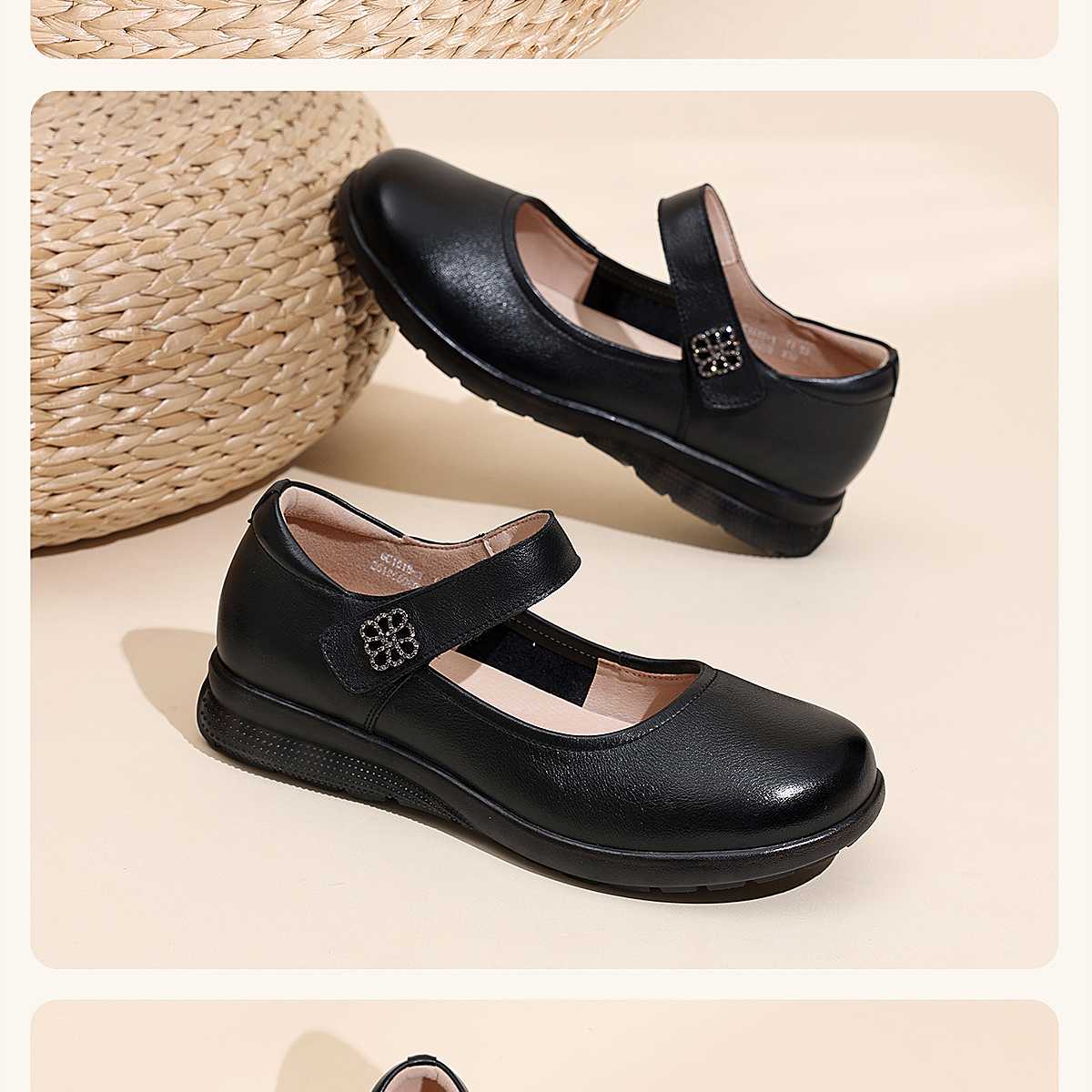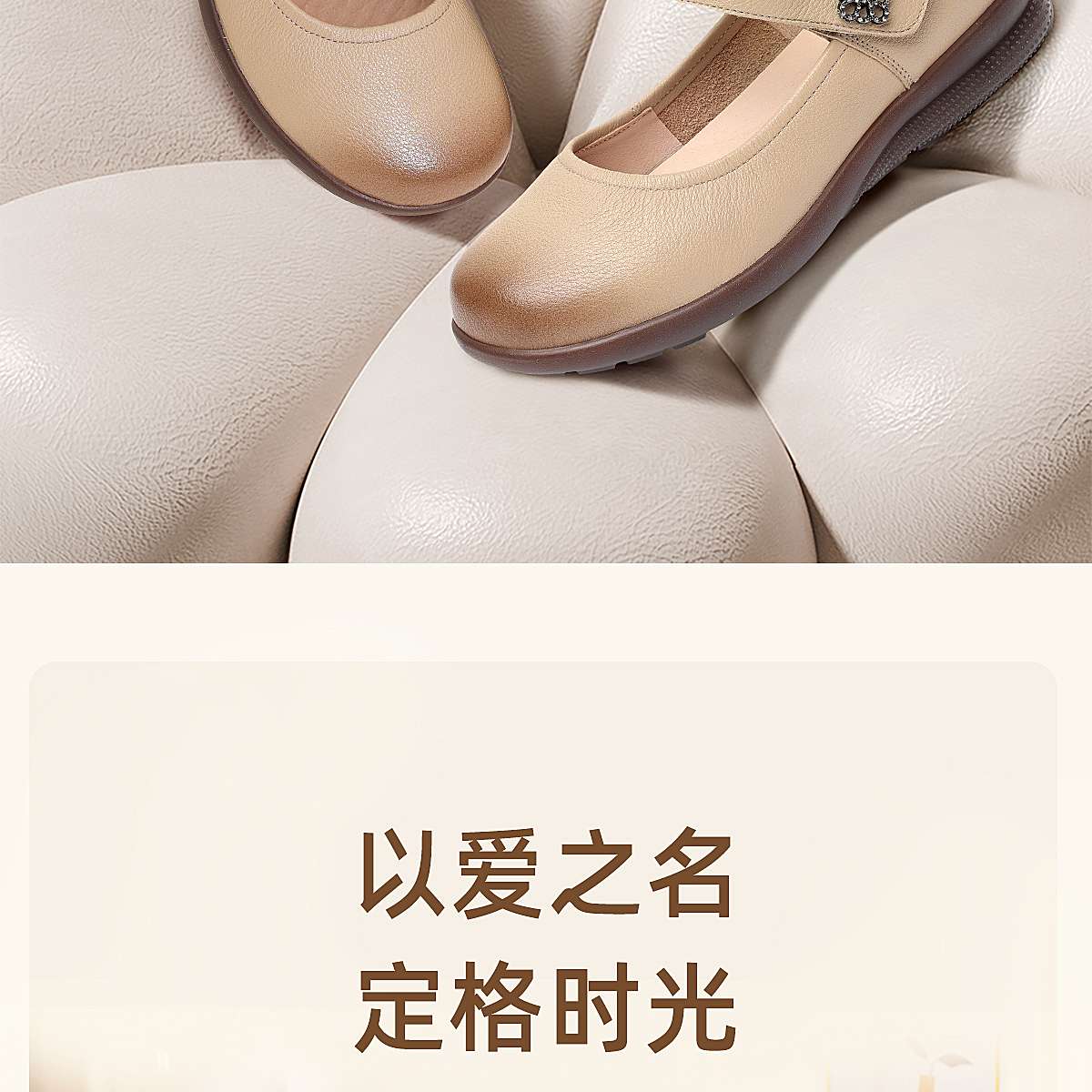 信诺真皮玛丽珍鞋女平底软底单鞋通勤风妈妈鞋舒适皮鞋6C1018-1
