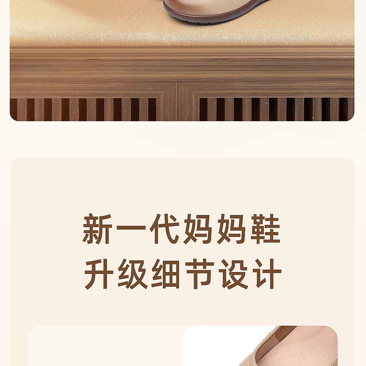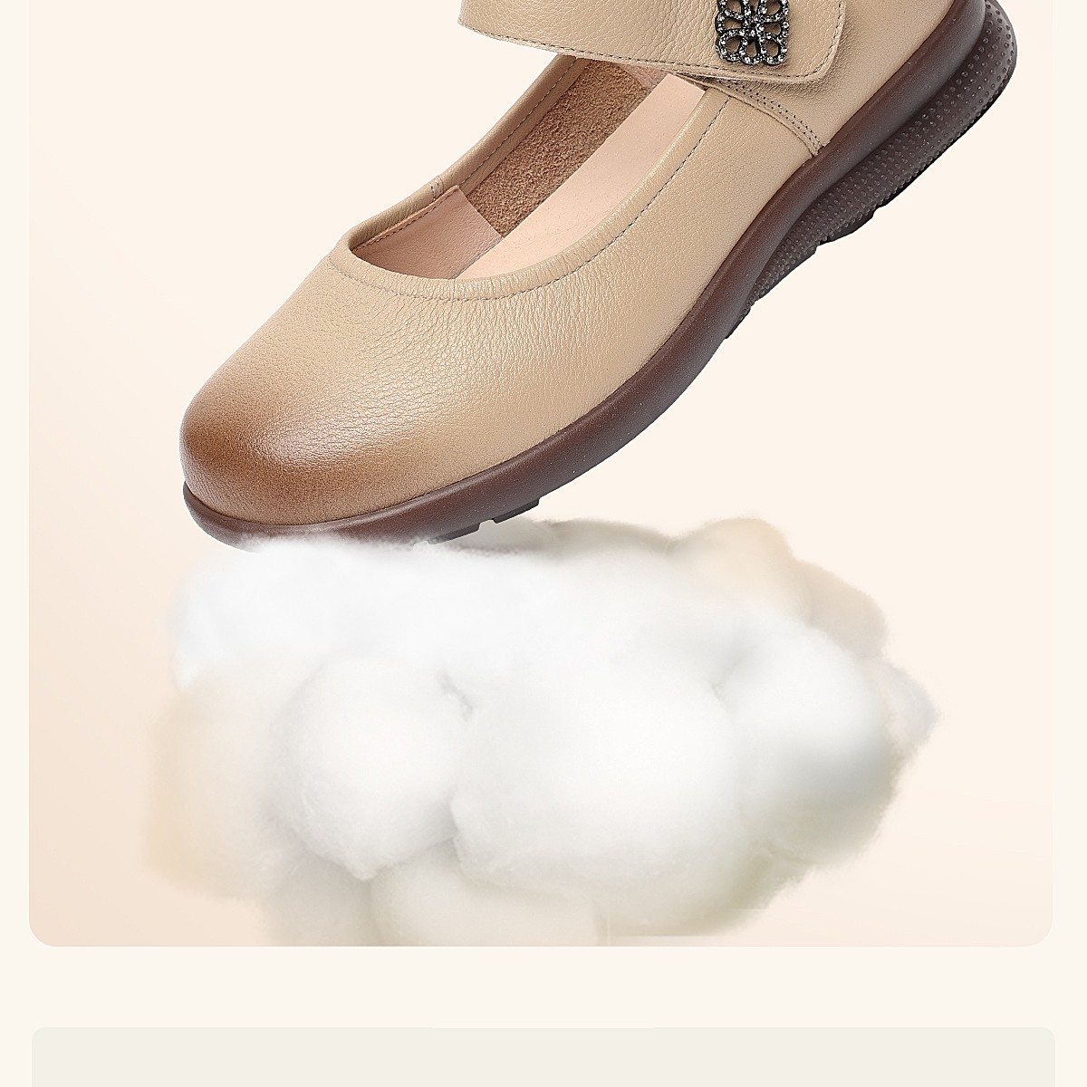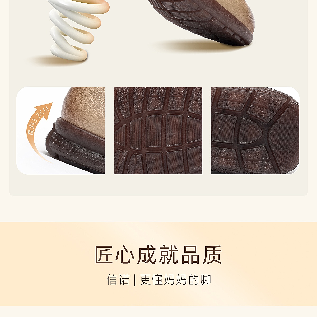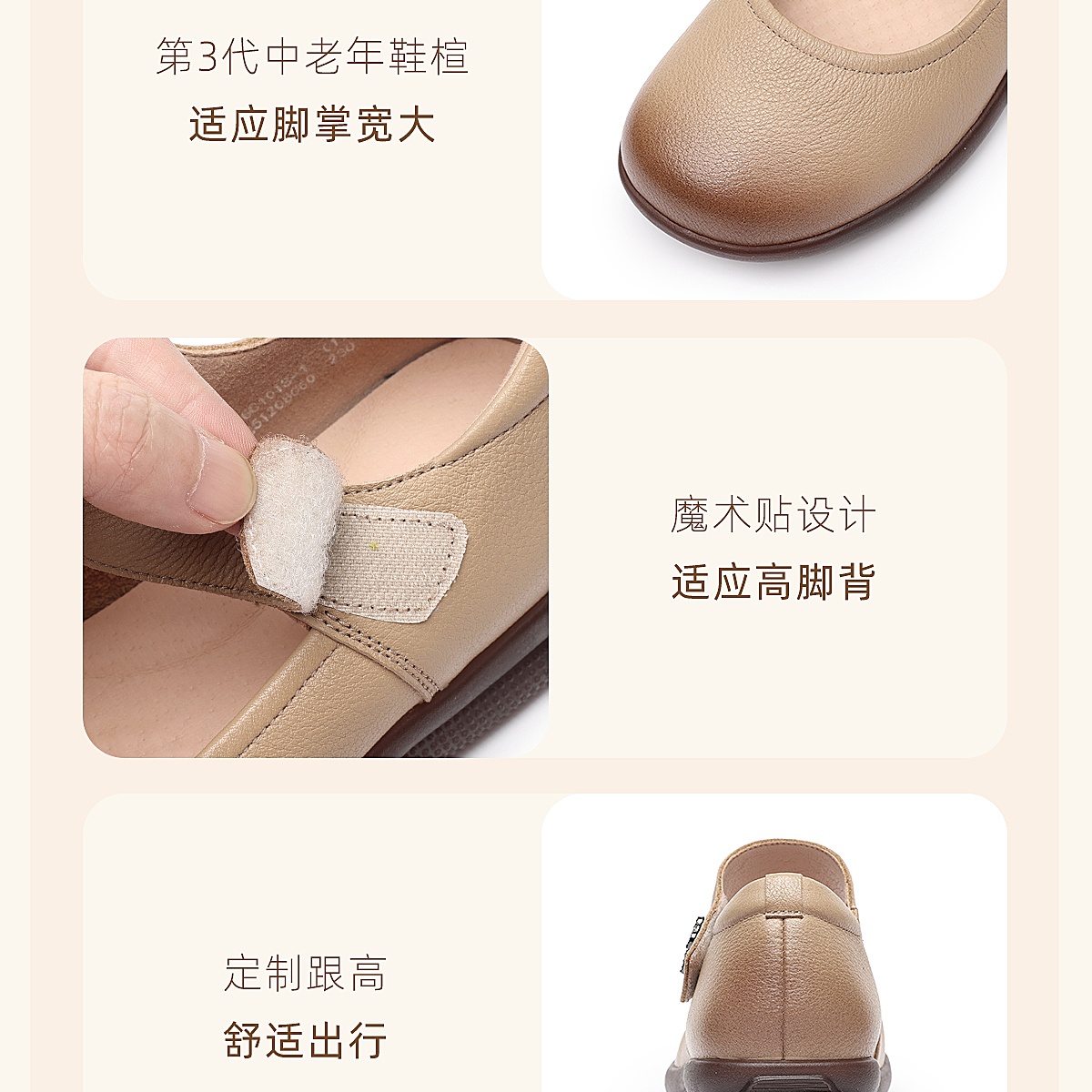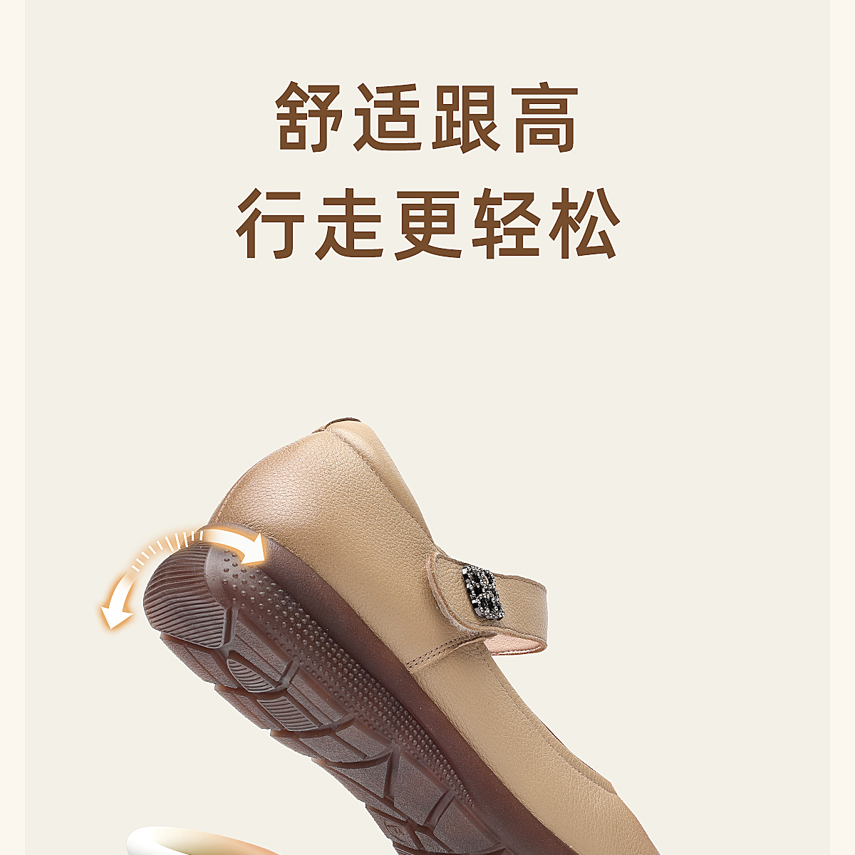 信诺真皮玛丽珍鞋女平底软底单鞋通勤风妈妈鞋舒适皮鞋6C1018-1