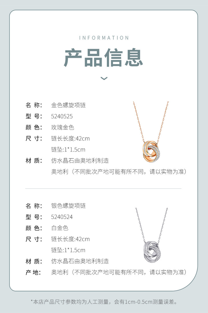 【一般贸易】SWAROVSKI/施华洛世奇 玫瑰金色转运螺旋女士项链吊坠5240525