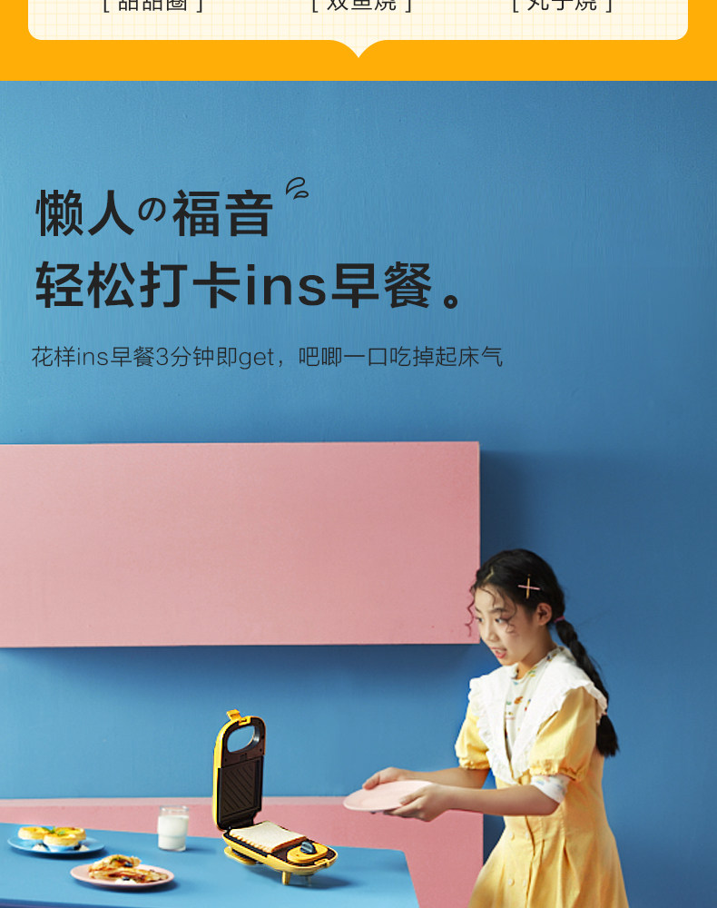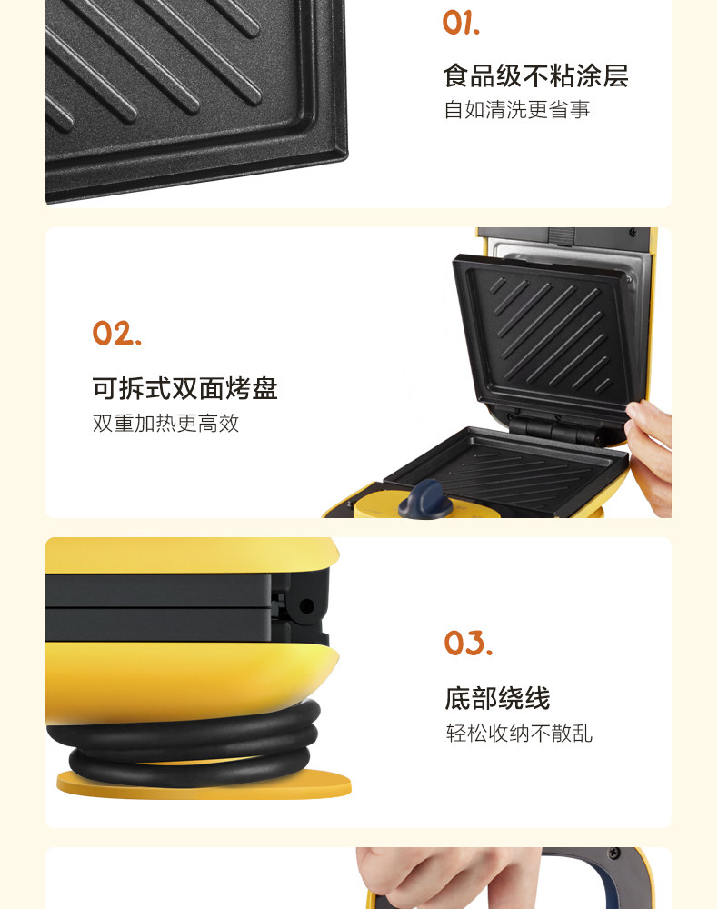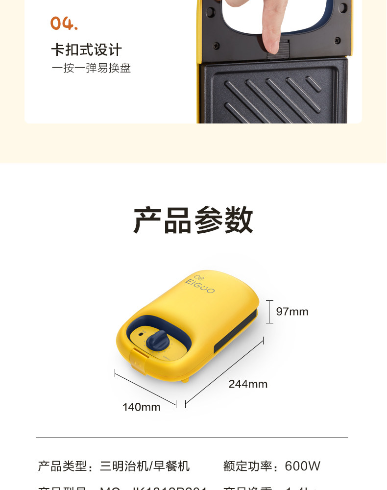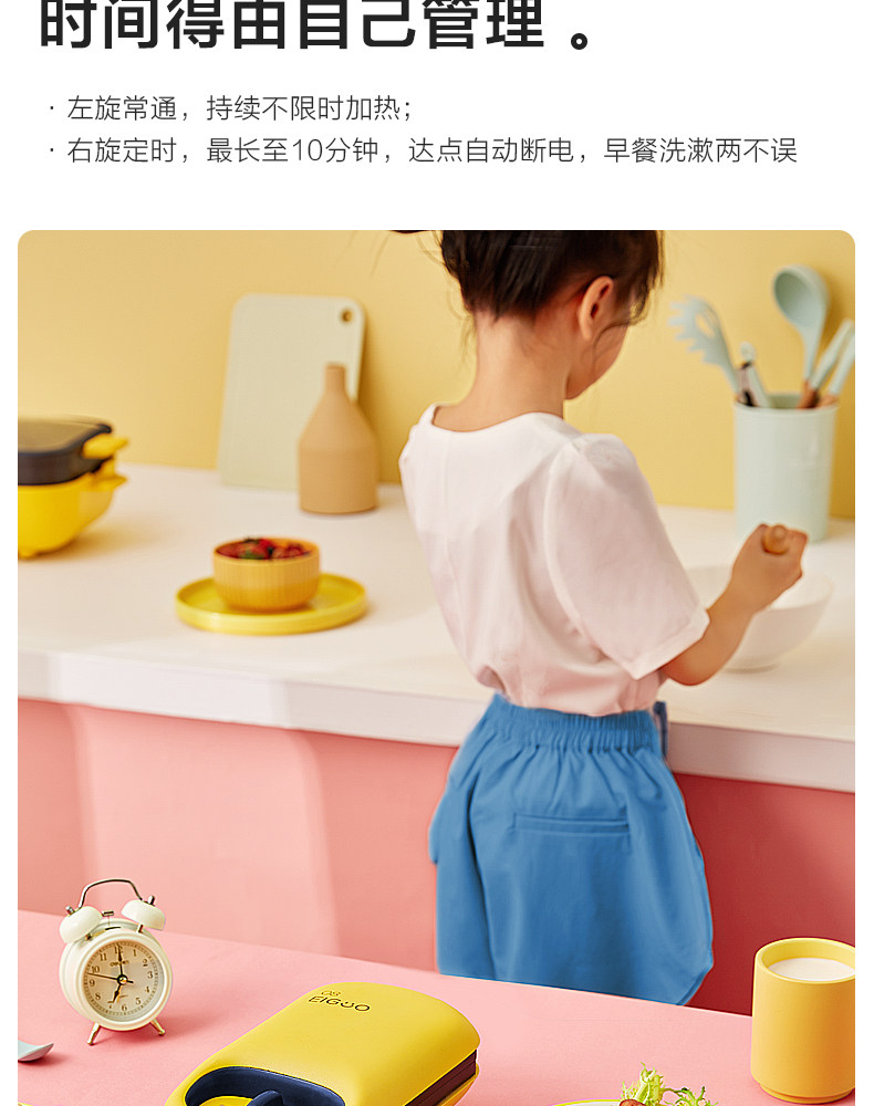 美的(509429)三明治机早餐机家用多功能加热压烤面包机捣蛋鬼JK1312P201Y