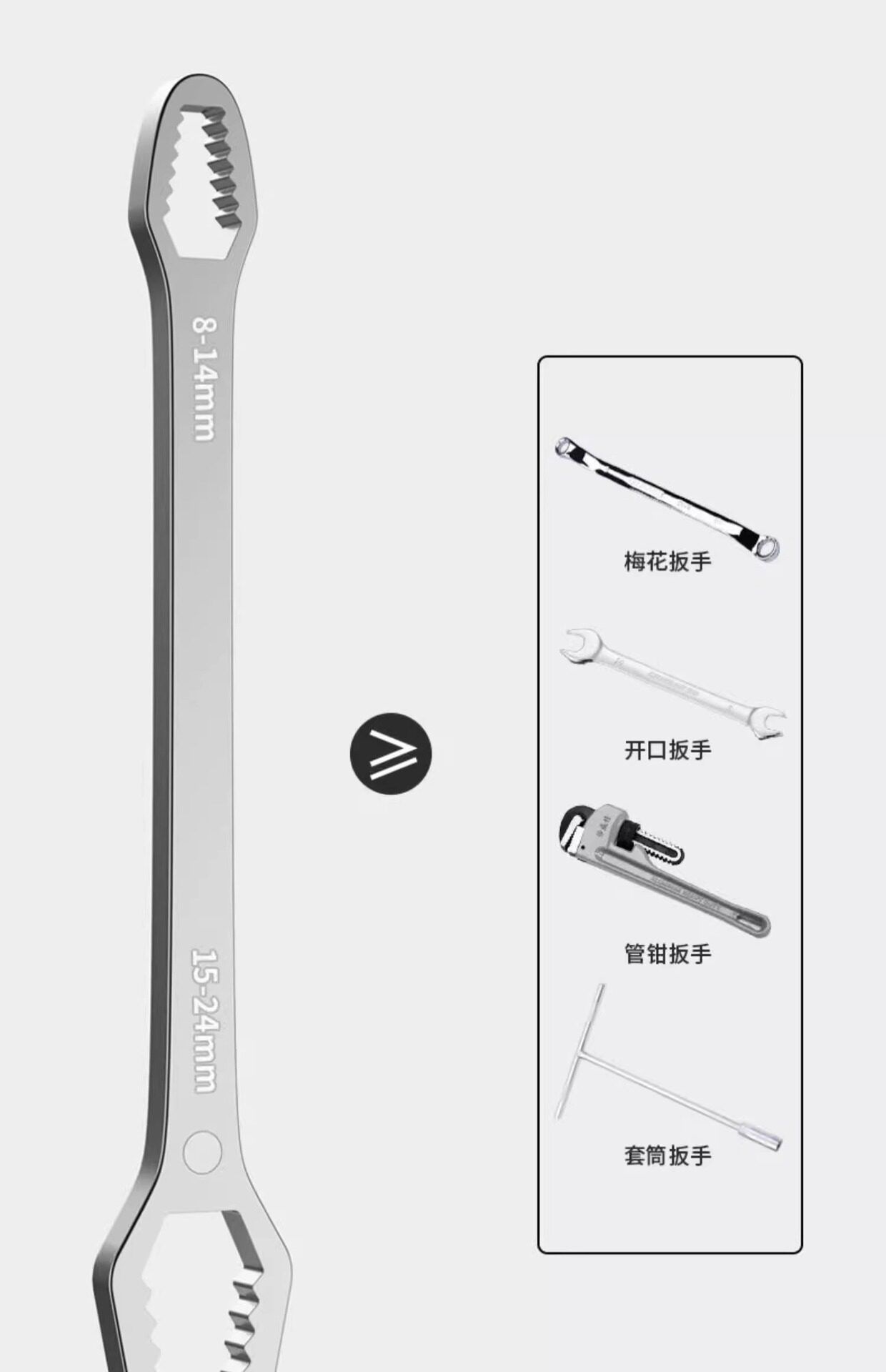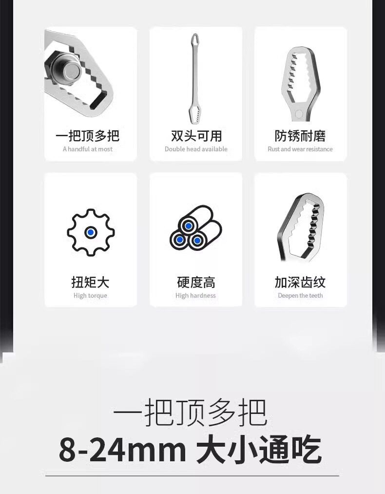 套装万能扳手8开口自紧24mm扳手-多功能批发梅花工具双头扳手活动