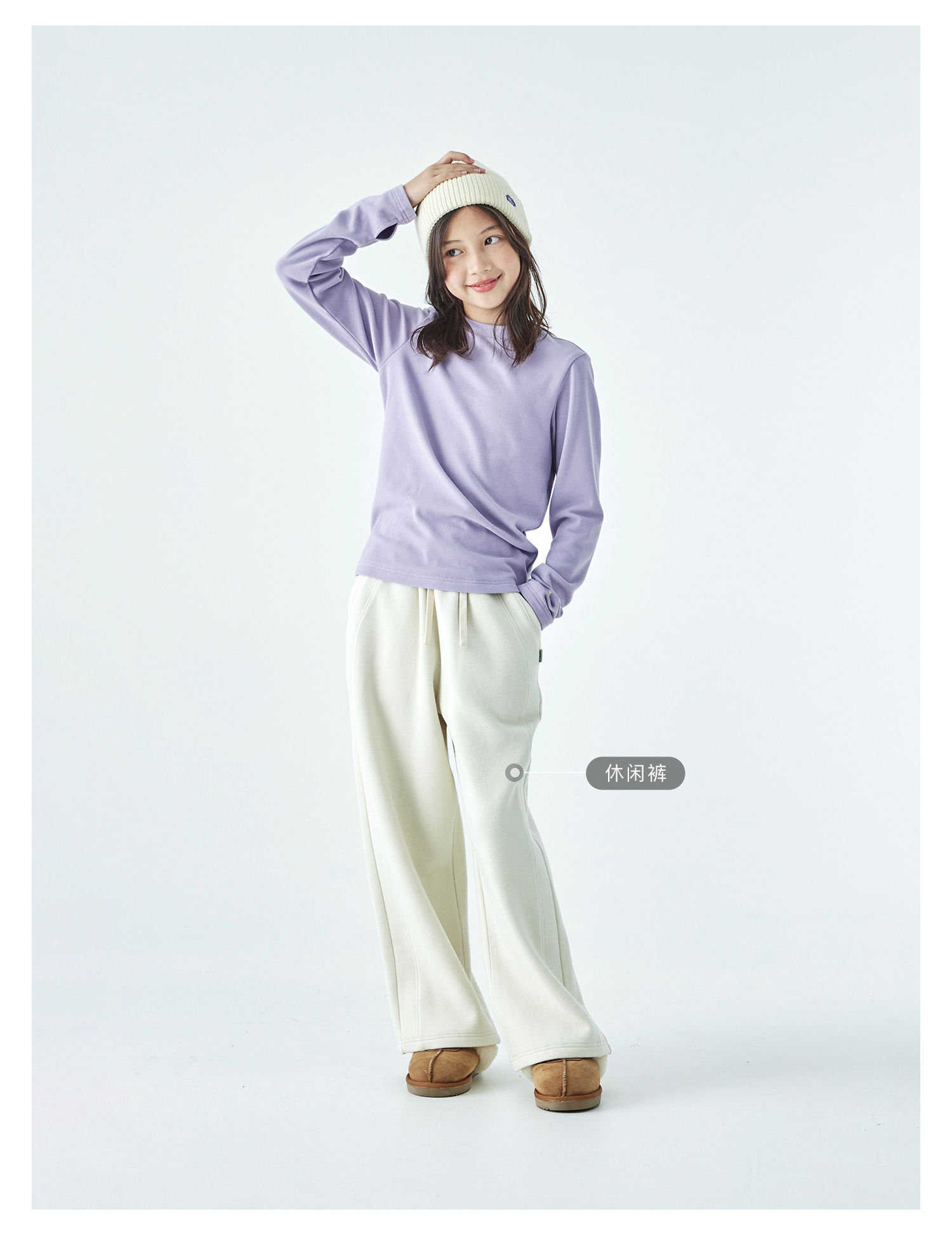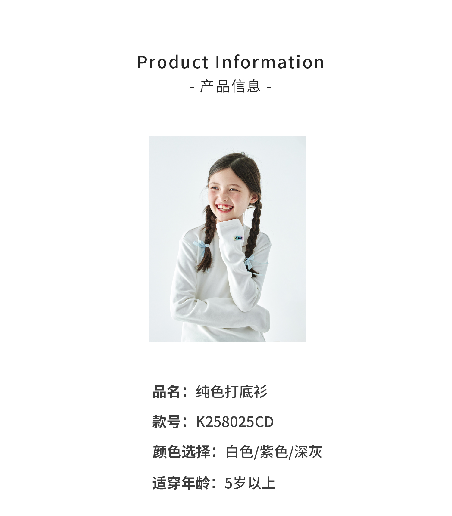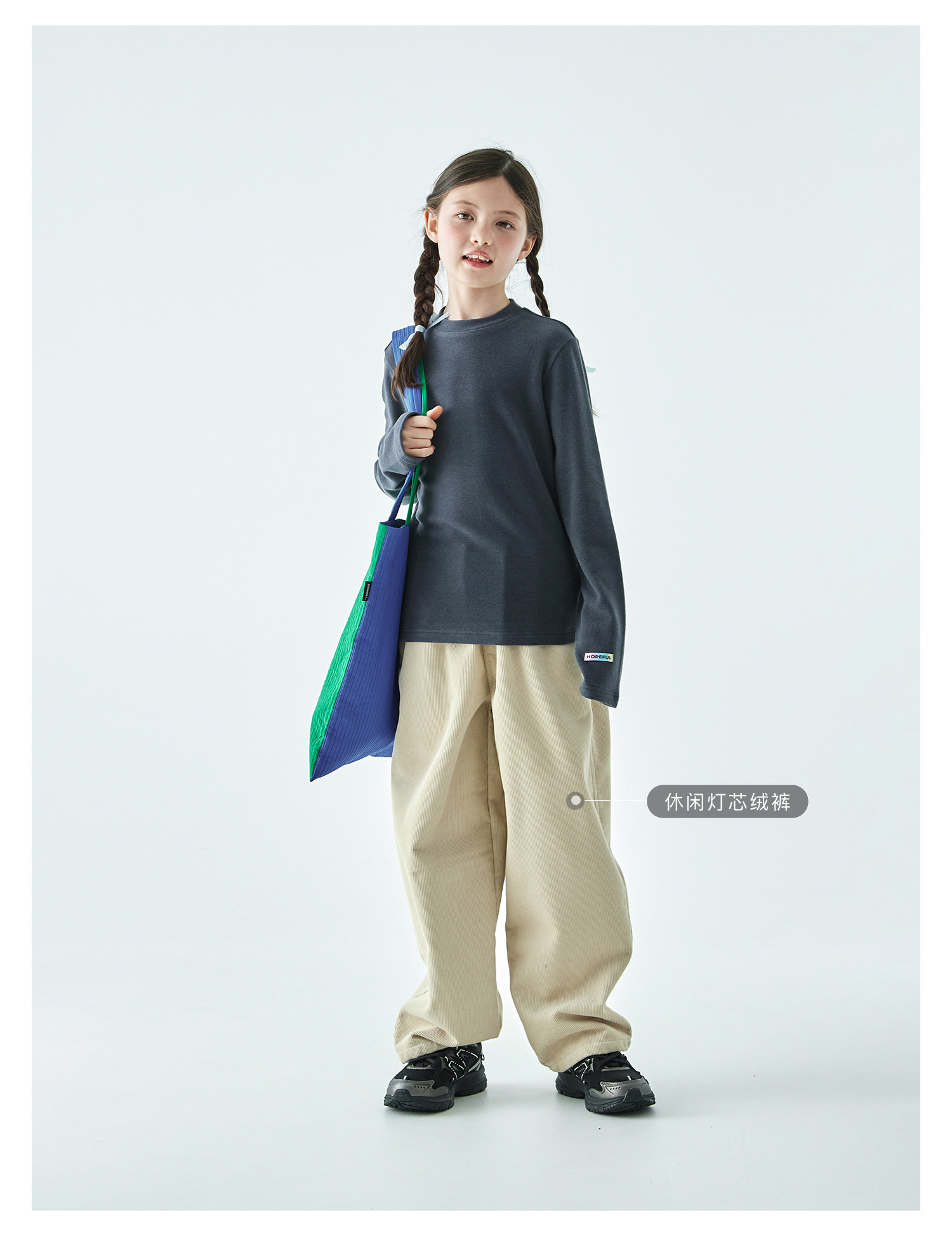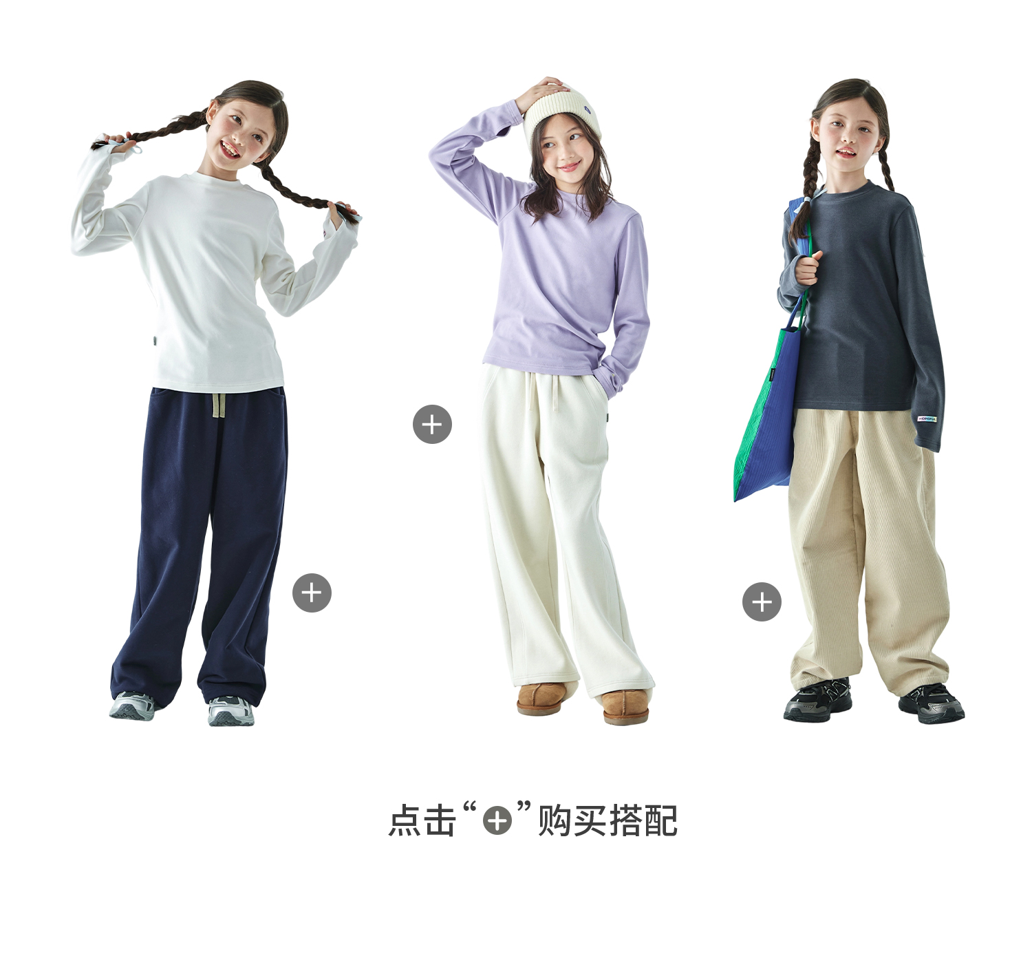 棵初25年秋冬季新款亲子中大女童纯色打底衫高回弹力三色长袖T恤