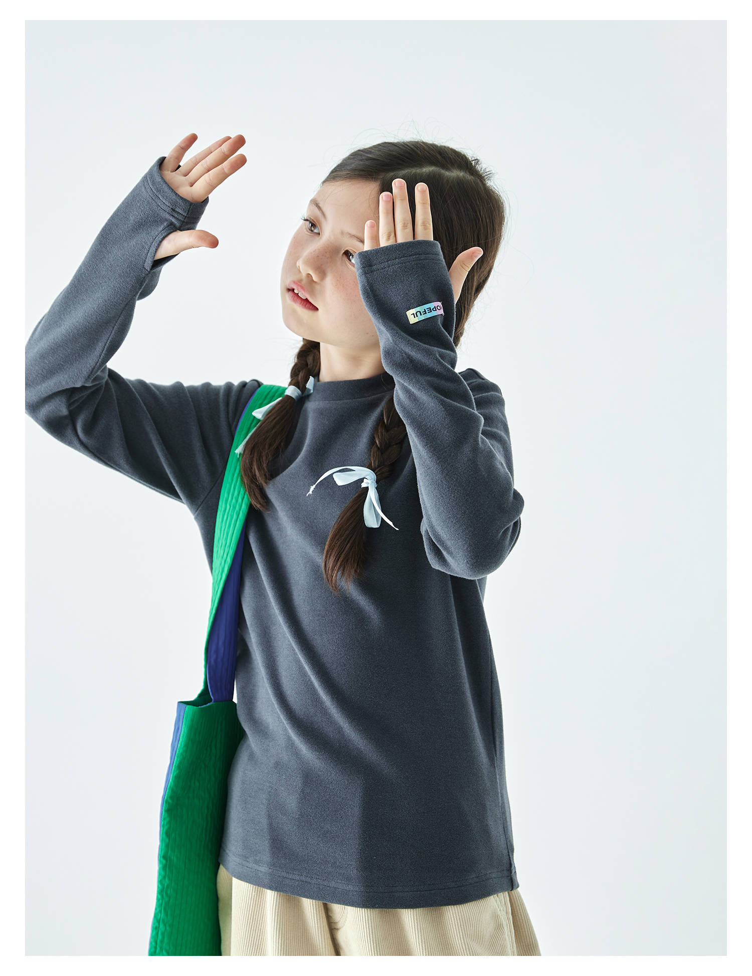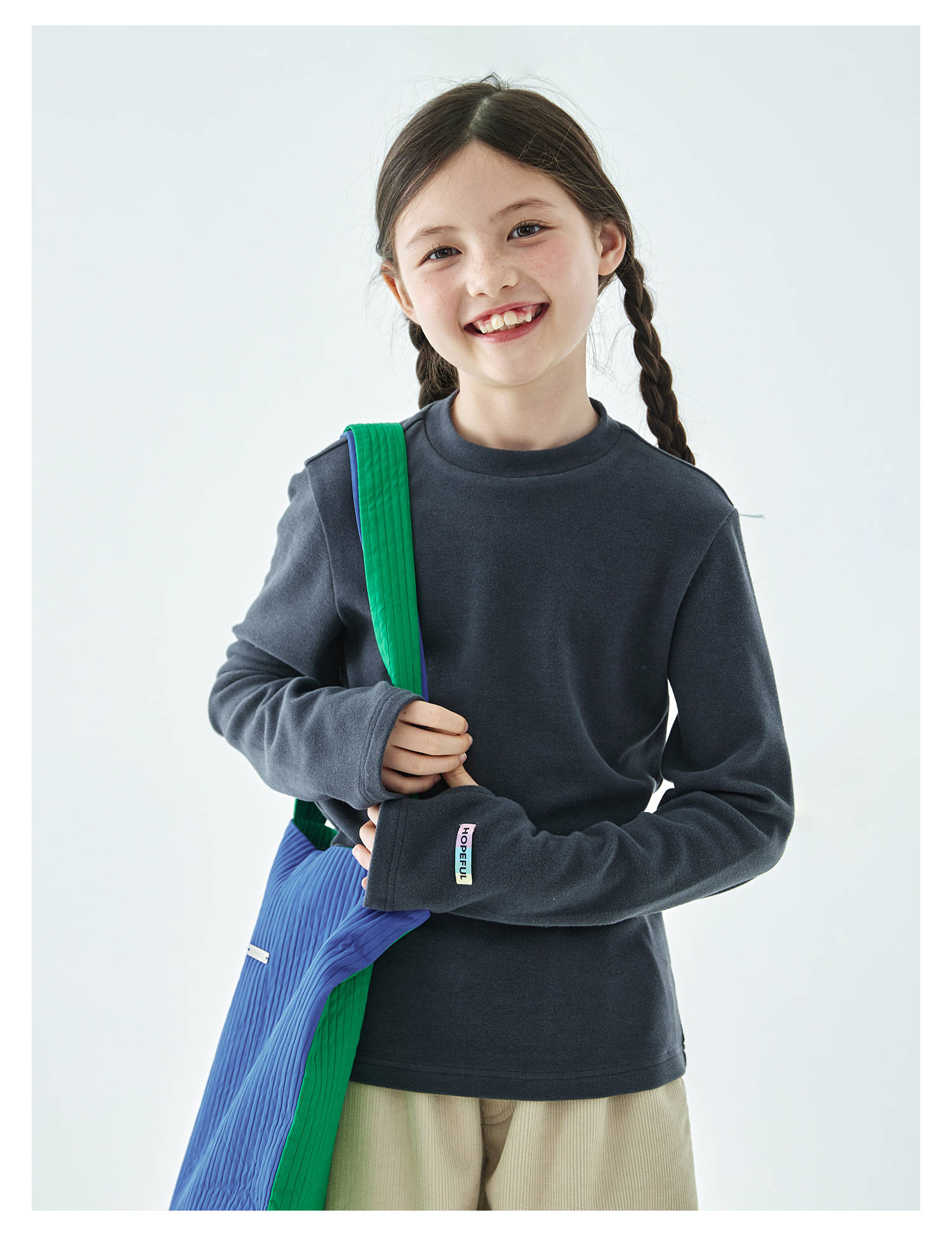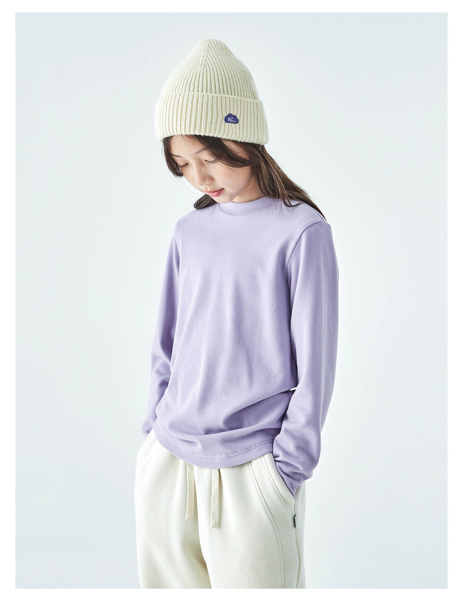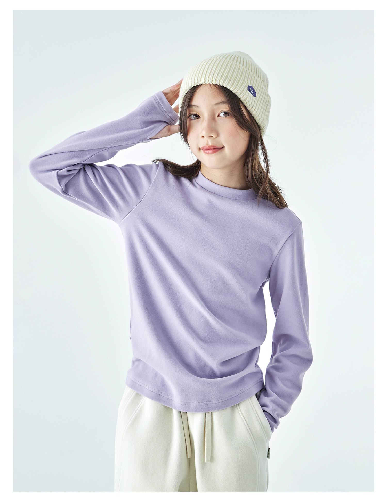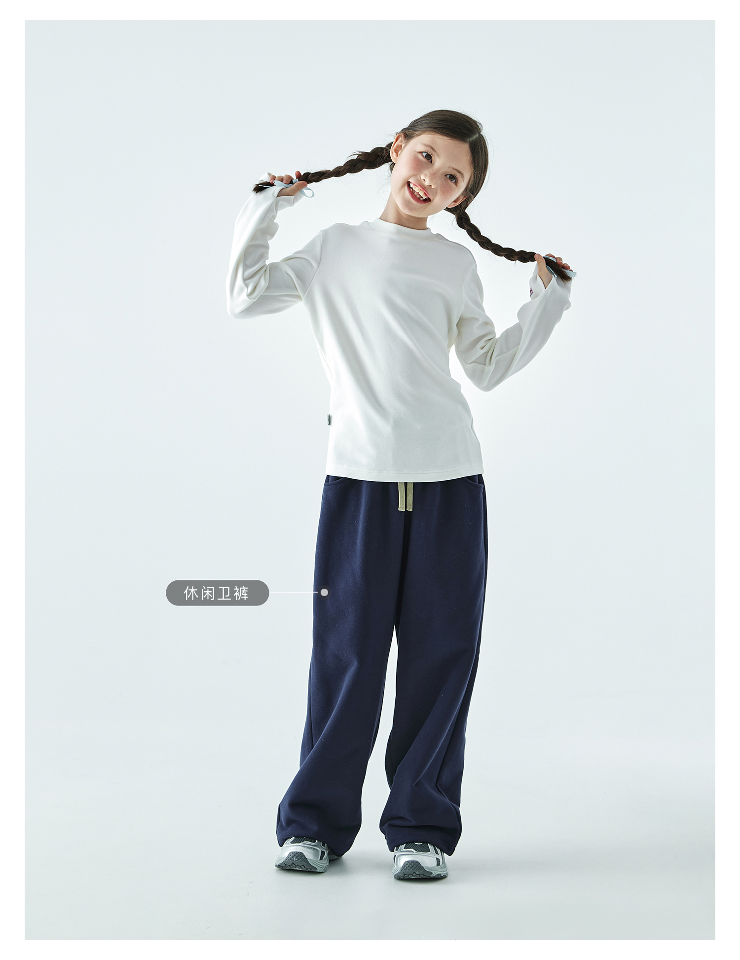 棵初25年秋冬季新款亲子中大女童纯色打底衫高回弹力三色长袖T恤
