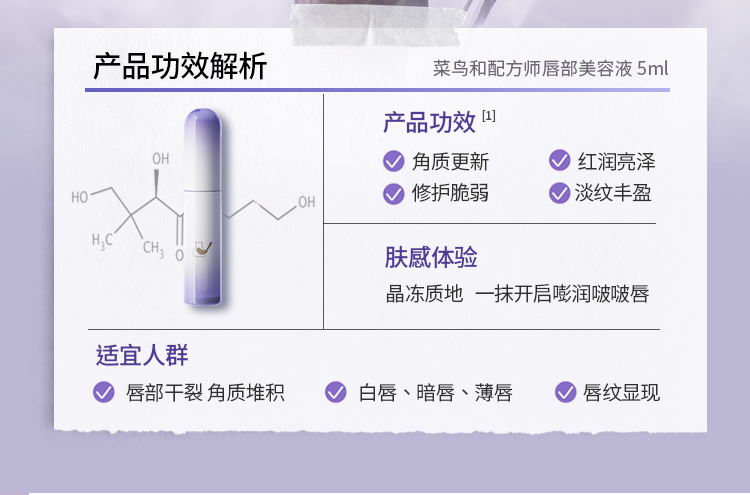 【岁末甄选】菜鸟和配方师唇部美容液保湿补水滋润去死皮淡纹精华1支装