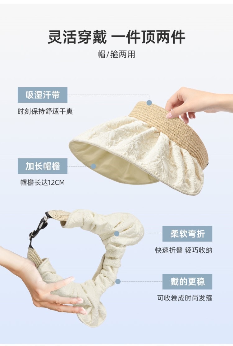 「19.9元包邮!柔软可卷」防晒帽女夏季双面贝壳帽 遮阳帽空顶太阳帽子夏天大檐骑车配饰