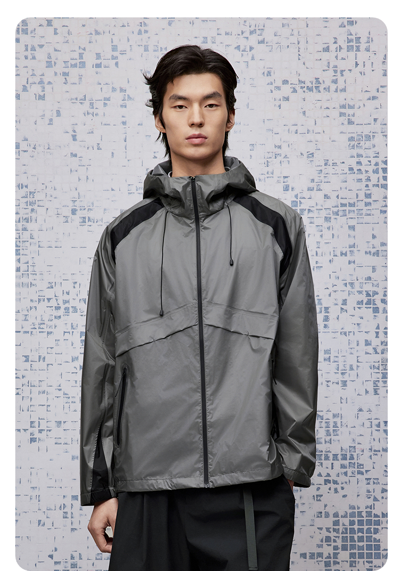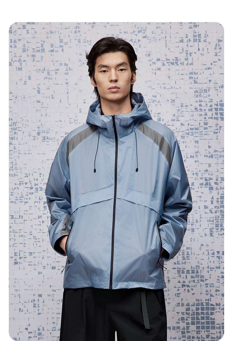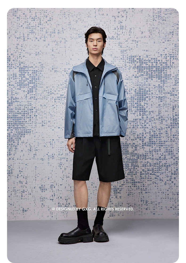 GXG男装 撞色分割通勤外套拉链设计简约都市连帽夹克25夏热卖
