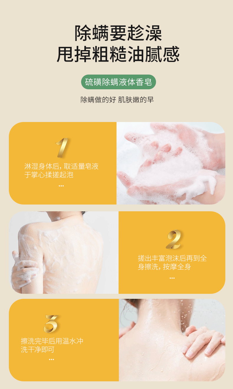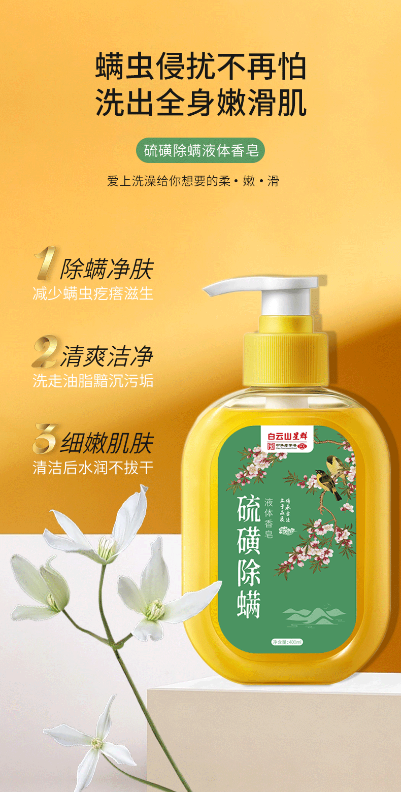 【保湿滋养❗除螨净肤】硫磺除螨液体香皂除螨沐浴露液体香皂家用清洁洗澡净螨硫磺沐浴露。xa