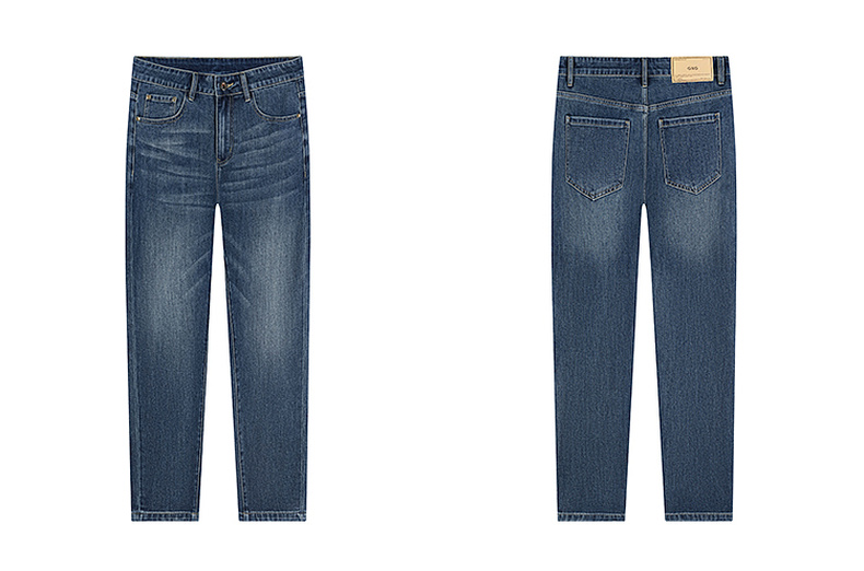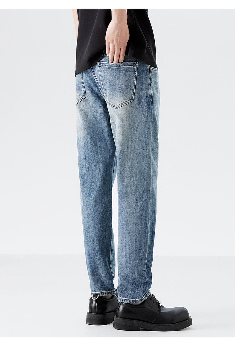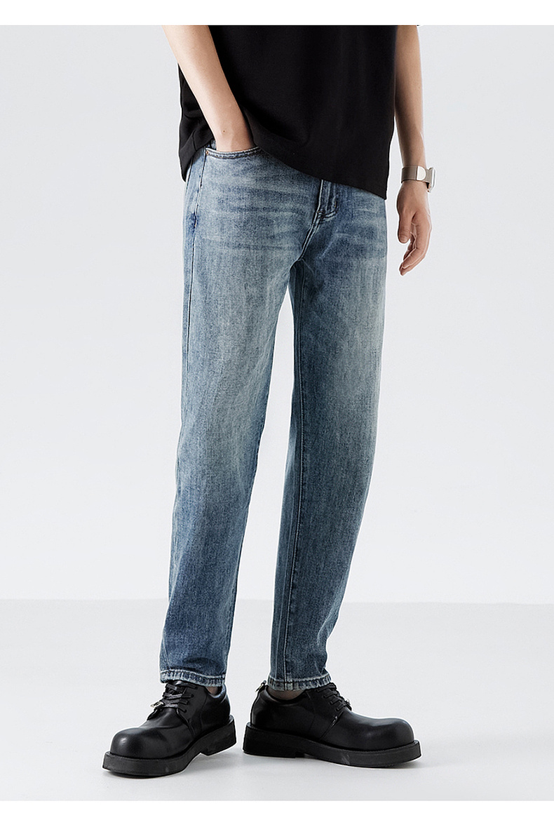 MODE COMMUTER | MC复古蓝灰水洗撞色线迹O型牛仔长裤