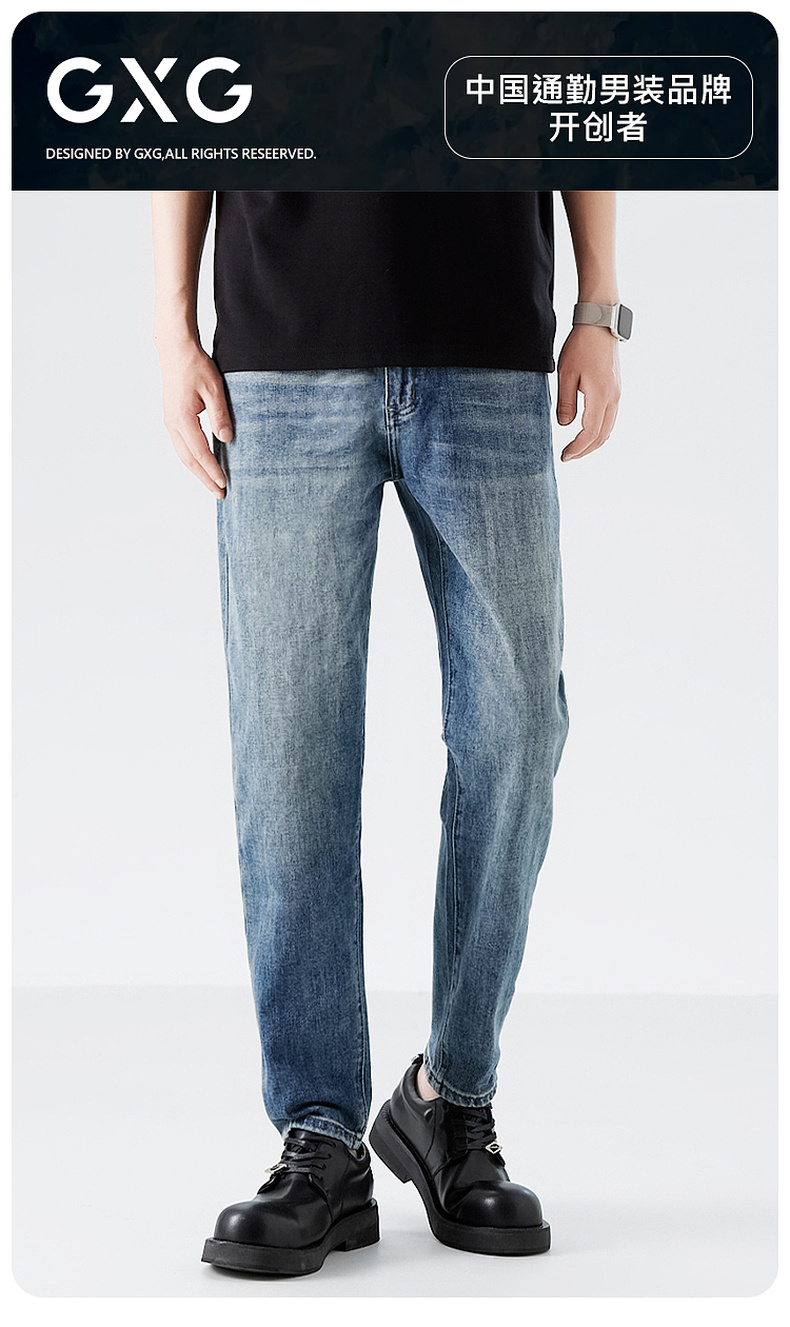 GXG男装26春季潮流经典水洗复古百搭舒适休闲直筒裤男式牛仔长裤K&C
