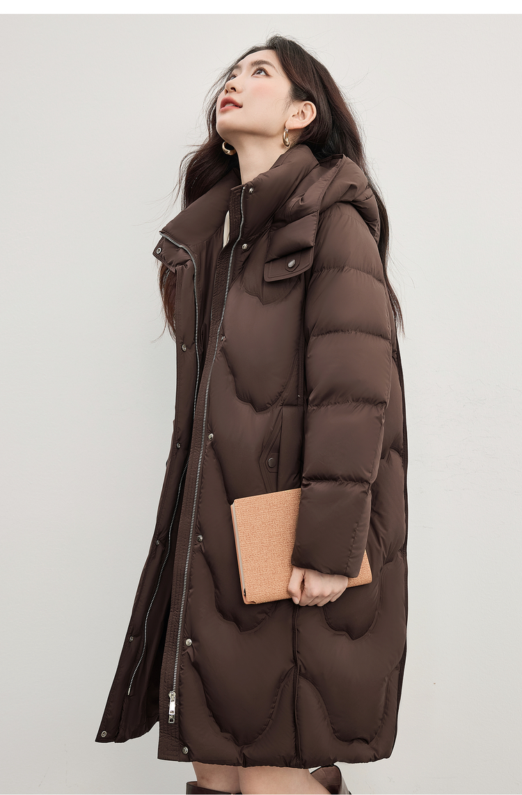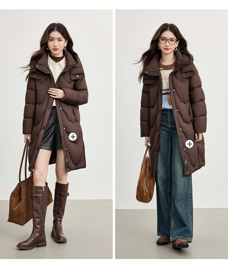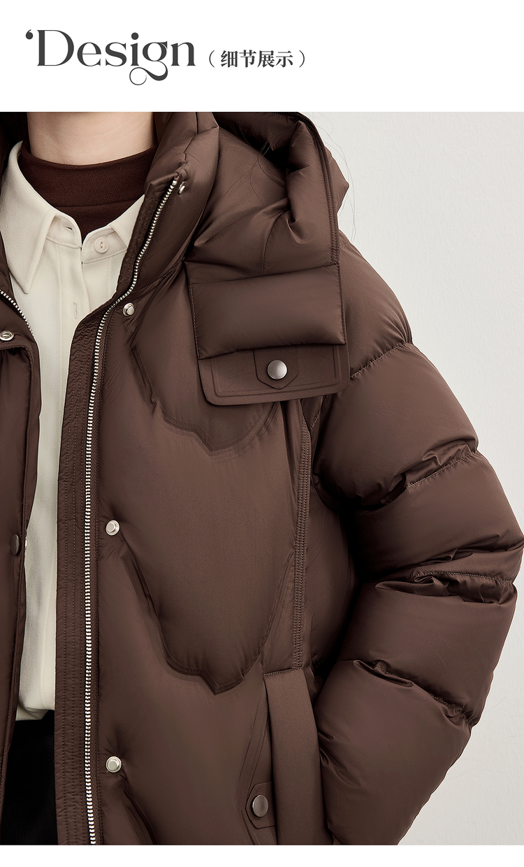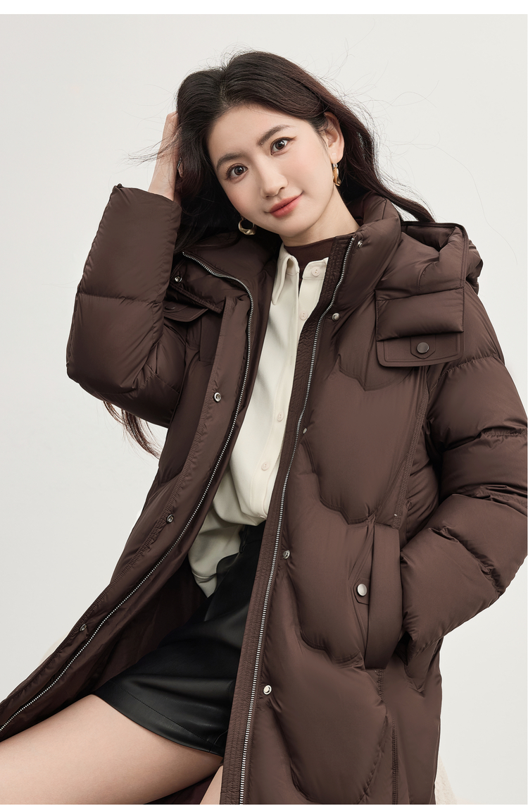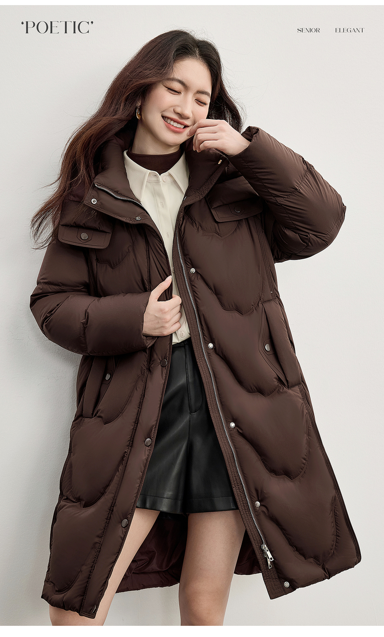 【年货节】熙世界静奢老钱风咖色羽绒服女中长款白鸭绒御寒外套2025冬季新款