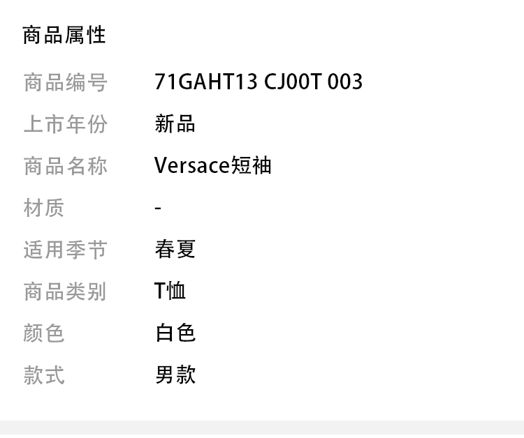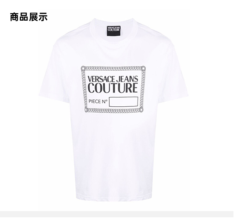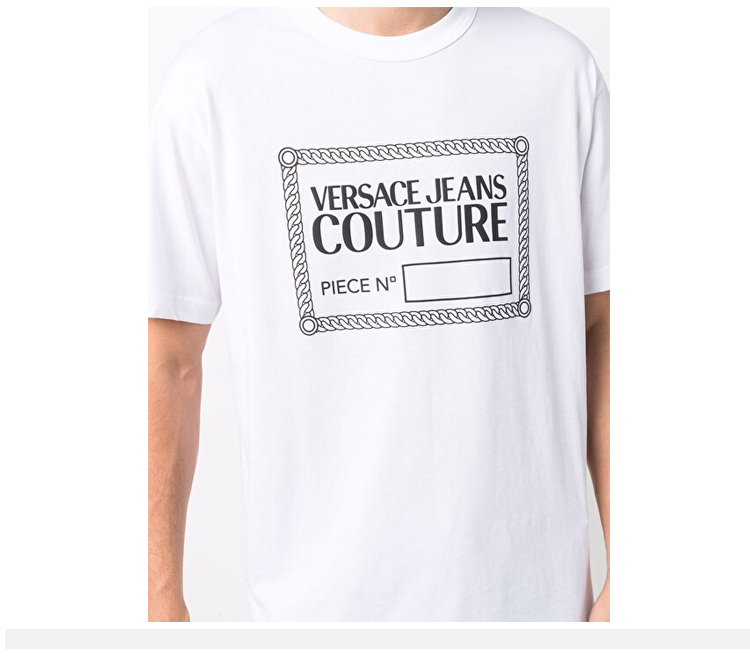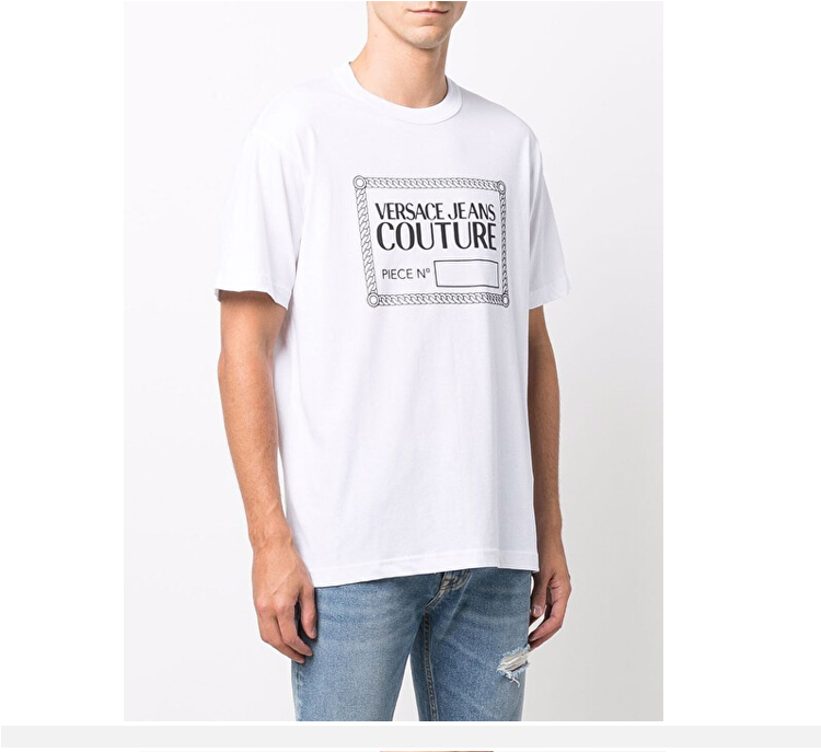 VERSACE JEANS COUTURE 范思哲 男士棉质字母徽标印花圆领短袖T恤 白色 71GAHT13 CJ00T 003