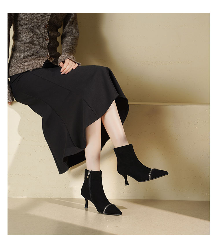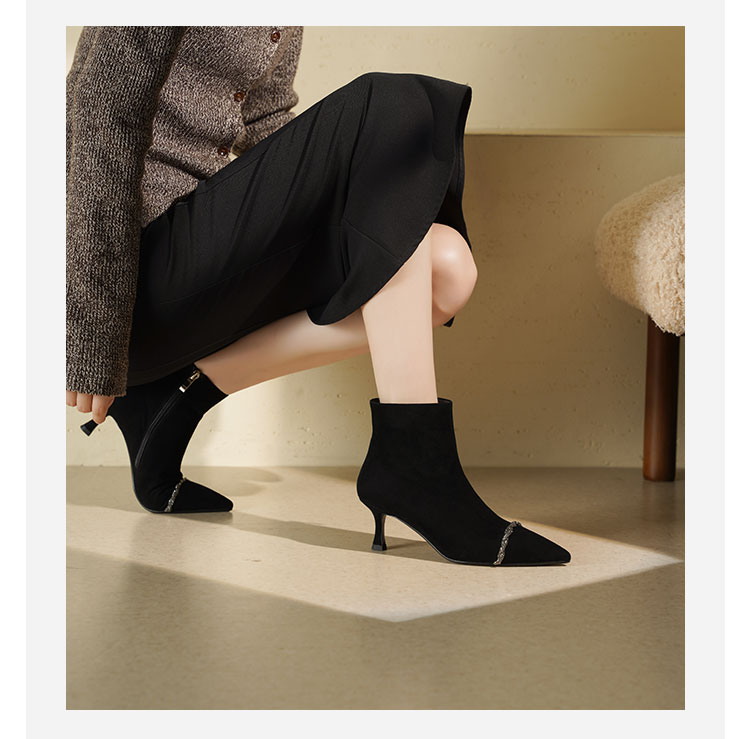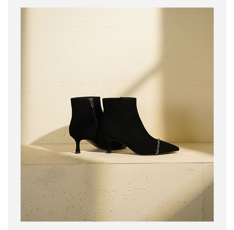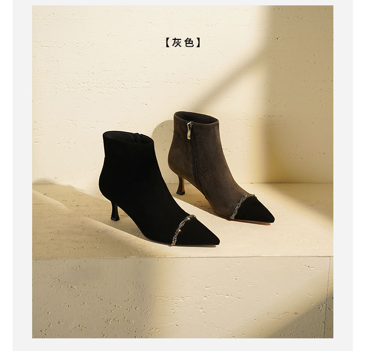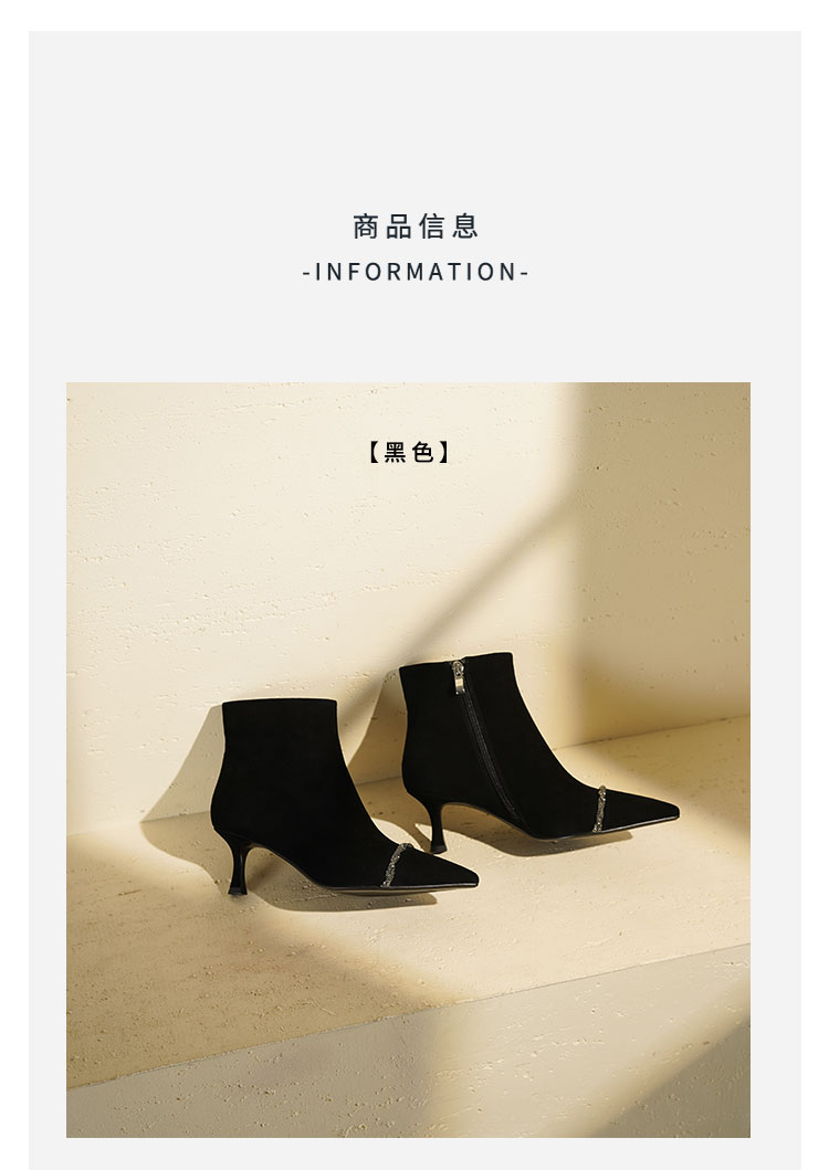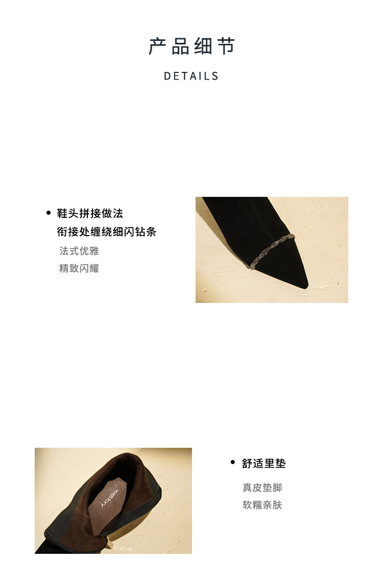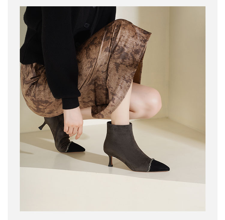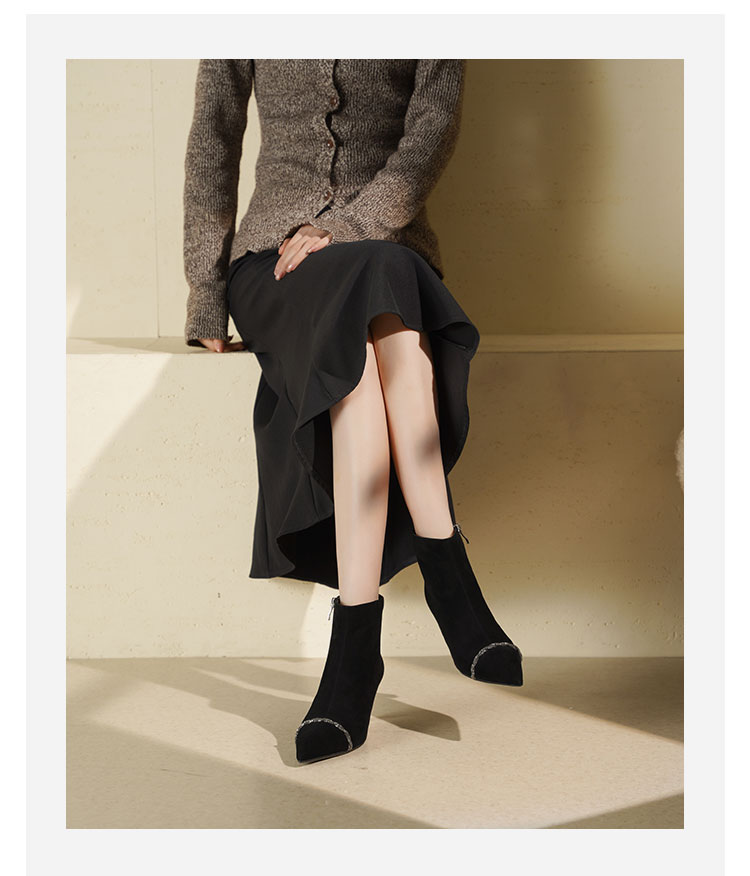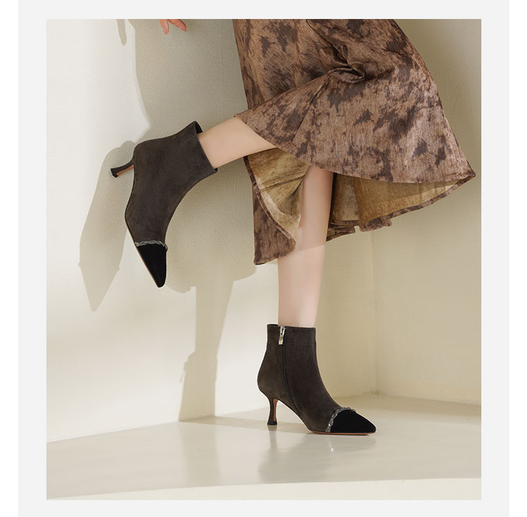 Westory2025年冬季尖头高跟小香风拼接优雅短靴S25DS85891