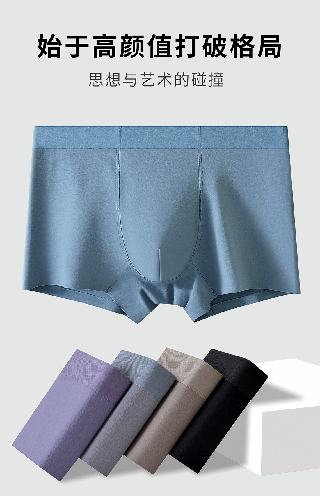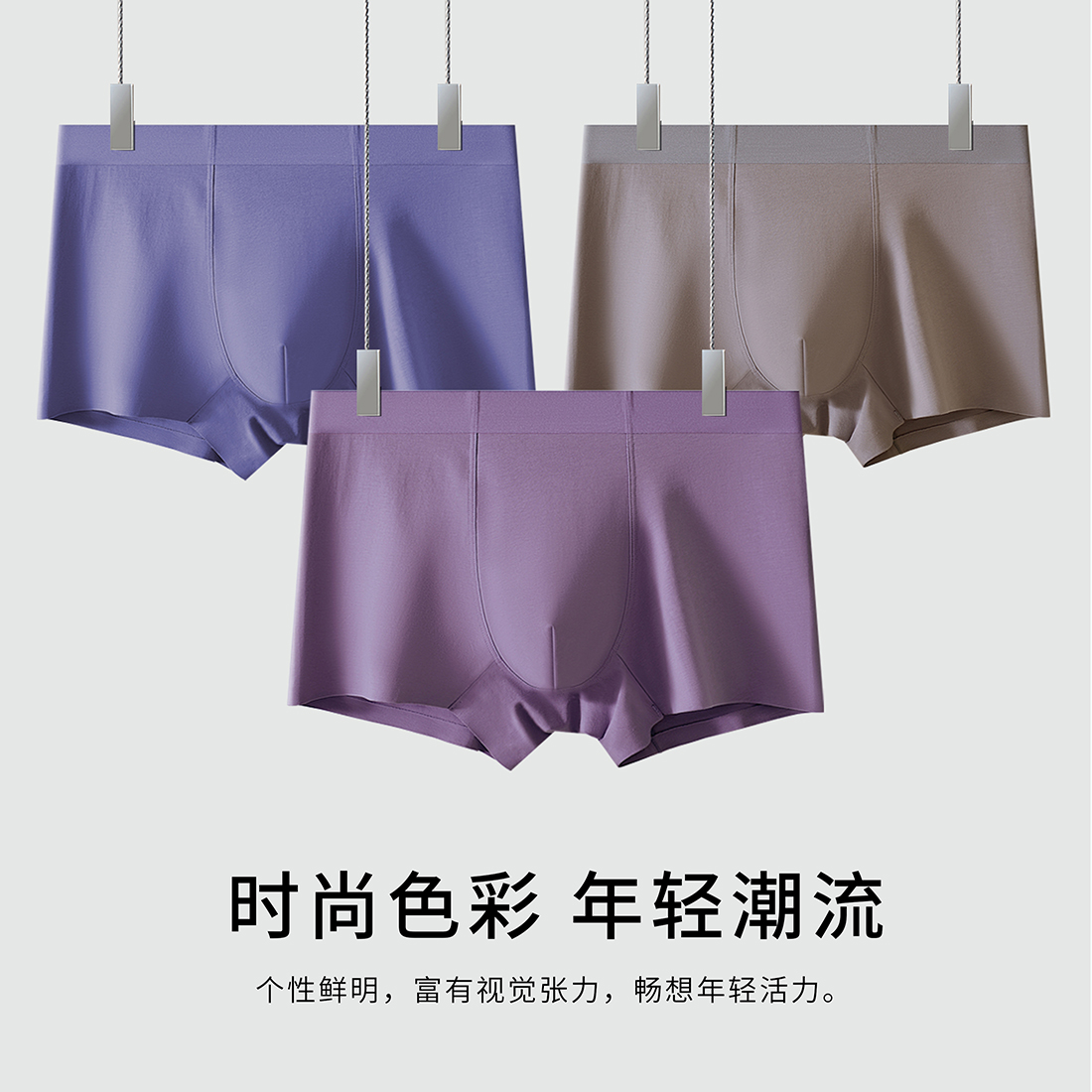 新款男士莱赛尔简约时尚印花包头平角内裤舒适透气四角裤3011