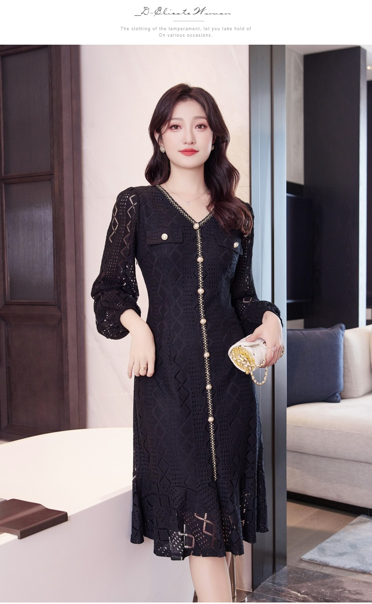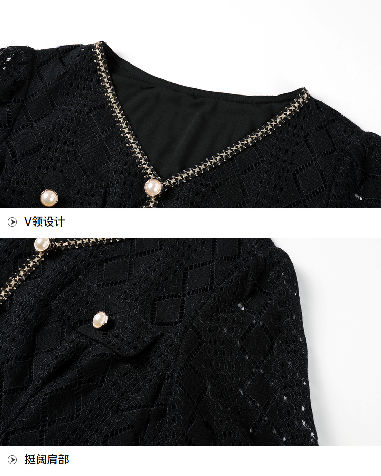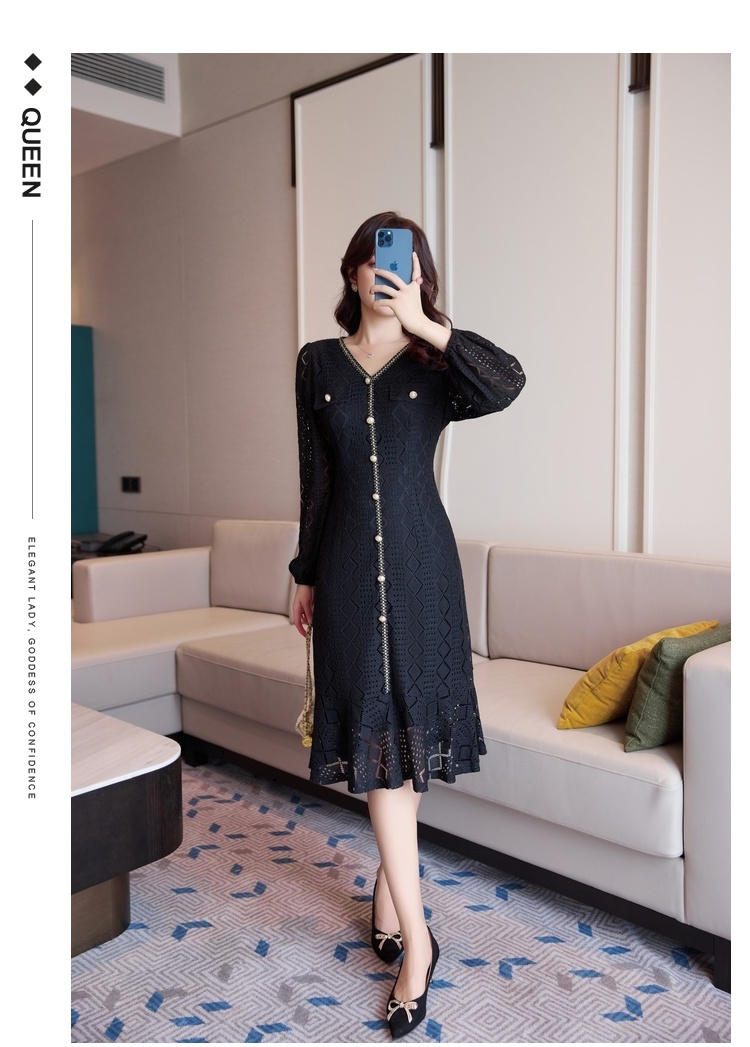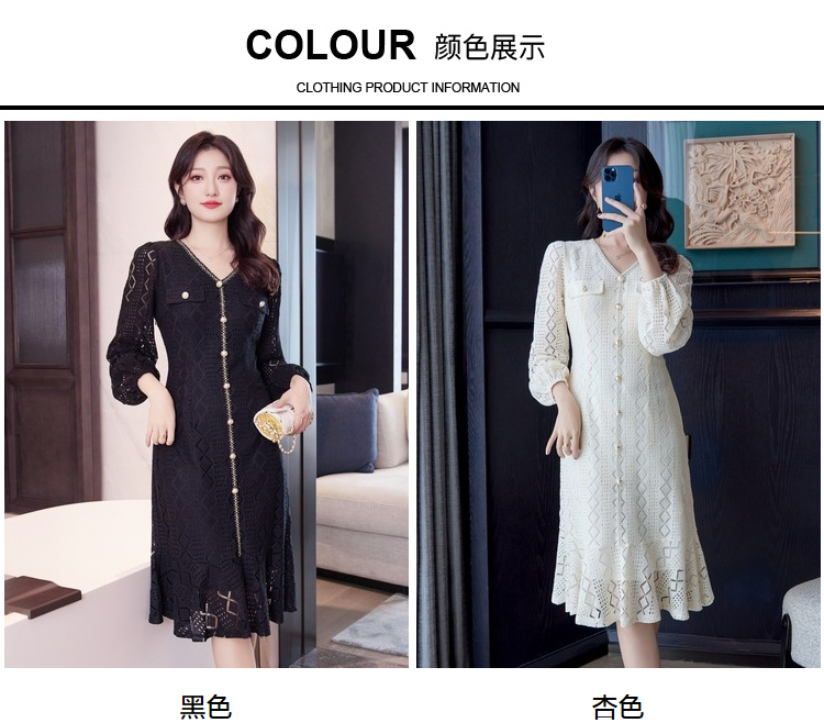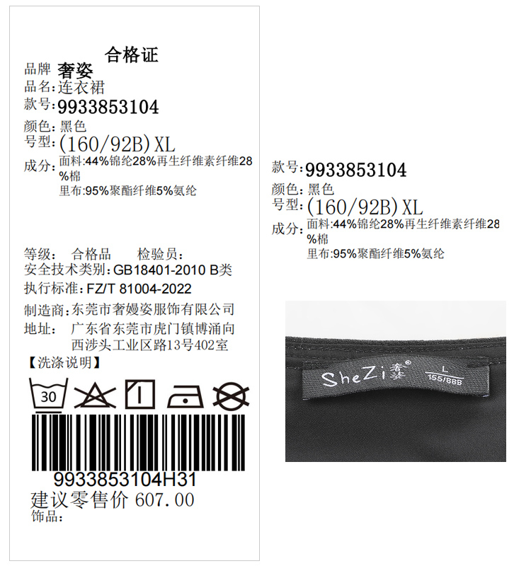 奢姿2025春季新款大码女装纽扣装饰裙子胖mmV领减龄时尚连衣裙9933853104