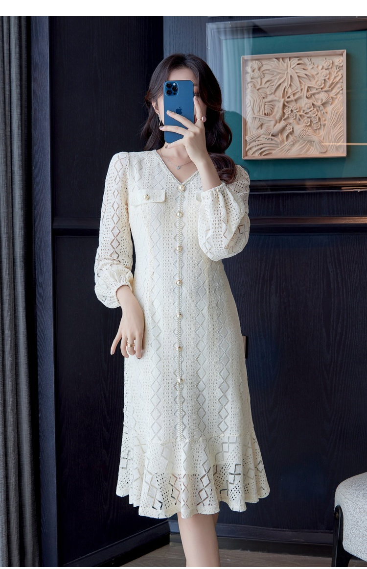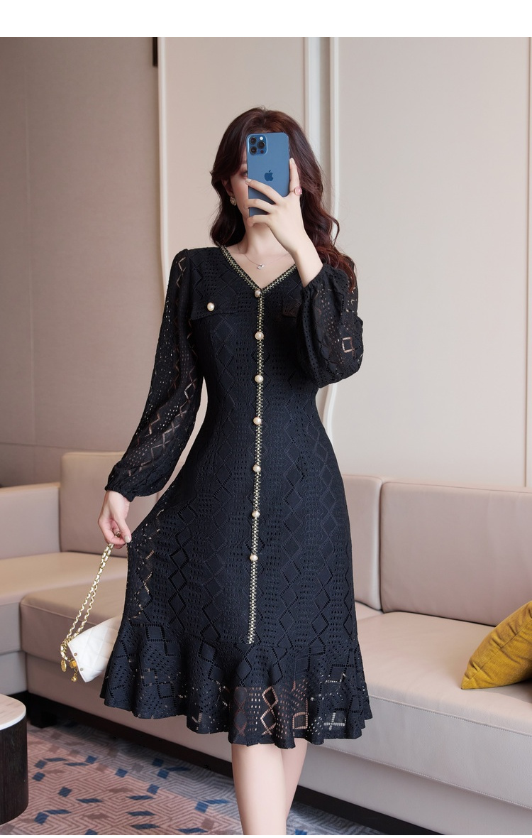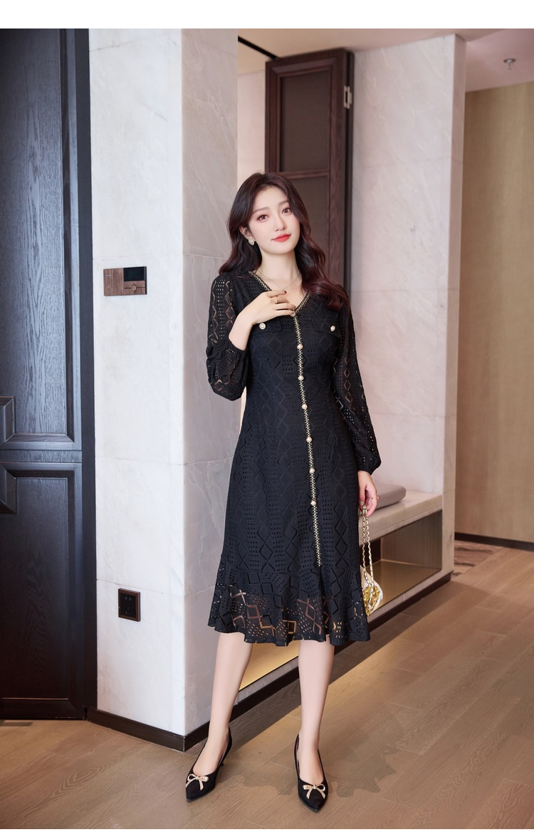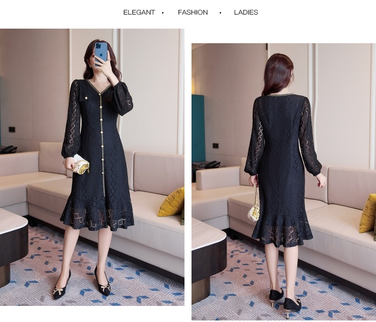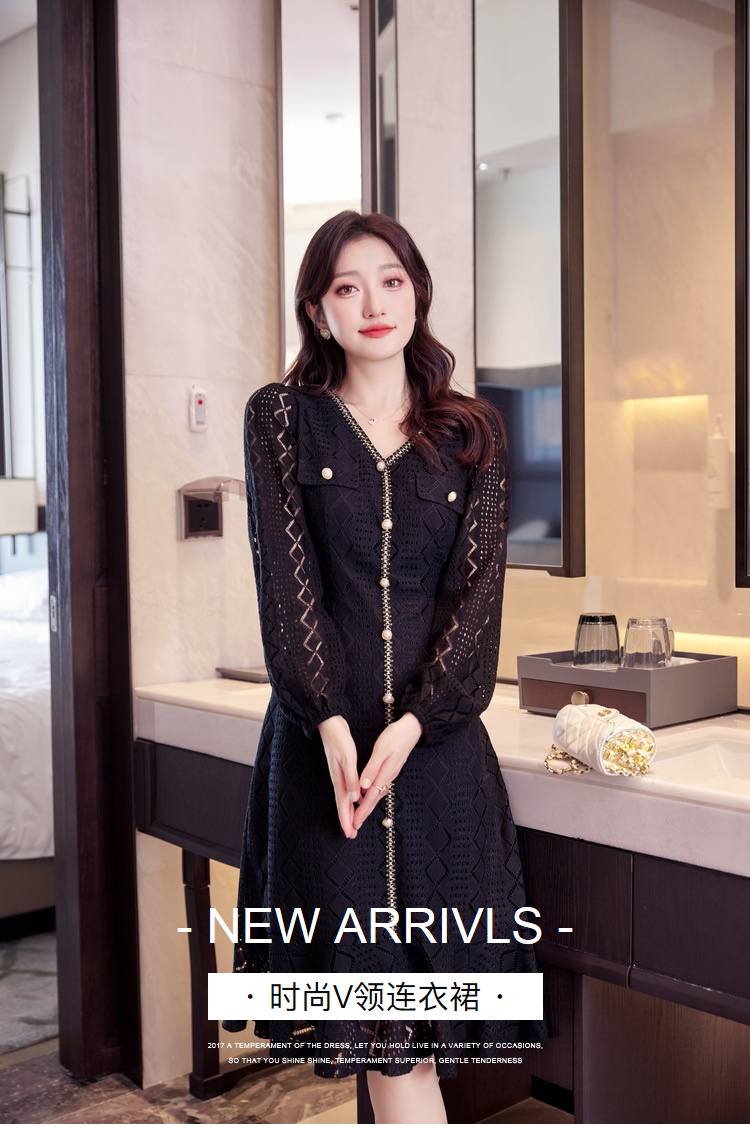 奢姿2025春季新款大码女装纽扣装饰裙子胖mmV领减龄时尚连衣裙9933853104
