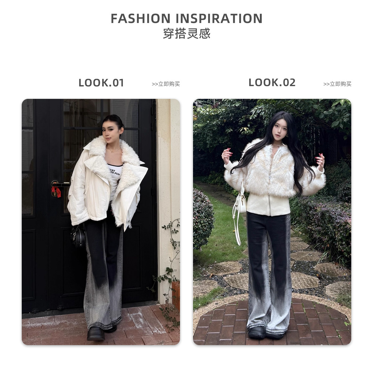 FTT FlyTheTruth『奥利奥甜心』 微喇晕染牛仔裤秋季复古做旧长裤