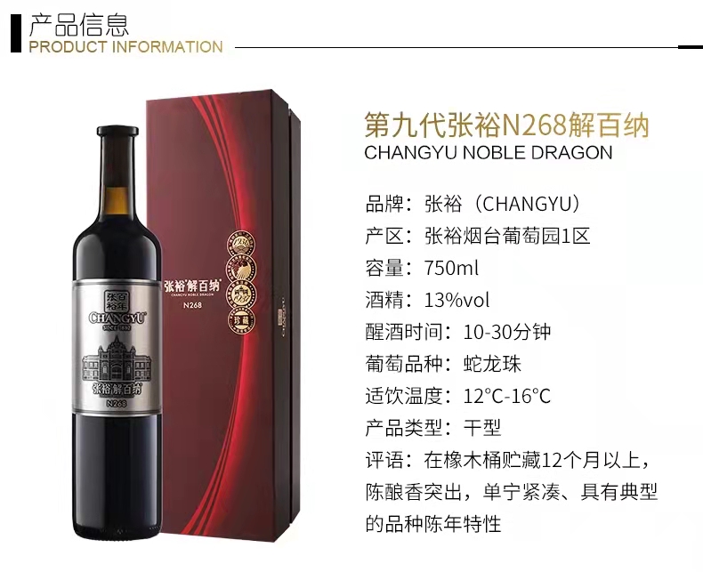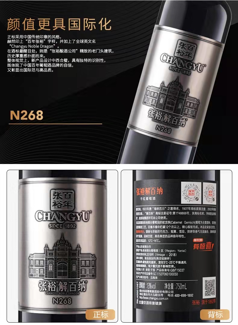 张裕解百纳N268干红葡萄酒 750ml 15%vol