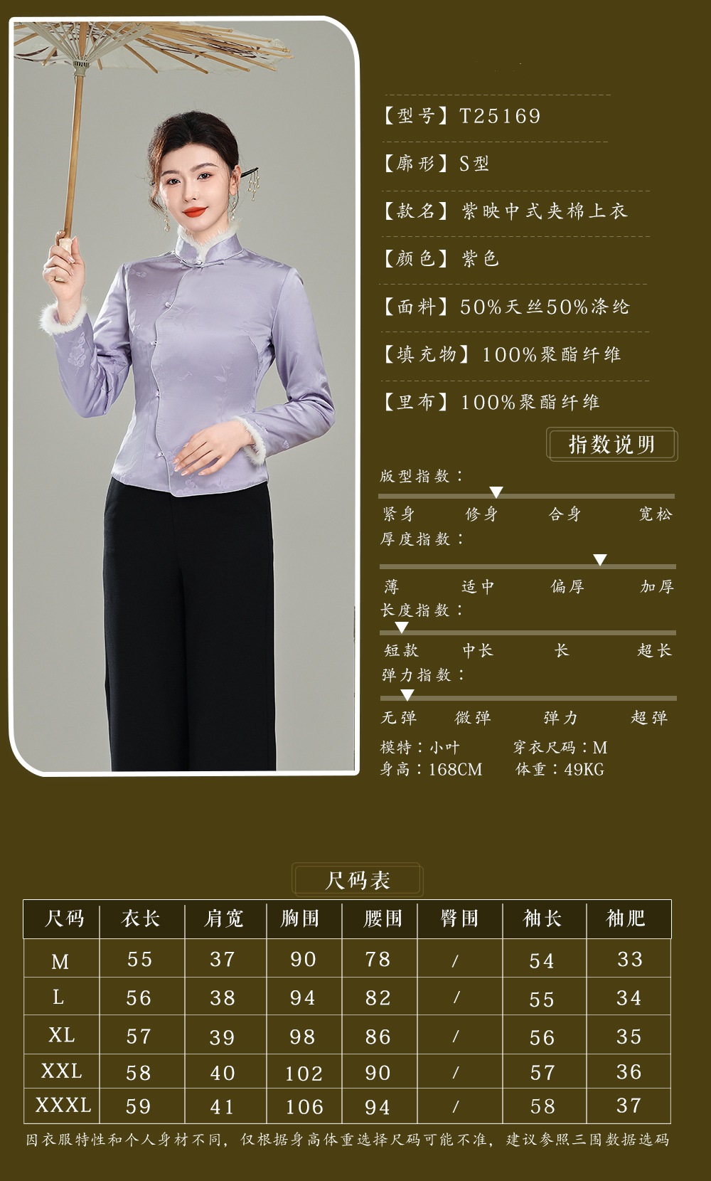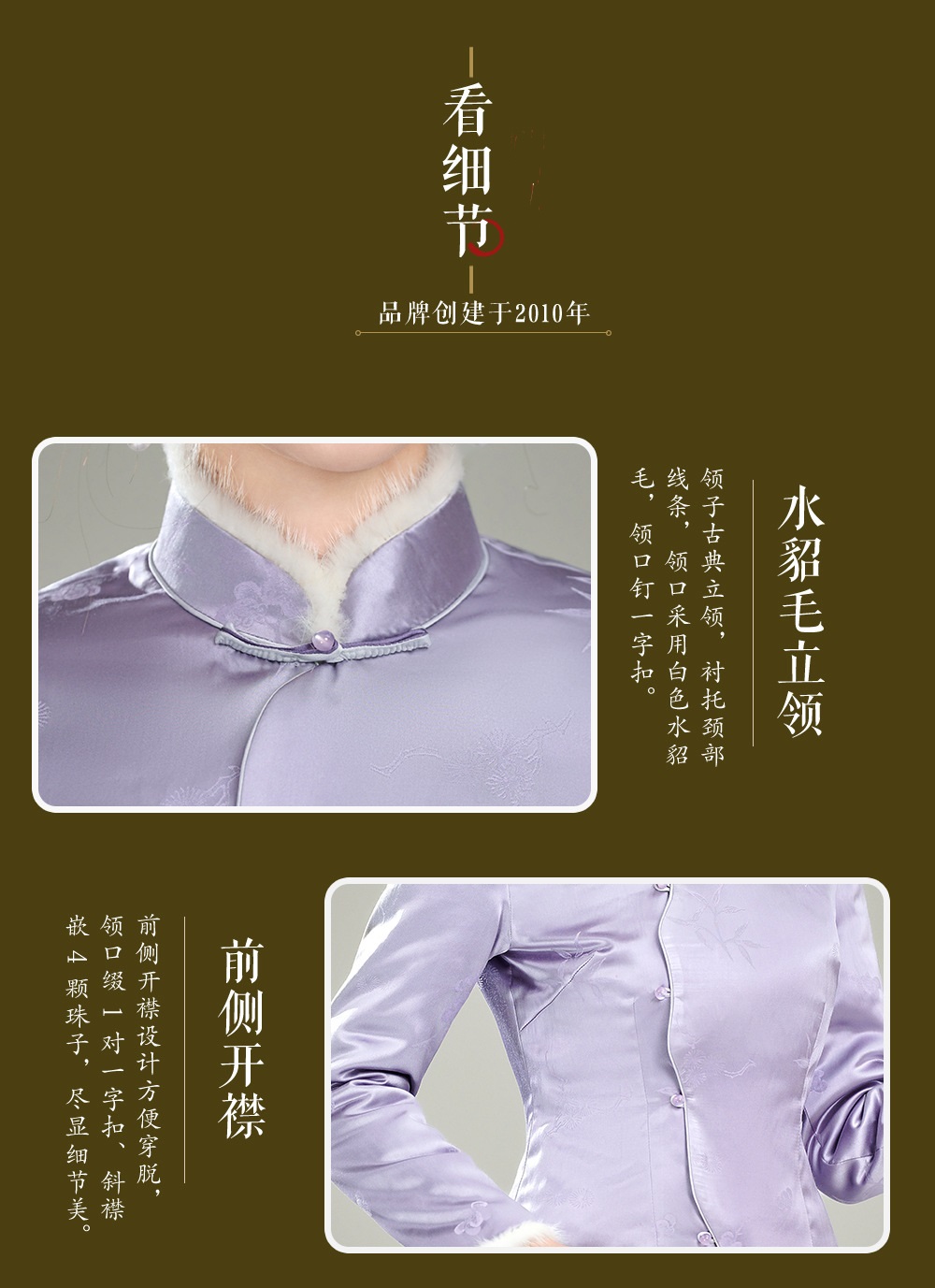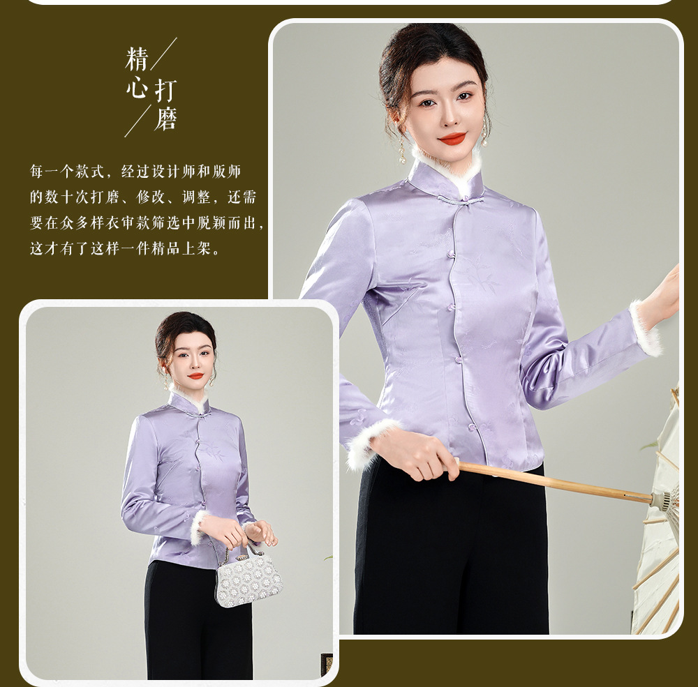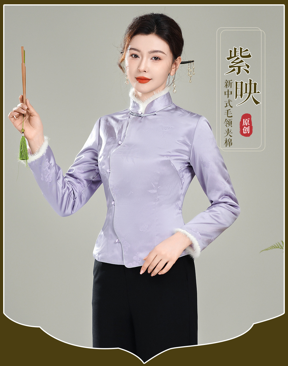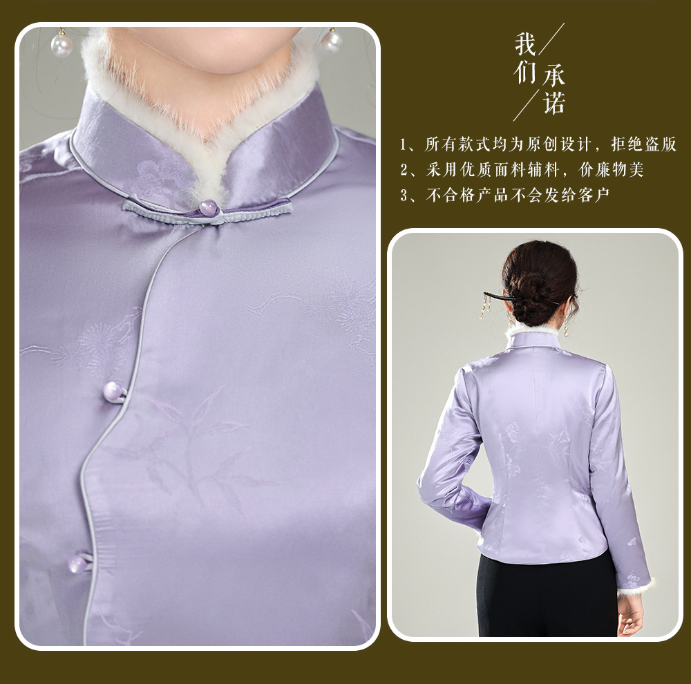 【紫映】提花毛领新中式开襟,夹棉旗袍唐装上衣外套XGT-T25169