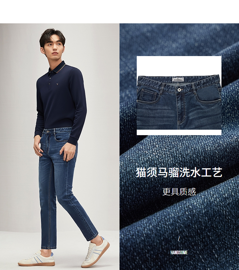 柒牌男士牛仔长裤2025春夏新款时尚潮流中青年休闲百搭九分小脚裤 128H70340