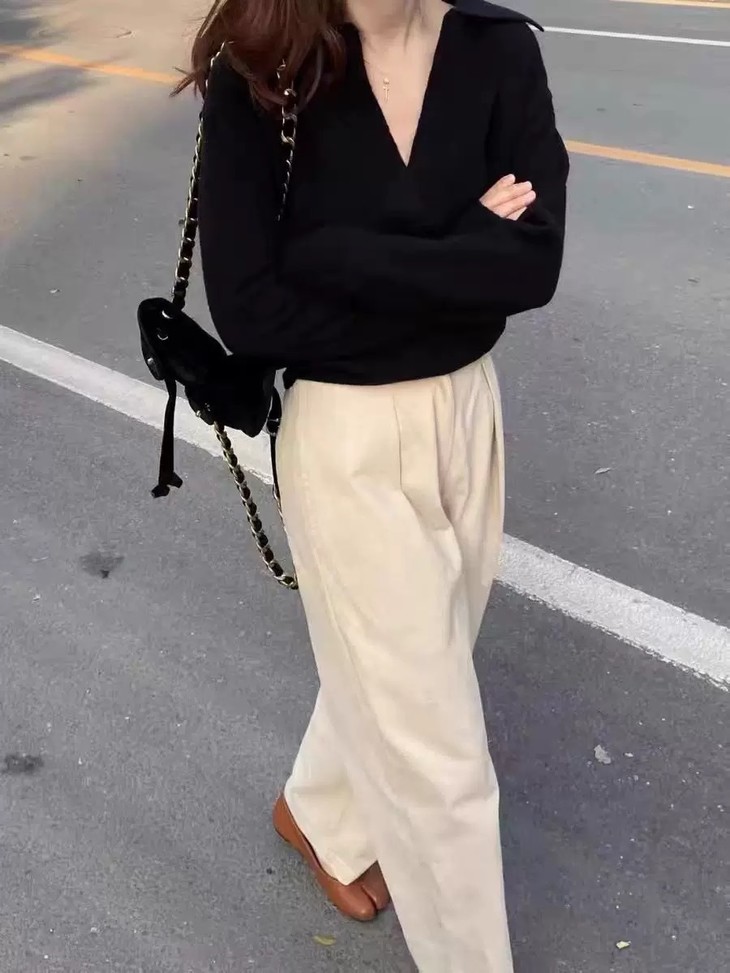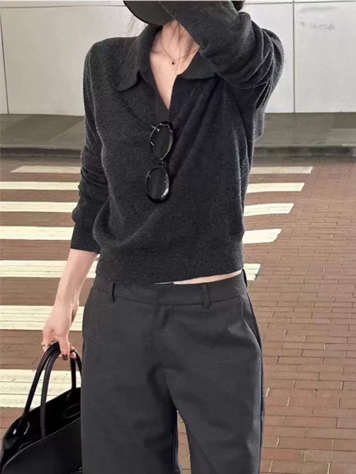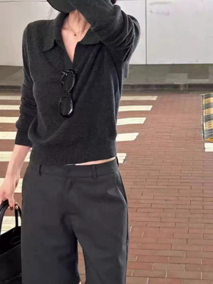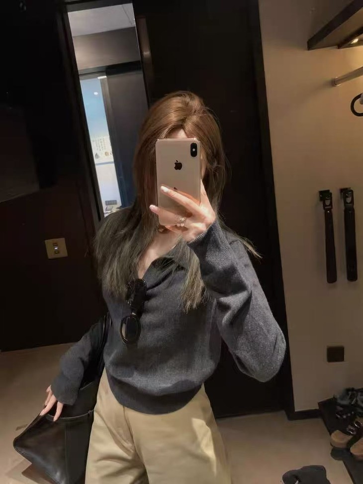 ⭐【MOMOTIABIN老钱风Polo领长袖针织衫TSTXZ255🔺】 🔥这款上衣真的让人难以抗拒啊!🧶翻领设计,修饰脸型,颜色非常温柔!