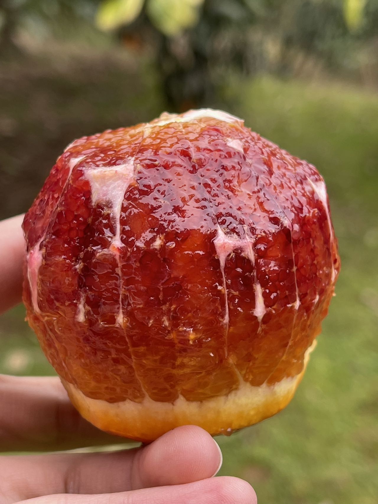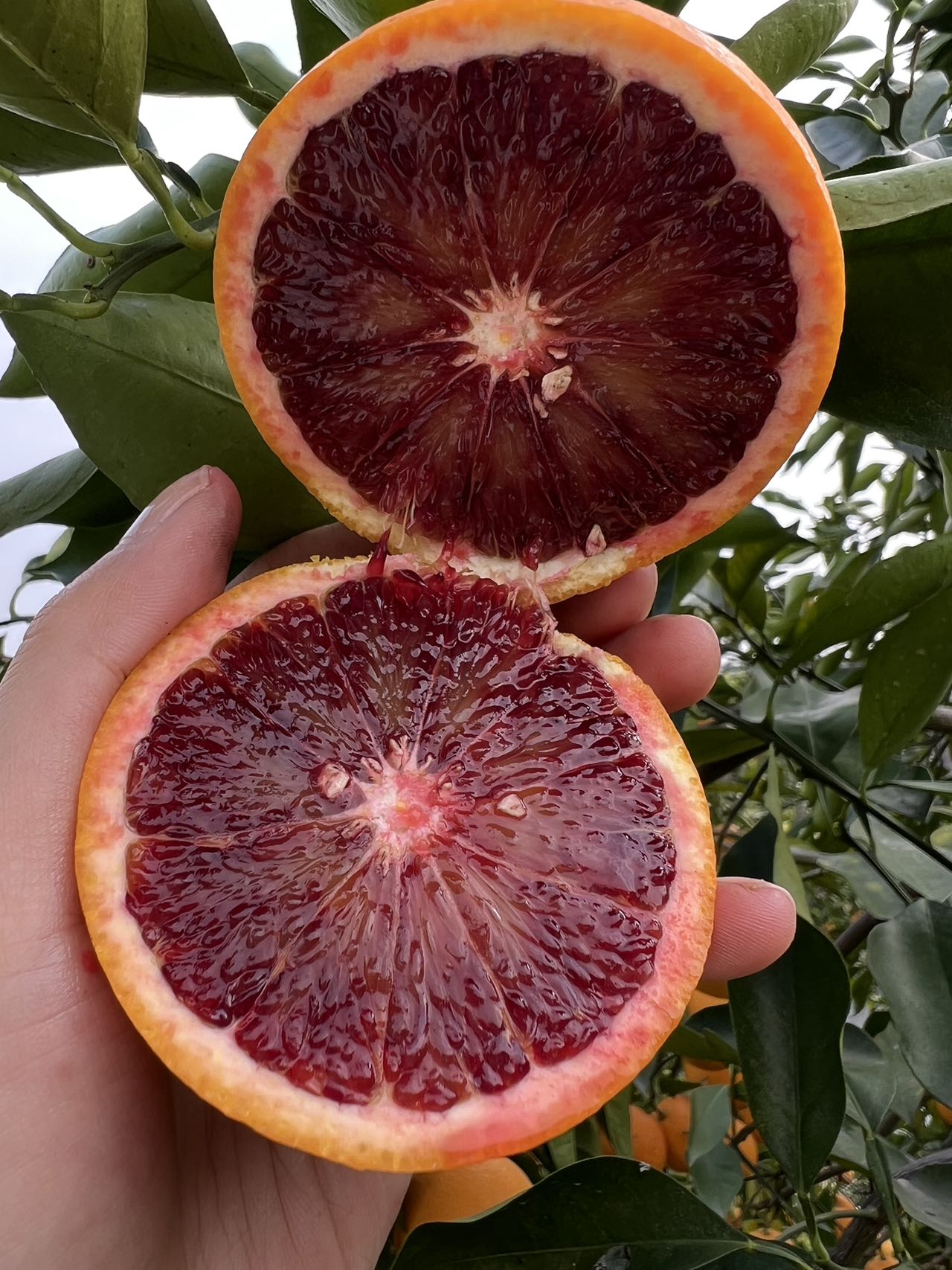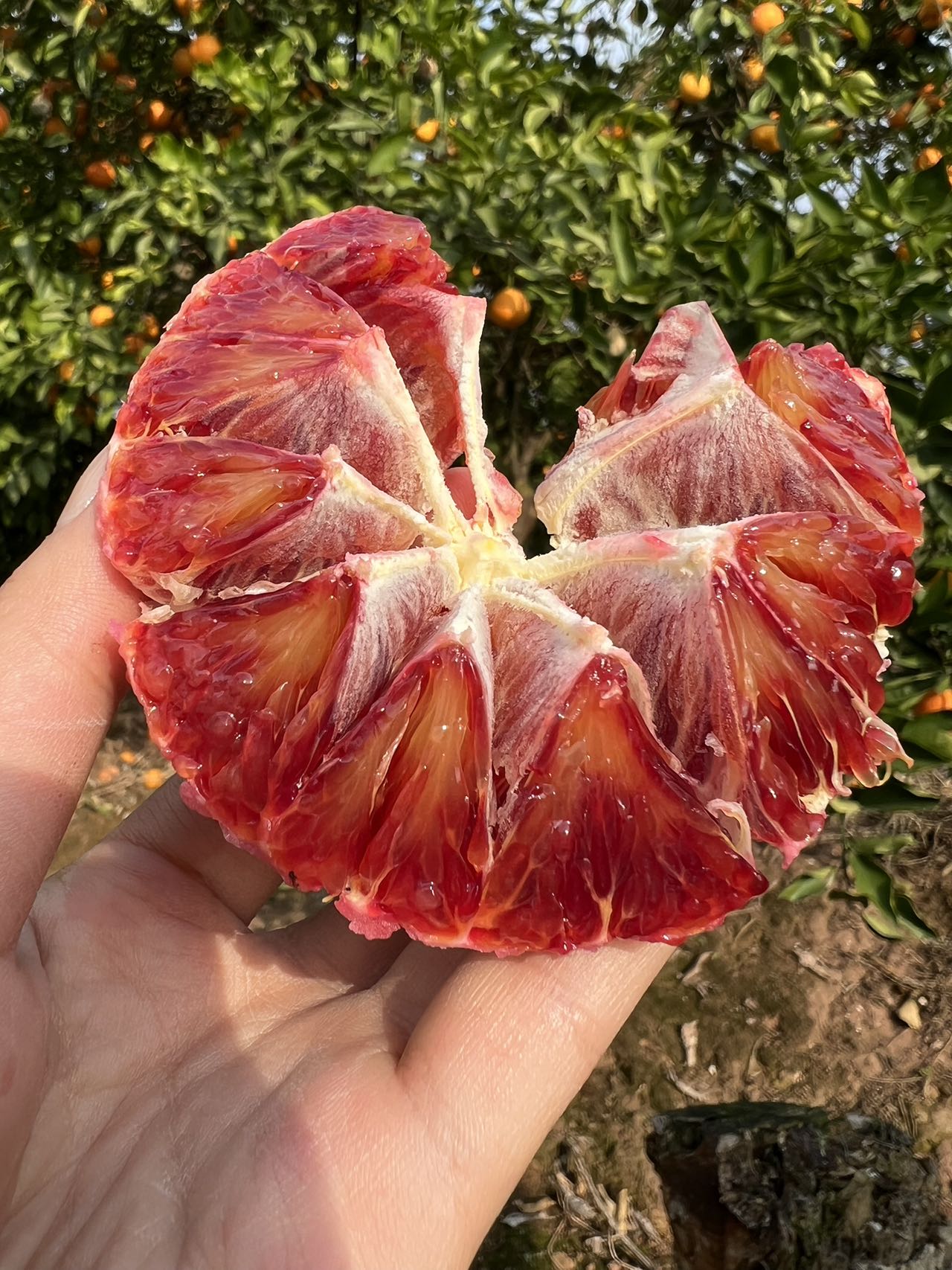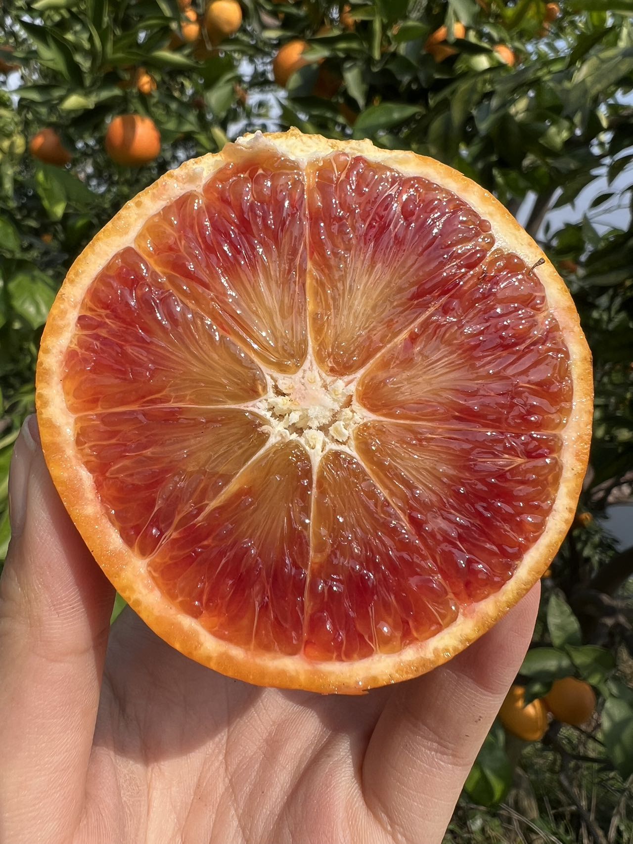 今年天气干旱,使得血橙个头相比于往年稍小,也正是由于少雨,2023年的血橙尤其甜蜜,糖分高血丝也足。一定不能错过血橙的高光年份