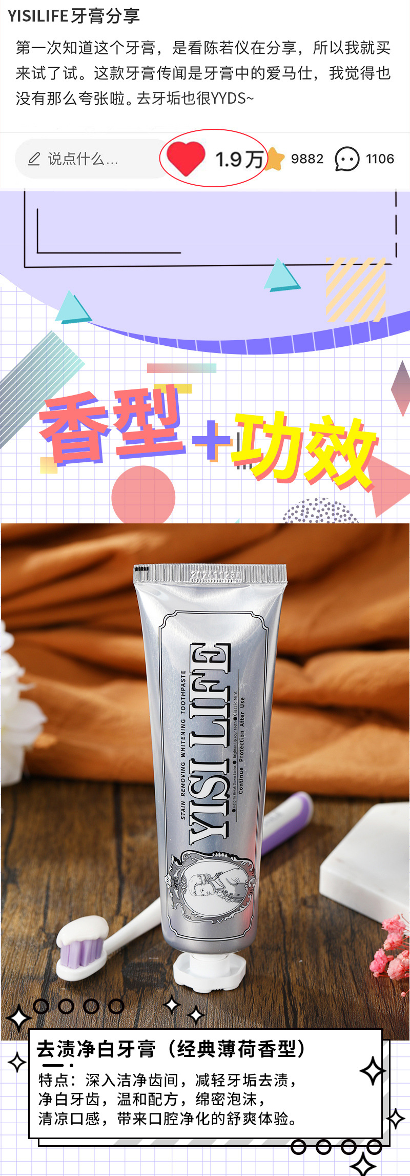 【秒杀三支!牙黄牙渍一锅端】一肆生活清洁齿口气清新洁白薄荷葡萄海盐荔枝牙膏。rb